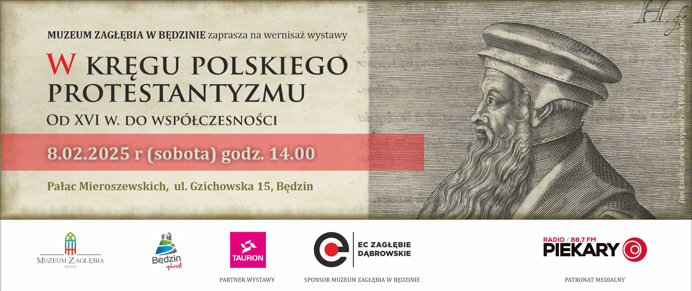 Serdecznie zapraszamy na wernisaż nowej wystawy czasowej "W kręgu polskiego protestantyzmu. Od XVI w. do współczesności", który odbędzie się w Pałacu Mieroszewskich, w sobotę, 8 lutego 2025 r.