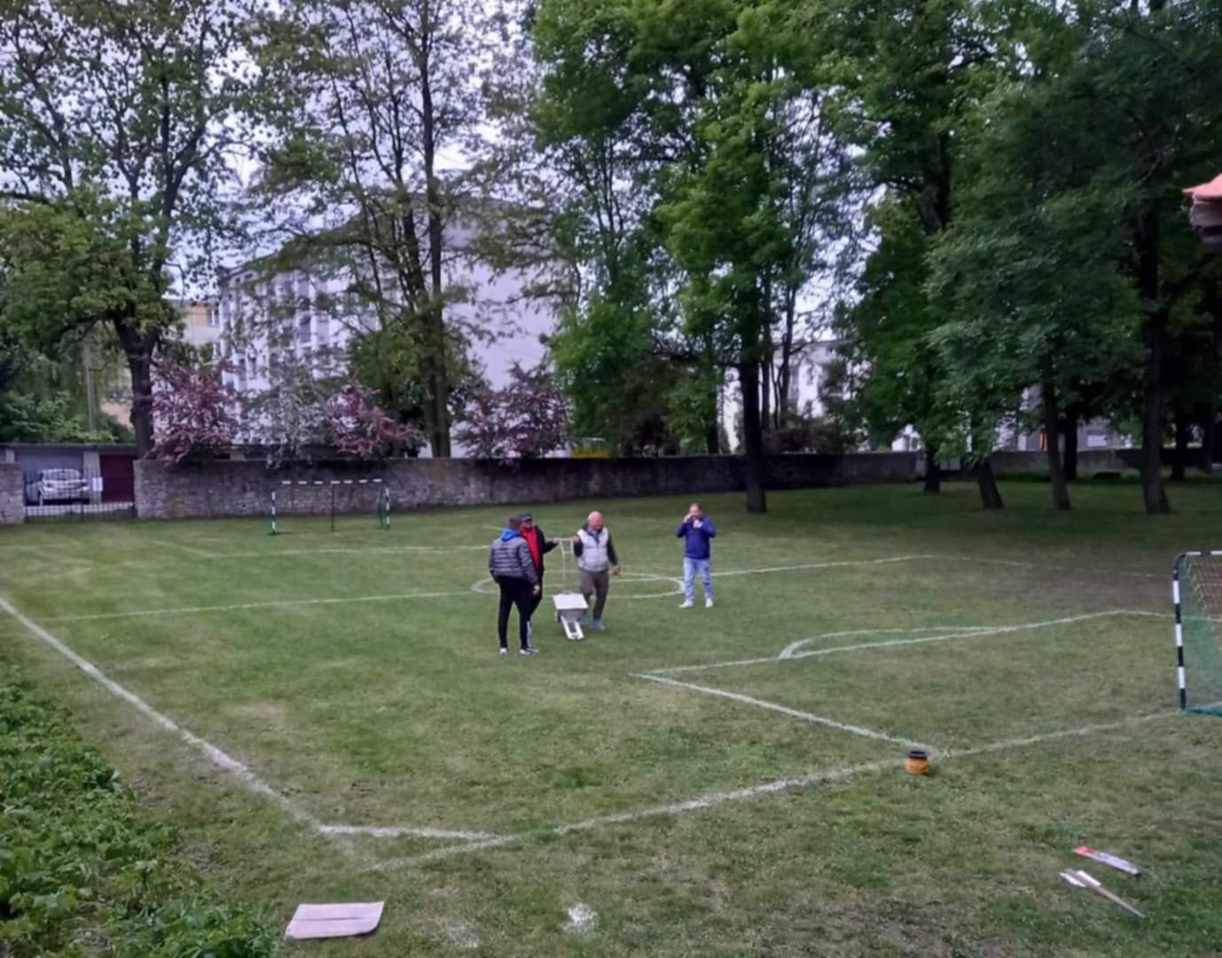 Czy w pałacowym parku może powstać boisko sportowe?! Dlaczego by nie! Szczególnie, że urządzał je sam Prezes KS Zagłębianka – Bogdan Nabrdalik.