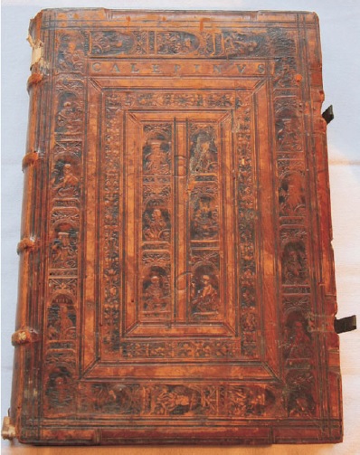 Ryc. 2. Przykład okładki zdobionej radełkiem wizerunkowym. Ambrosius Calepinus: Il dittionario […] dalla lingva latina nella volgare brevemente ridotto per lo signor Lvcio Minerbi […]. [Venetia], A San Luca al segno del diamante, 1552; 2º Inw. 3919 (za Biały 2015).