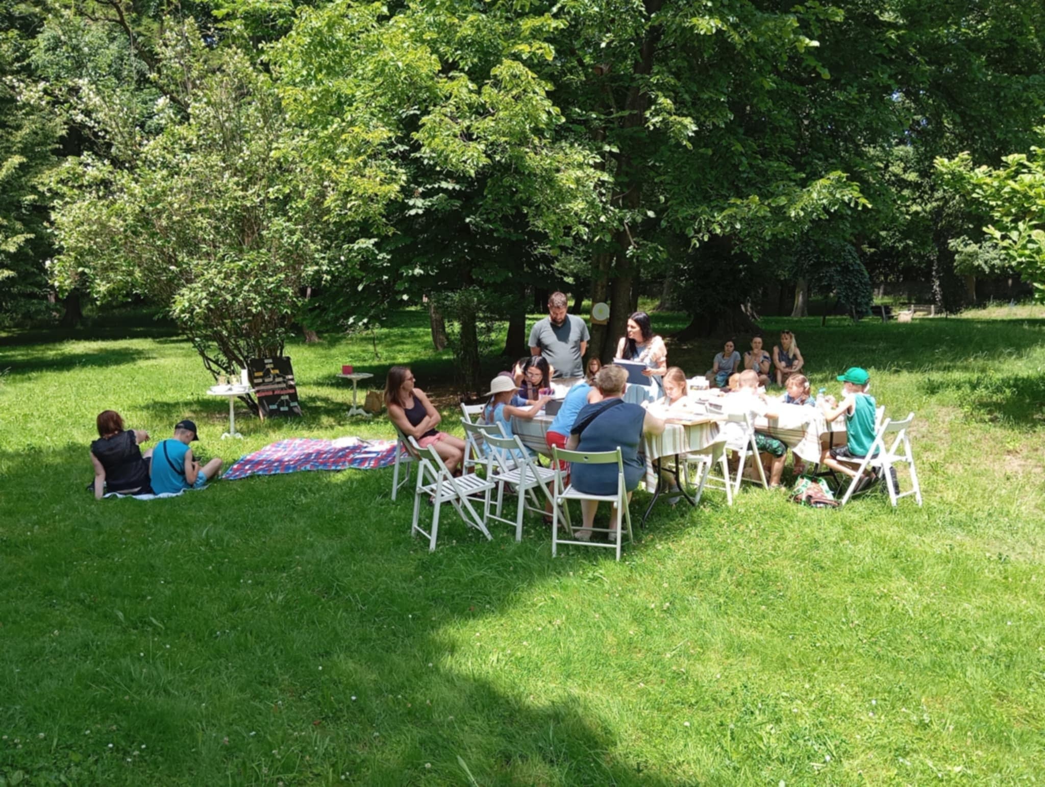 Podczas spaceru po parku pomagaliśmy Ludwice uzupełnić jej „zielnik”, a na koniec każdy mógł robić to, co lubi najbardziej – rysowaliśmy, układaliśmy puzzle, odpoczywaliśmy na kocach wśród zieleni i śpiewu ptaków.