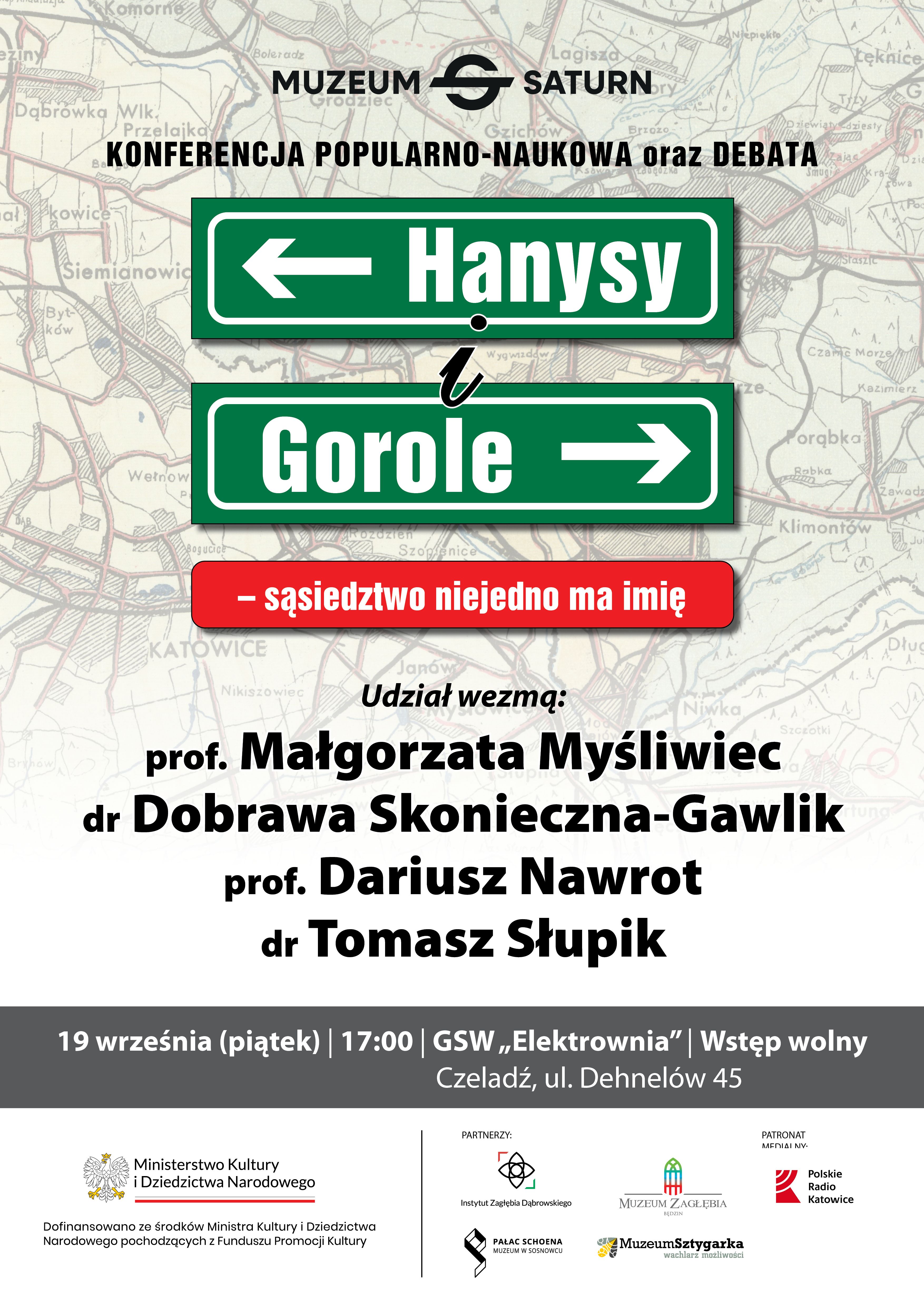 Muzeum Saturn w Czeladzi zaprasza na konferencję popularnonaukową oraz debatę pn. „Hanysy i Gorole - sąsiedztwo niejedno ma imię”. W konferencji udział wezmą: prof. Małgorzata Myśliwiec, dr Dobrawa Skonieczna-Gawlik, prof. Dariusz Nawrot i dr Tomasz Słupik.