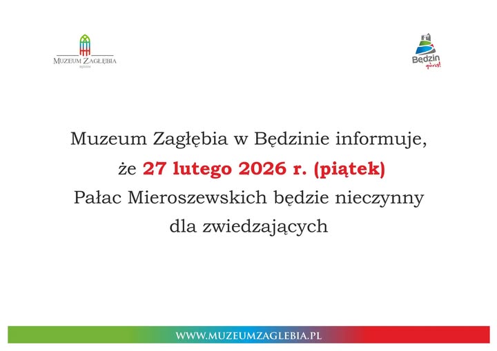 informuje o zamiarze wynajęcia lokalu użytkowego na okres od 01.03.2026 r. do 31.12.2026 r. przy ul. Zamkowej 1 w Będzinie o powierzchni 72,00 m2