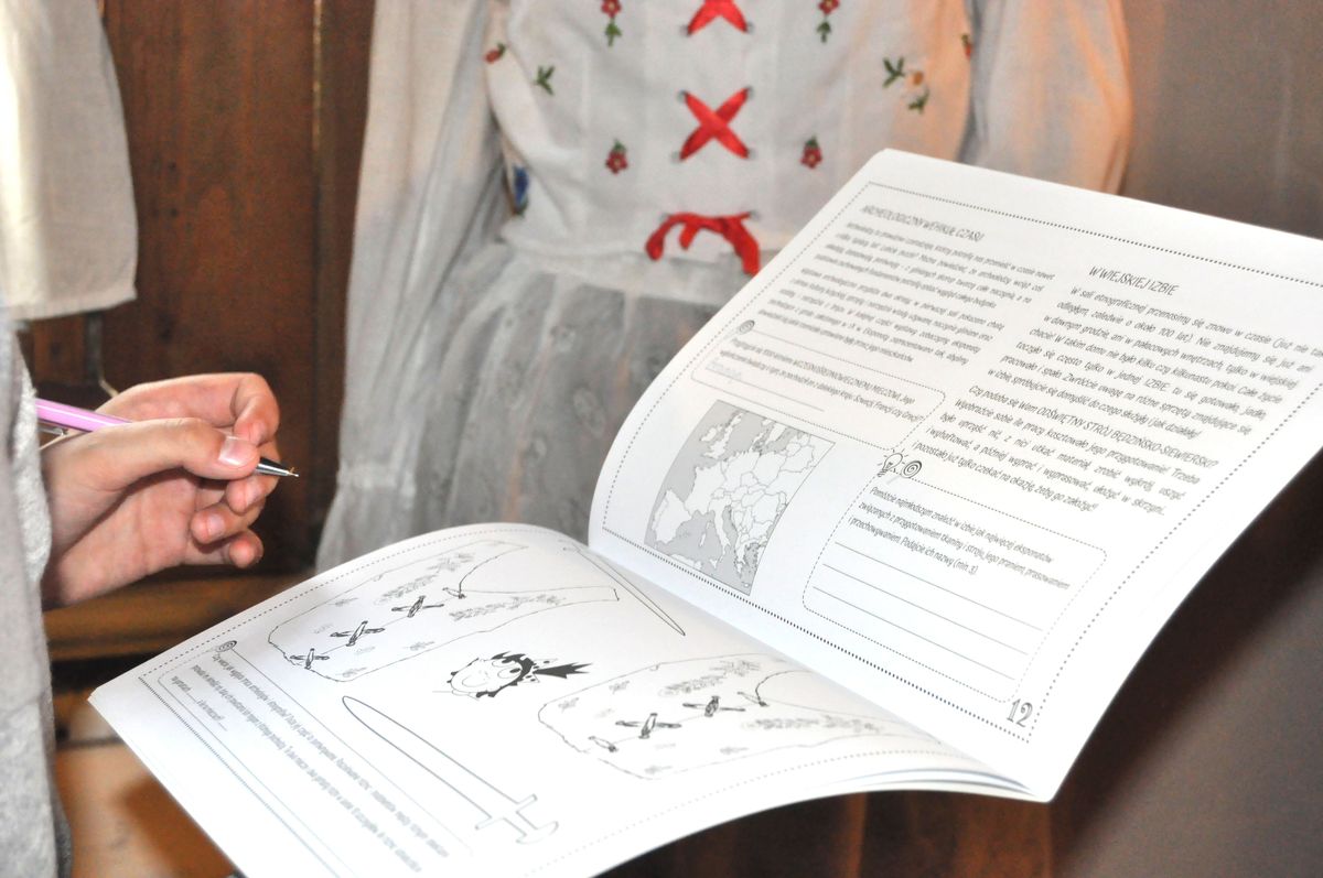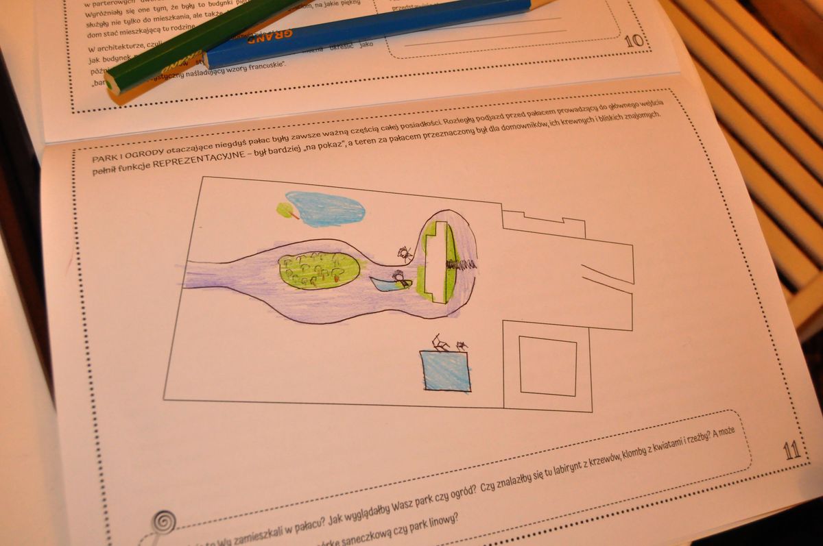 i zagadki, które przygotowali dla nich autorzy publikacji. Na planie Pałacu zaznaczali poszczególne eksponaty, tak aby Ludwika Mieroszewska odnalazła swoje ulubione zakątki , zaprojektowali swój ogród, zaznaczali na rysunku zamku poszczególne elementy architektury obronnej. W podziemiach wyznaczyli drogę zwiedzania tak, aby odwiedzić  wszystkie miejsca oznaczone jako „świadkowie historii”. Odpowiadali również na różne mniej lub bardziej trudne pytania dotyczące zbiorów muzealnych.