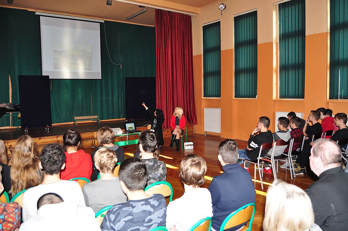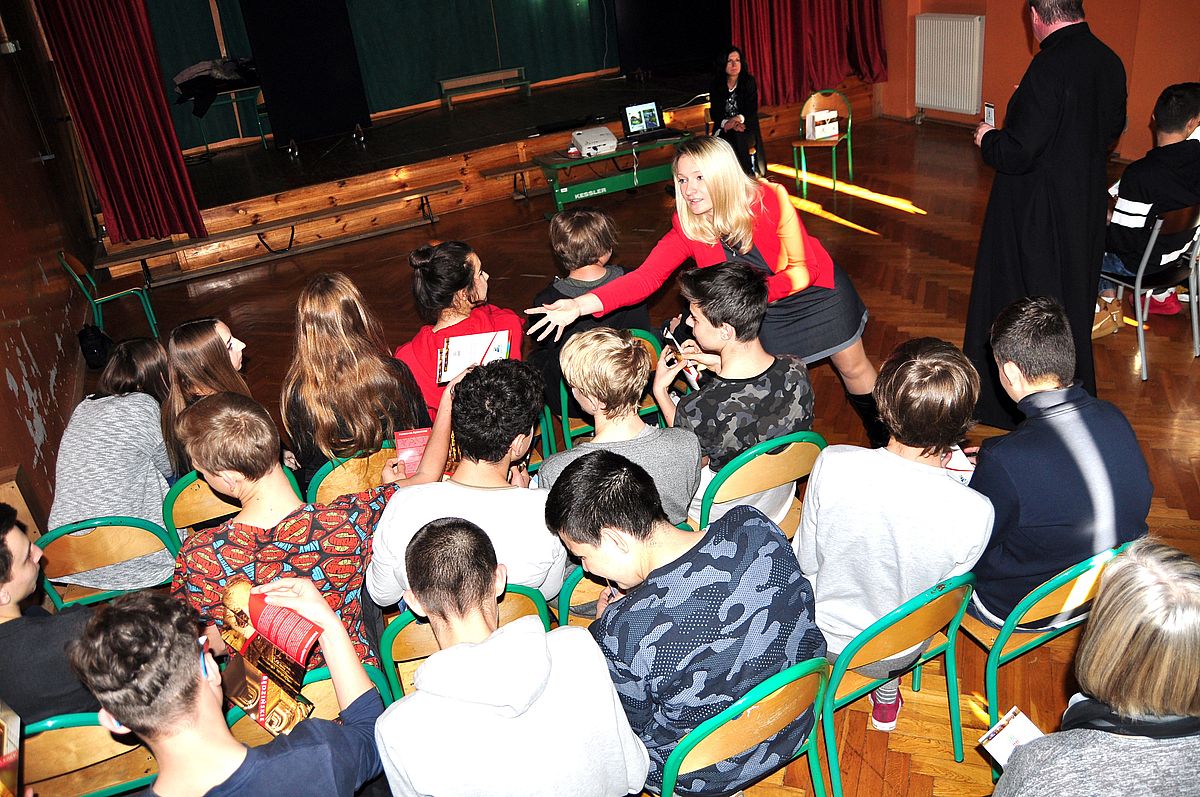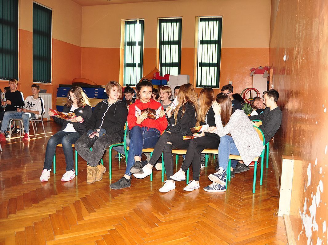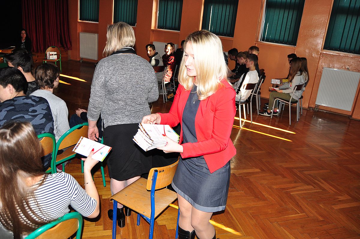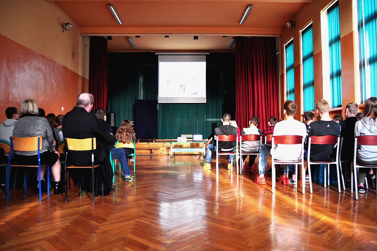 Serdecznie dziękujemy Pani Elżbiecie Wyderce dyrektorowi szkoły w Łagiszy za organizację spotkania, w czasie którego pracownicy z Działu Edukacji i Działu Promocji i Marketingu mieli okazję opowiedzieć o pracy muzealników oraz zaprosić młodzież klas gimnazjalnych do odwiedzenia naszych obiektów. W czasie krótkiej prezentacji przedstawiono historię Zamku, Pałacu Mieroszewskich, Domu Modlitwy Mizrachi, Podziemi Będzińskich i murów miejskich w Będzinie. Omówiono najważniejsze wydarzenia muzealne w ciągu roku, ofertę edukacyjną muzeum - najciekawsze lekcje i zajęcia warsztatowe. Uczniowie biorący udział w spotkaniu przekonali się, że praca w muzeum może być naprawdę bardzo ciekawa i rozwijająca.