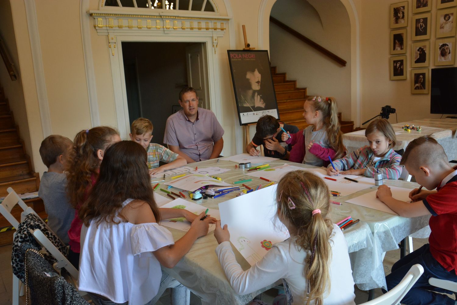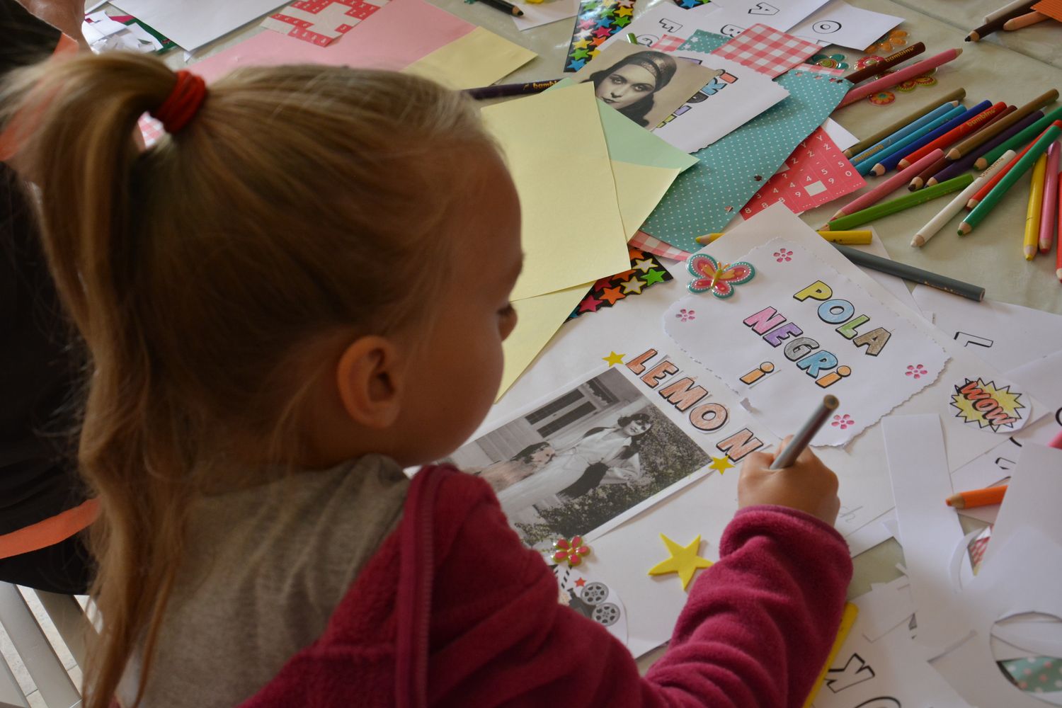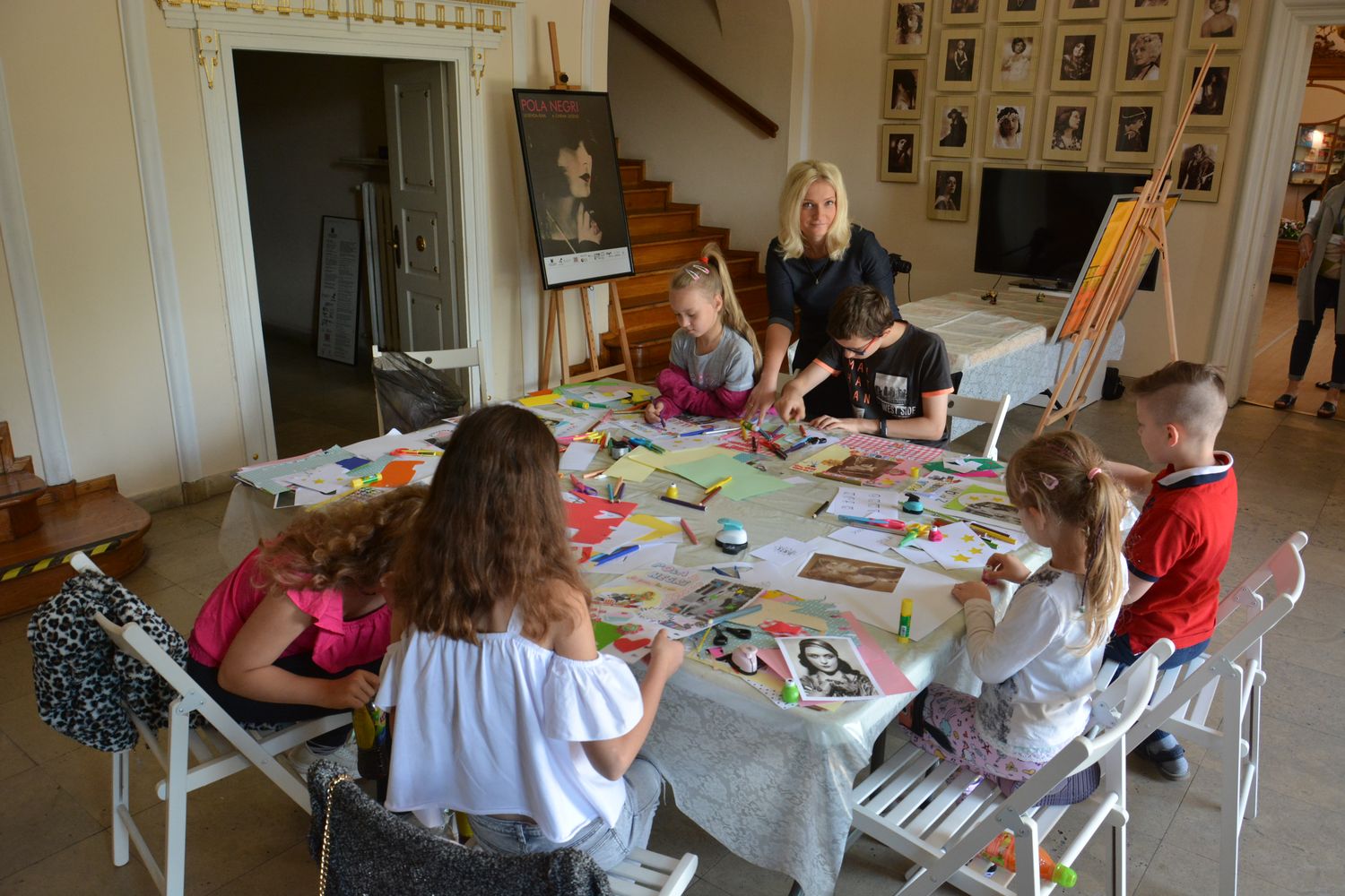Zajęcia rozpoczęły się od zwiedzania z kuratorem wystawy czasowej ”Pola Negri – legenda kina” a następnie wzięły udział w warsztatach plastycznych pt. „Pola Negri na współczesnym plakacie filmowym”. Dzieci zainspirowane wystawą zaczęły tworzyć swój własny, współczesny plakat filmowy z Polą Negri w formie kolażu. Powstały wspaniałe, fantazyjne prace, które przeniosły wszystkich choć na chwilę do świata filmowego.