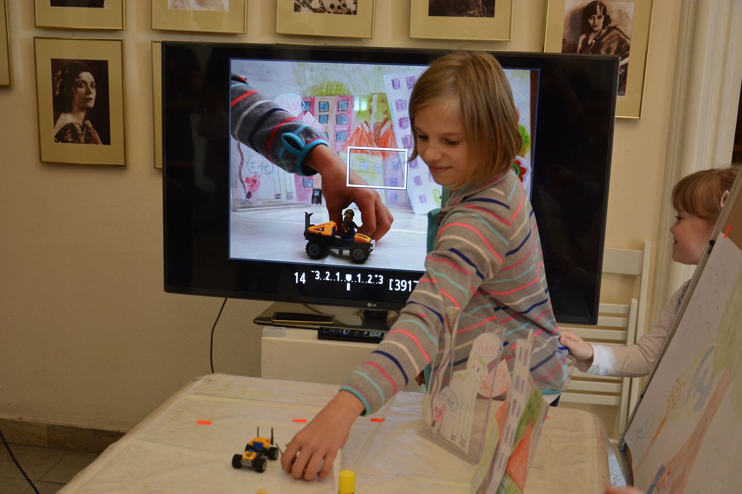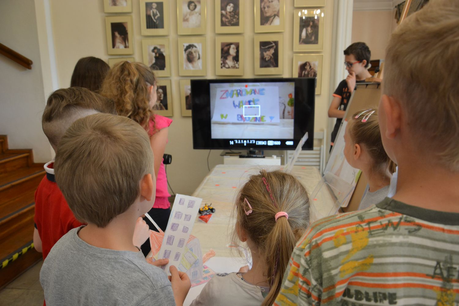 Tematyka filmowa była również tematem przewodnim następnych zajęć pn. „Animacja poklatkowa, czyli kreatywne wykorzystanie aparatu fotograficznego”, które odbyły się w formie warsztatów  plastyczno – fotograficznych. Uczestnicy wysłuchali krótkiej prelekcji na temat filmu animowanego i technologii jego powstawania. Następnie samodzielnie wykreowali swój własny fikcyjny świat wewnątrz którego działa się akcja filmu animowanego pod tytułem „Zwariowane wakacje w Będzinie”. Dzieciaki narysowały scenografię, wymyśliły postaci biorące udział w filmie, sami mogli wcielić się w role operatorów kamery, animatorów, kierowników planu a co najważniejsze - stworzyły swój własny, pierwszy film animowany.