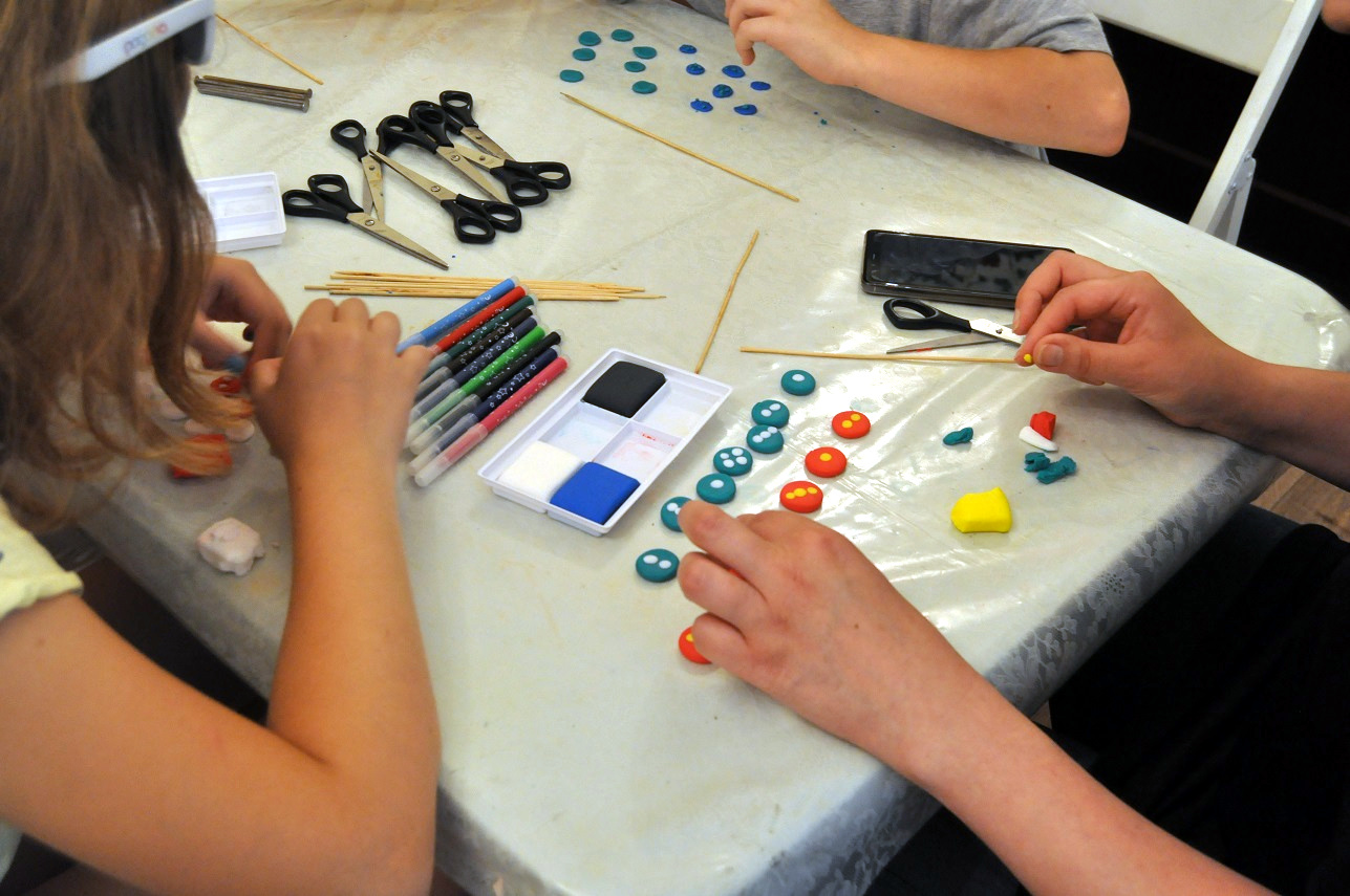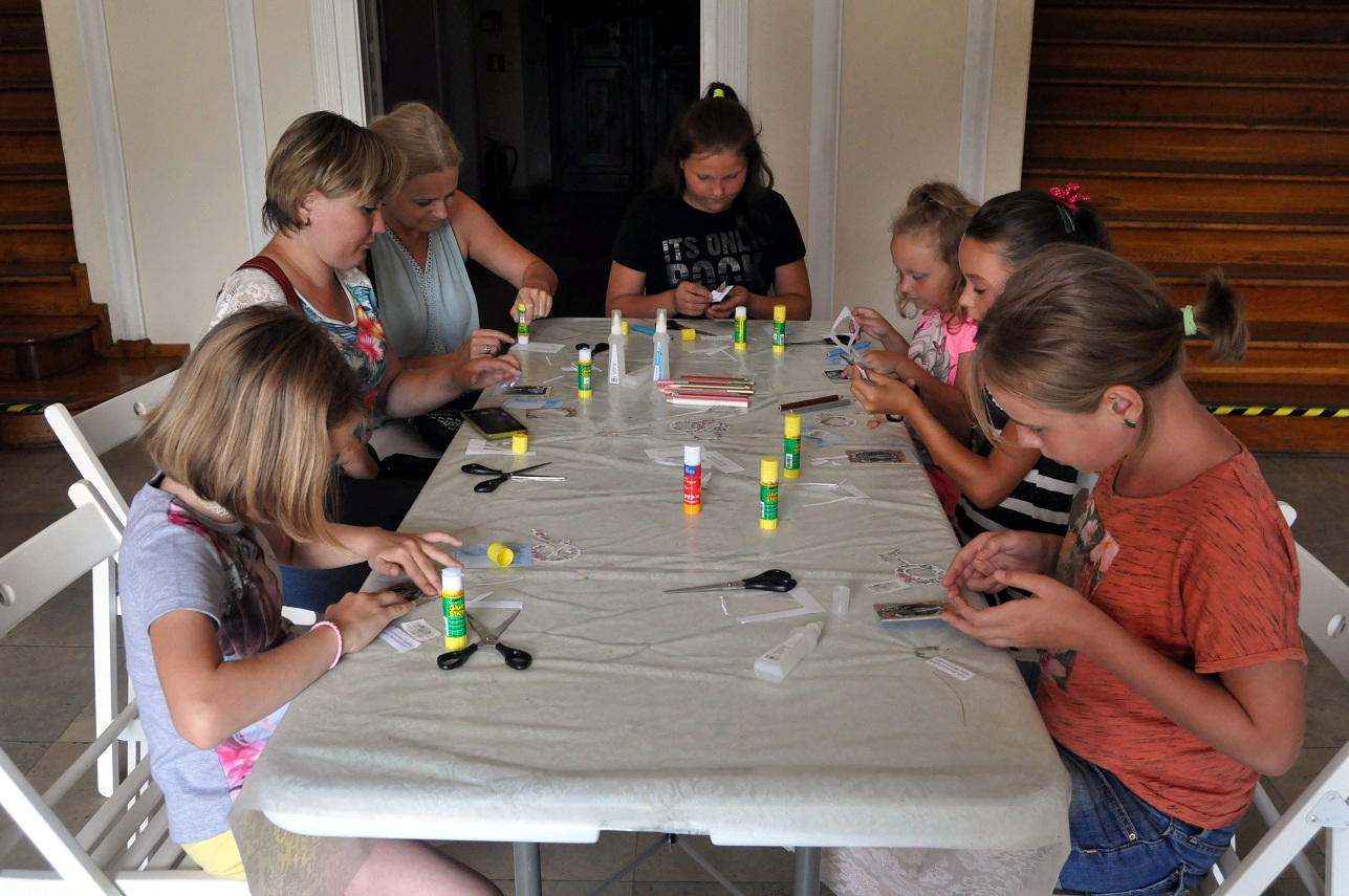 Następnie uczestnicy własnoręcznie wykonali komplet kostek i pionków do królewskiej gry z Ur. Oryginalną planszę, bogato inkrustowaną masą perłową i lapis lazuli, do królewskiej gry, odnalazł sir Leonard Woolley w grobowcu sumeryjskiej księżniczki z 2600 roku p.n.e. Dopełnieniem całości były wydrukowane plansze i zestaw reguł do powyższej gry, co pozwoli na kontynuację zabawy w zaciszu domowym. W dalszej części wakacyjnych warsztatów, dzieci z czasów prehistorycznych przeniosły się do połowy XIX wieku i dowiedziały się wielu ciekawostek o wielkim wynalazku tych czasów, jakim była fotografia. Na zakończenie spotkania wszyscy starannie i z dużym zaangażowaniem oprawili swoje zdjęcia w stylu dziewiętnastowiecznych carte de visite.