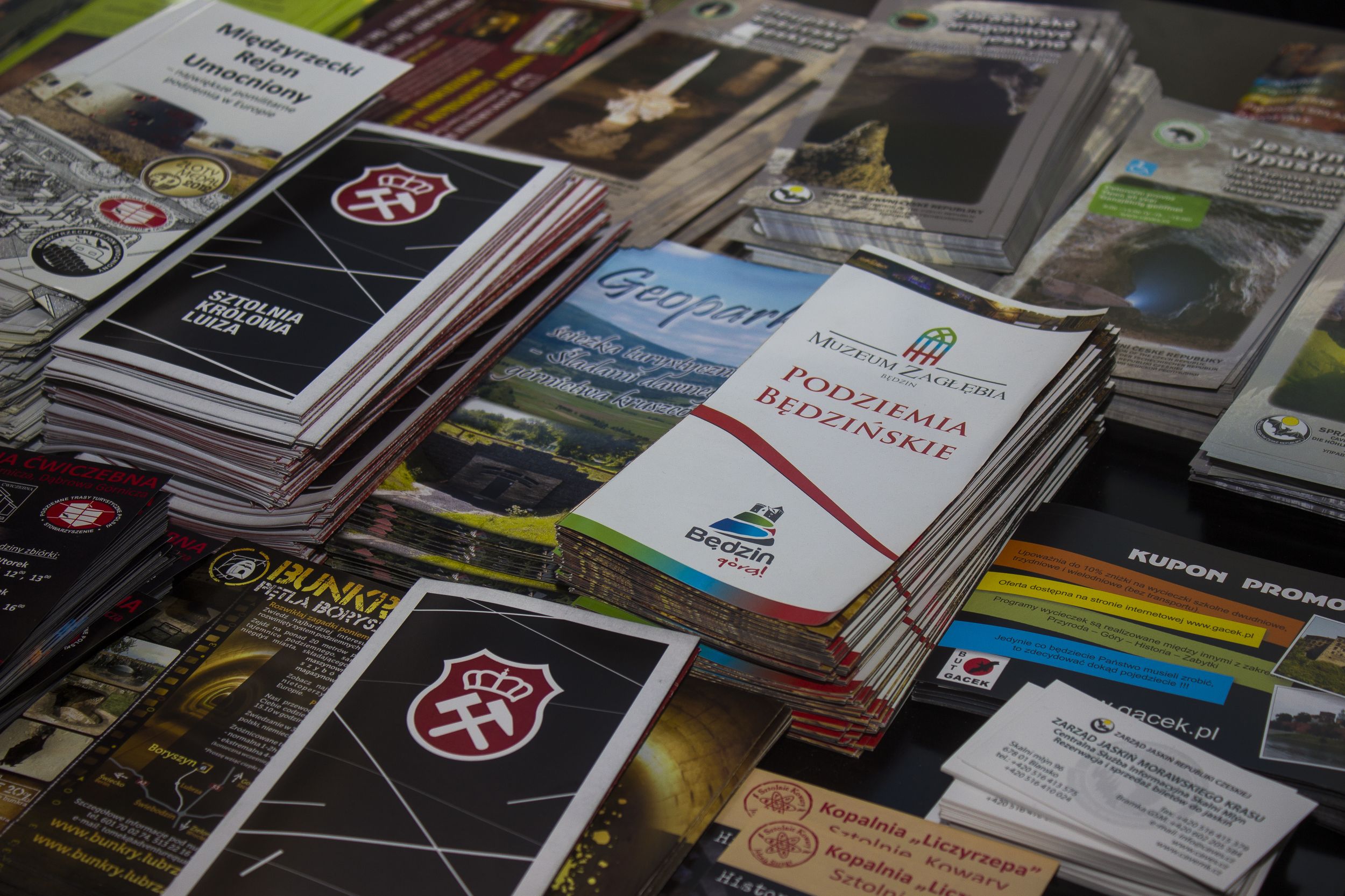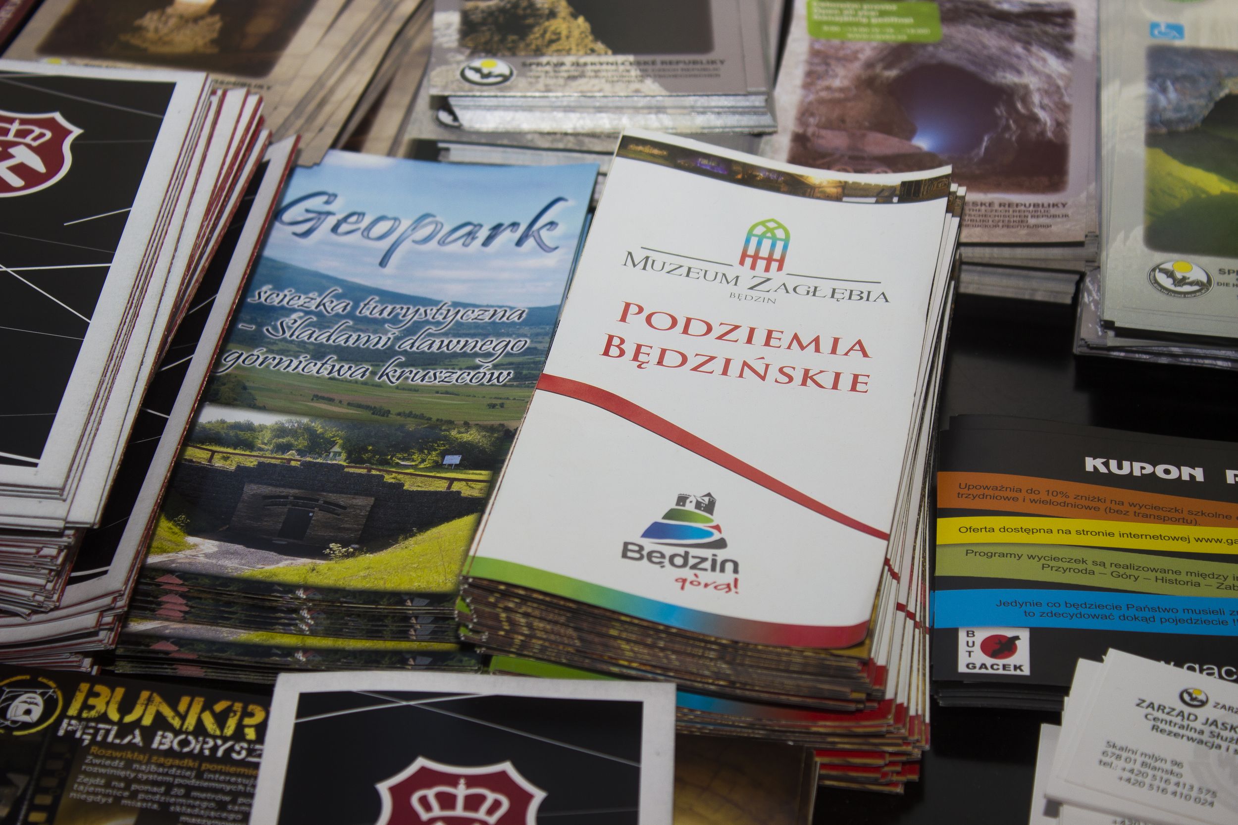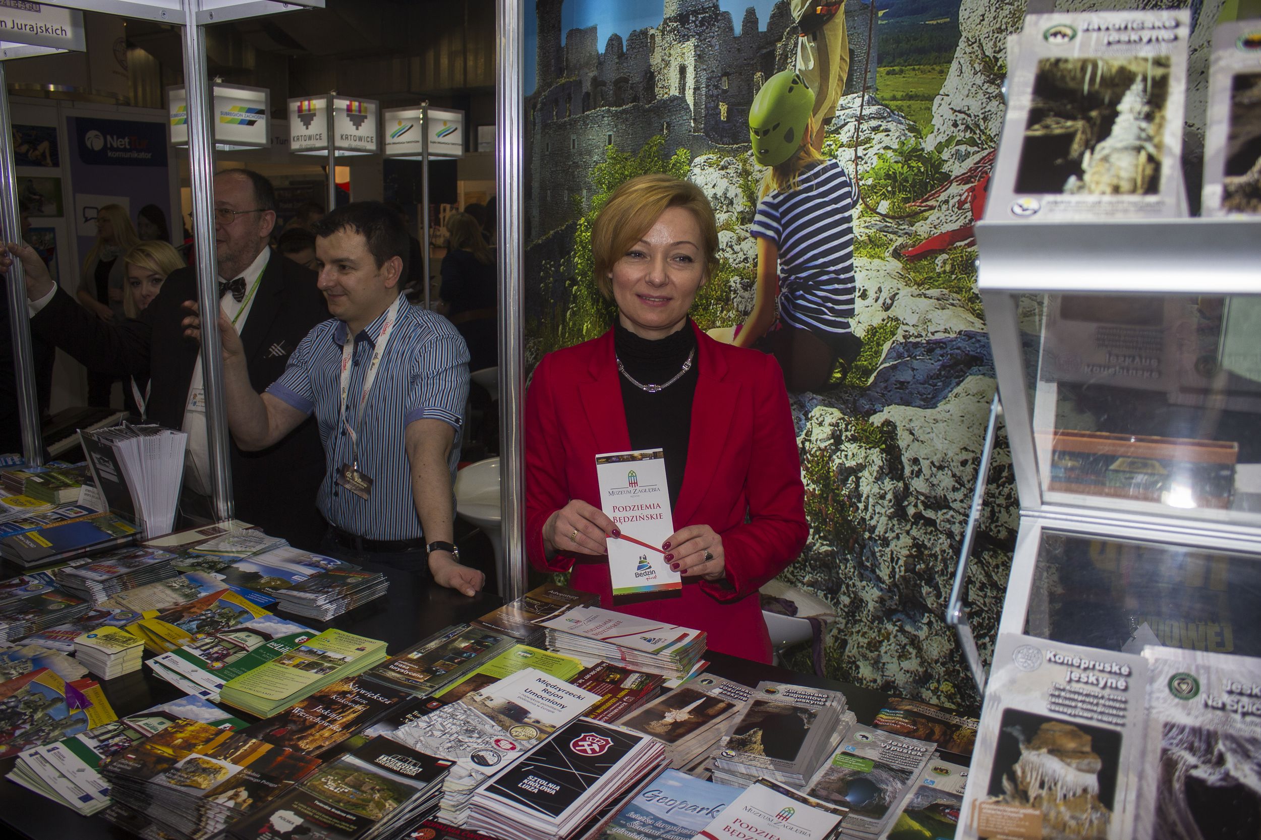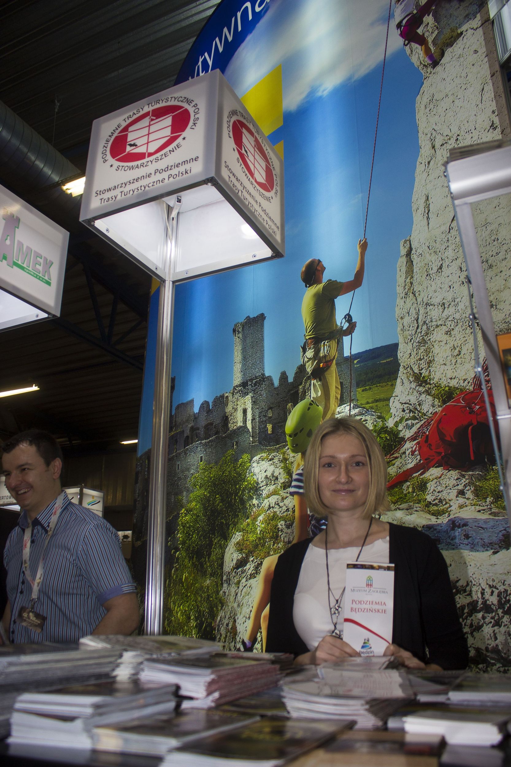 Na stoisku Stowarzyszenia Podziemne Trasy Turystyczne Polski wśród materiałów promocyjnych podziemnych obiektów z całej polski znalazły się także Podziemia Będzińskie.
