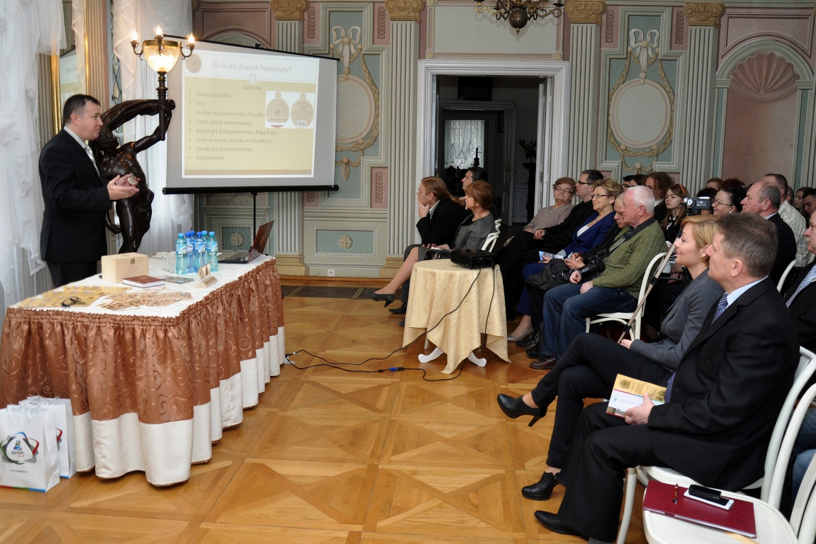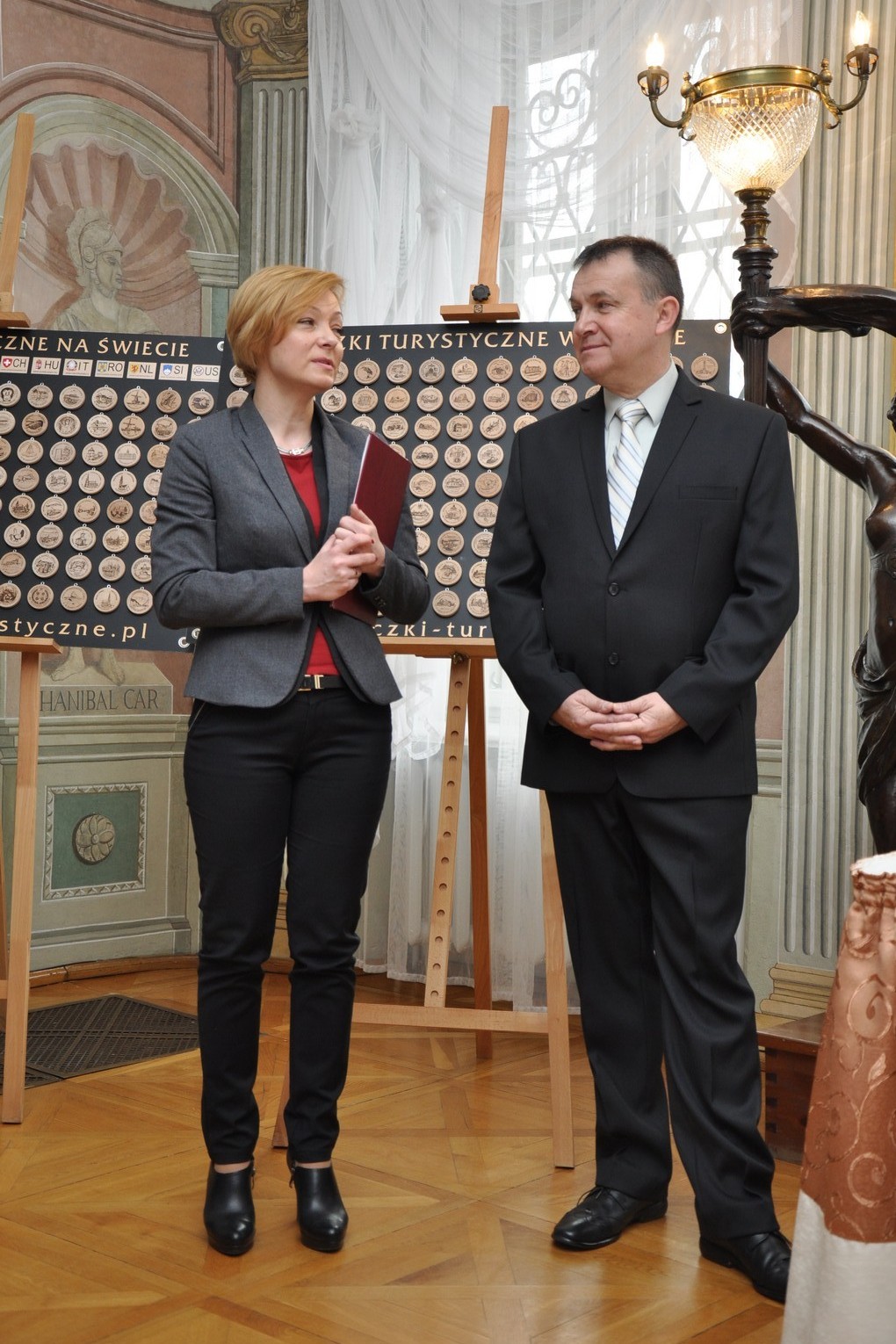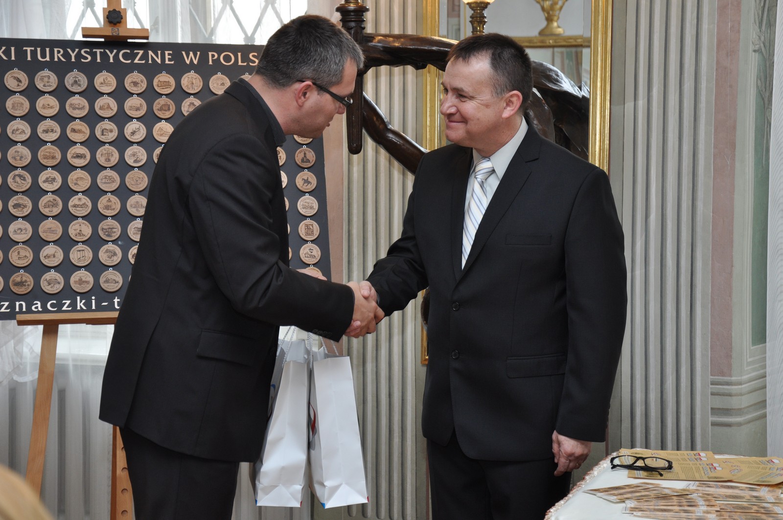 Wprowadzenie nowych Znaczków Turystycznych zawsze ma bardzo uroczysty charakter - nie inaczej było w Muzeum Zagłębia. Koordynator Znaczków Turystycznych w Polsce - Zbigniew Romankiewicz przekazał na ręce Prezydenta Miasta Będzina Łukasza Komoniewskiego cztery Znaczki Turystyczne dla następujących obiektów naszego miasta - Zamku, Pałacu Mieroszewskich, Domu Modlitwy "Mizrachi" i Podziemi Będzińskich.
