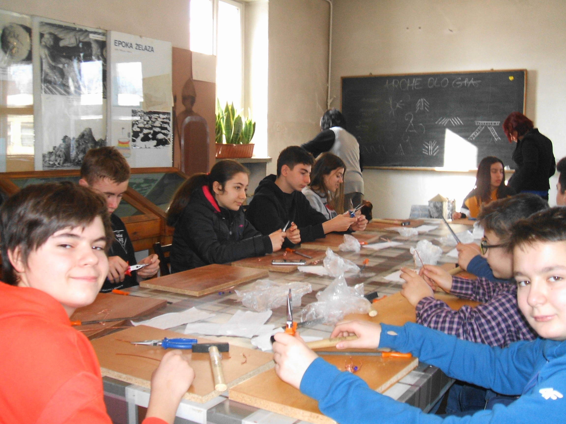 Przygotowaliśmy dla nich zajęcia poświęcone kulturze łużyckiej. Uczestnicy obejrzeli prezentację komputerową i część wystawy archeologicznej poświęcone tym zagadnieniom. Następnie, na warsztatach, wykonywali własnoręcznie prostą zapinkę do odzieży z motywem tarczy słonecznej.