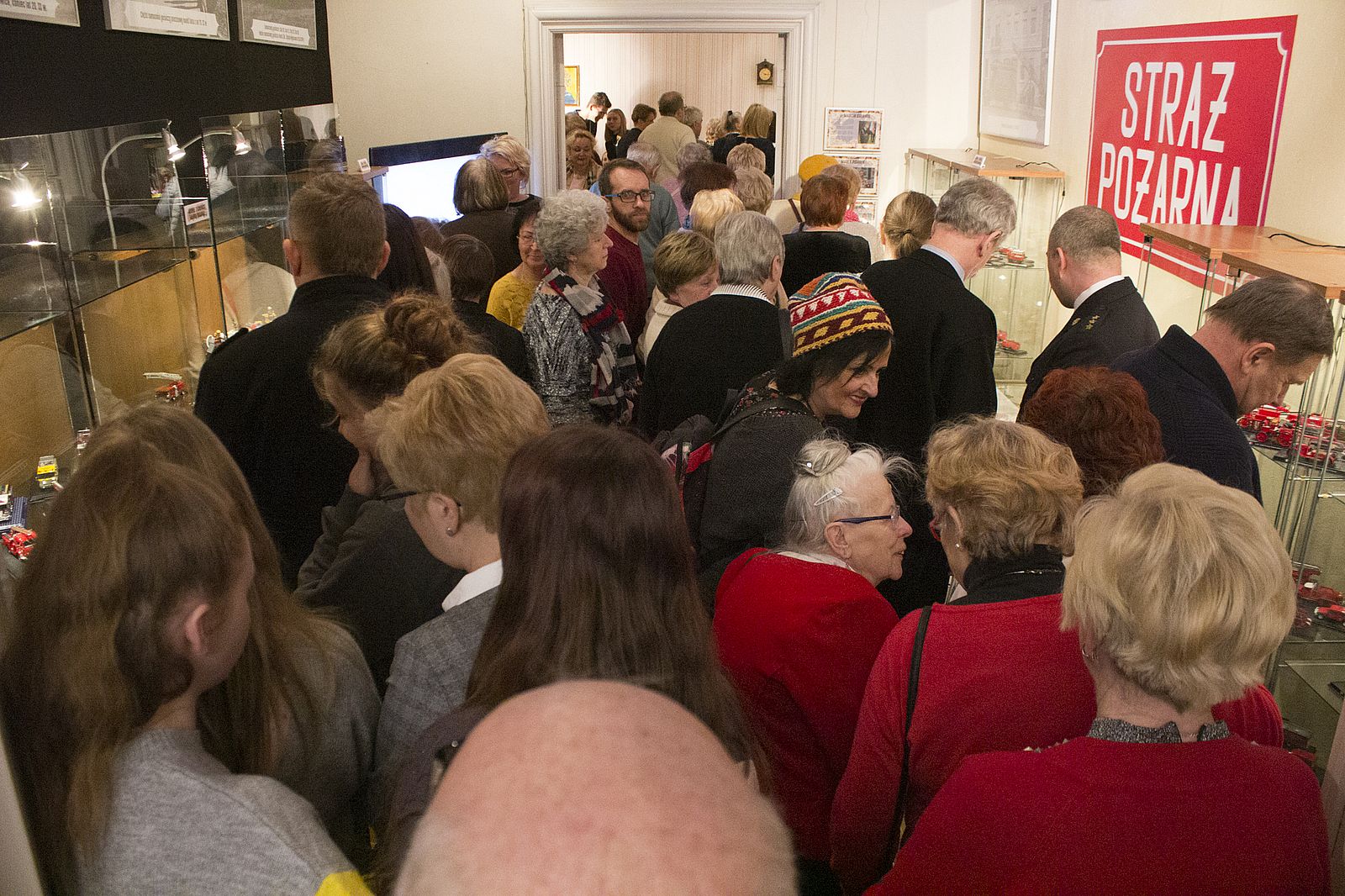Pałacowe sale wypełnili licznie zgromadzeni uczestnicy, którzy wysłuchali ciekawostek na temat pasji do kolekcjonowania w przekazie pani dyrektor Wioletty Lisowskiej. Prelekcję na temat historii zabawek a w szczególności lalek i modeli samochodów wygłosili kuratorzy wystawy Joanna Kobryń i Adam Sygacz. Po prelekcji uczestnicy wernisażu mogli posłuchać ciekawostek na temat kolekcji, które zaprezentowali autorzy wystawy - Urszula Góra opowiadała o swoich zbiorach lalek, kpt. Marcin Kulawik i pan Marek Pisarek opowiedzieli o kolekcjonowaniu modeli samochodów pożarniczych. Po części oficjalnej niezwykle licznie zgromadzeni goście w towarzystwie autorów obejrzeli wystawę lalek i modeli samochodów strażackich. Odwiedzający z dużym zainteresowaniem nie tylko podziwiali eksponaty ale także chętnie podpytywali autorów o szczegóły ich bogatych kolekcji. Serdecznie dziękujemy wszystkim, którzy odpowiedzieli na zaproszenie naszego muzeum. Wystawa potrwa do 28 kwietnia 2019 r. Zapraszamy do obejrzenia galerii zdjęć z tego wydarzenia.