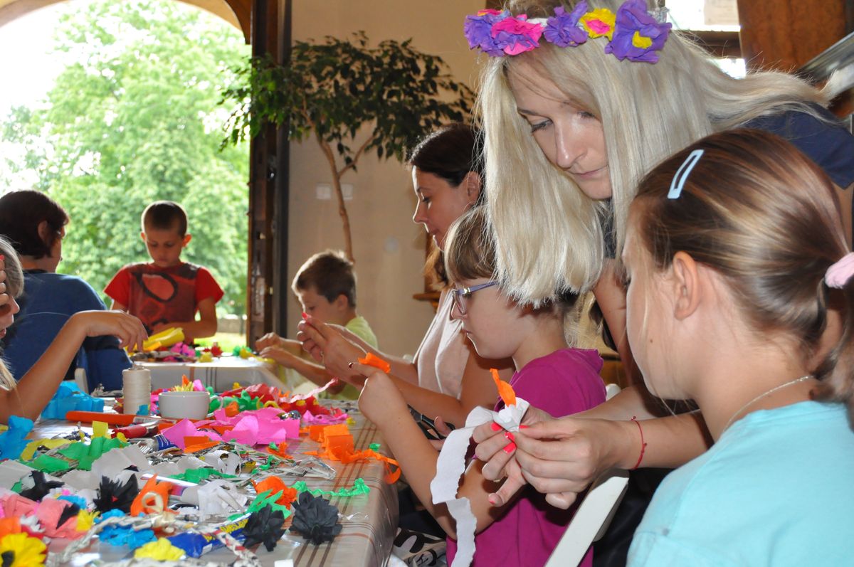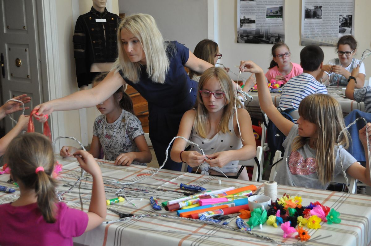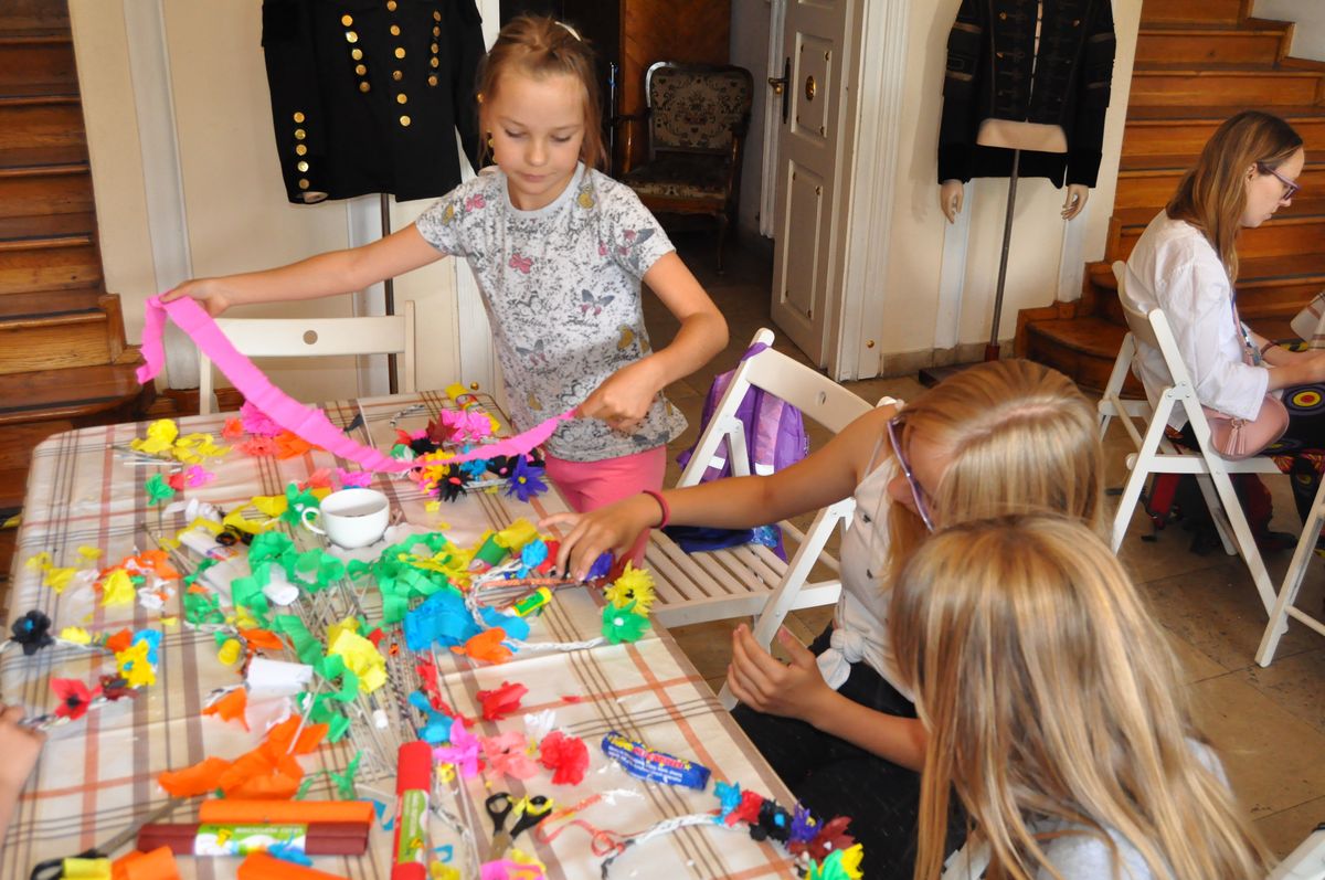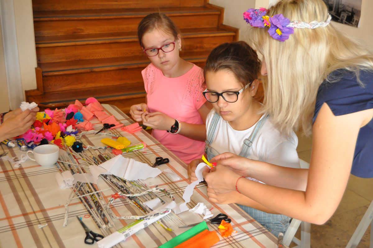To właśnie u nas, w Pałacu Mieroszewskich, w środowe przedpołudnie odbyły się zajęcia plastyczne, podczas których uczestnicy wykonywali oryginalne, wielobarwne wianki z papierowej wikliny oraz kwiaty z bibuły. Doskonaląc umiejętności manualne przygotowali wspaniałe upominki nie tylko dla siebie, ale też dla swoich sióstr, mam czy koleżanek. Zajęcia odbyły się w swobodnej, radosnej atmosferze, która towarzyszyła uczestnikom również w dalszej części zajęć - w czasie zwiedzania Zamku i Podziemi będzińskich. W Zamku dzieci poznały tajniki dawnej broni a następnie wyruszyły wraz z przewodnikiem na podziemny spacer korytarzami będzińskiego schronu przeciwlotniczego. W podziemiach z zainteresowaniem wysłuchały ciekawej historii obiektu.
