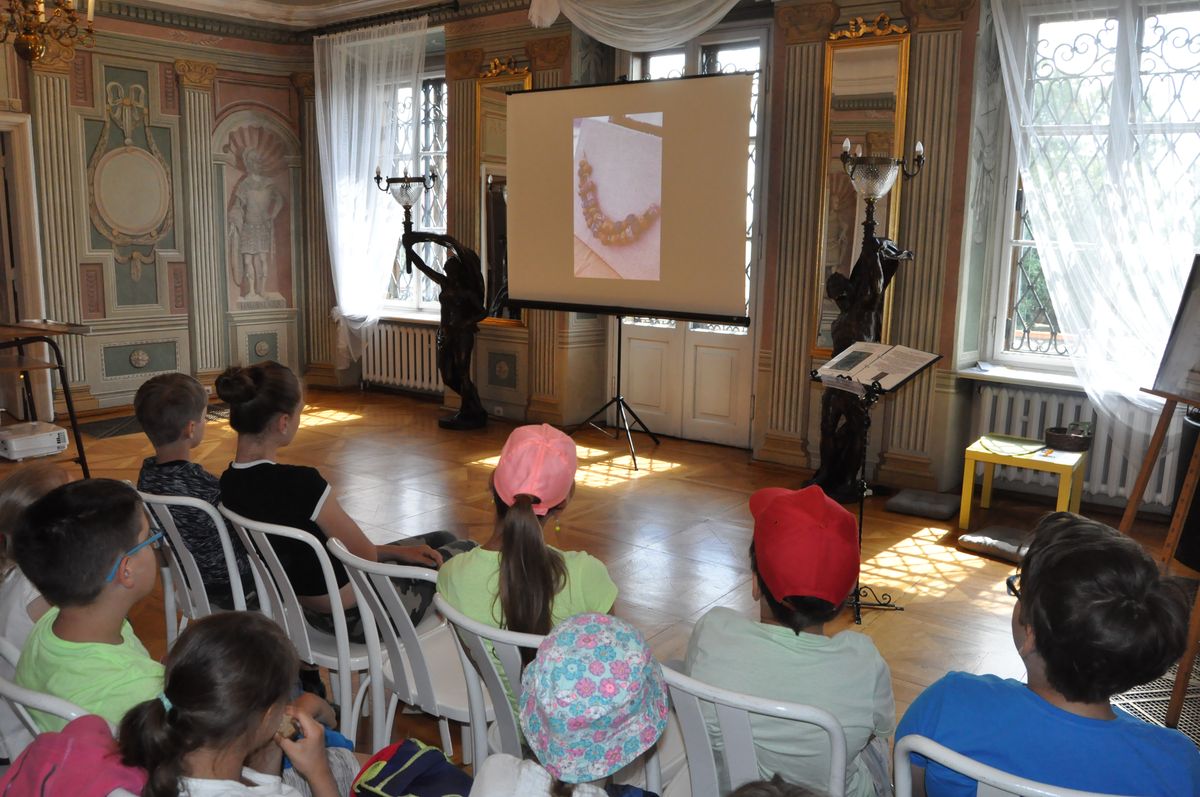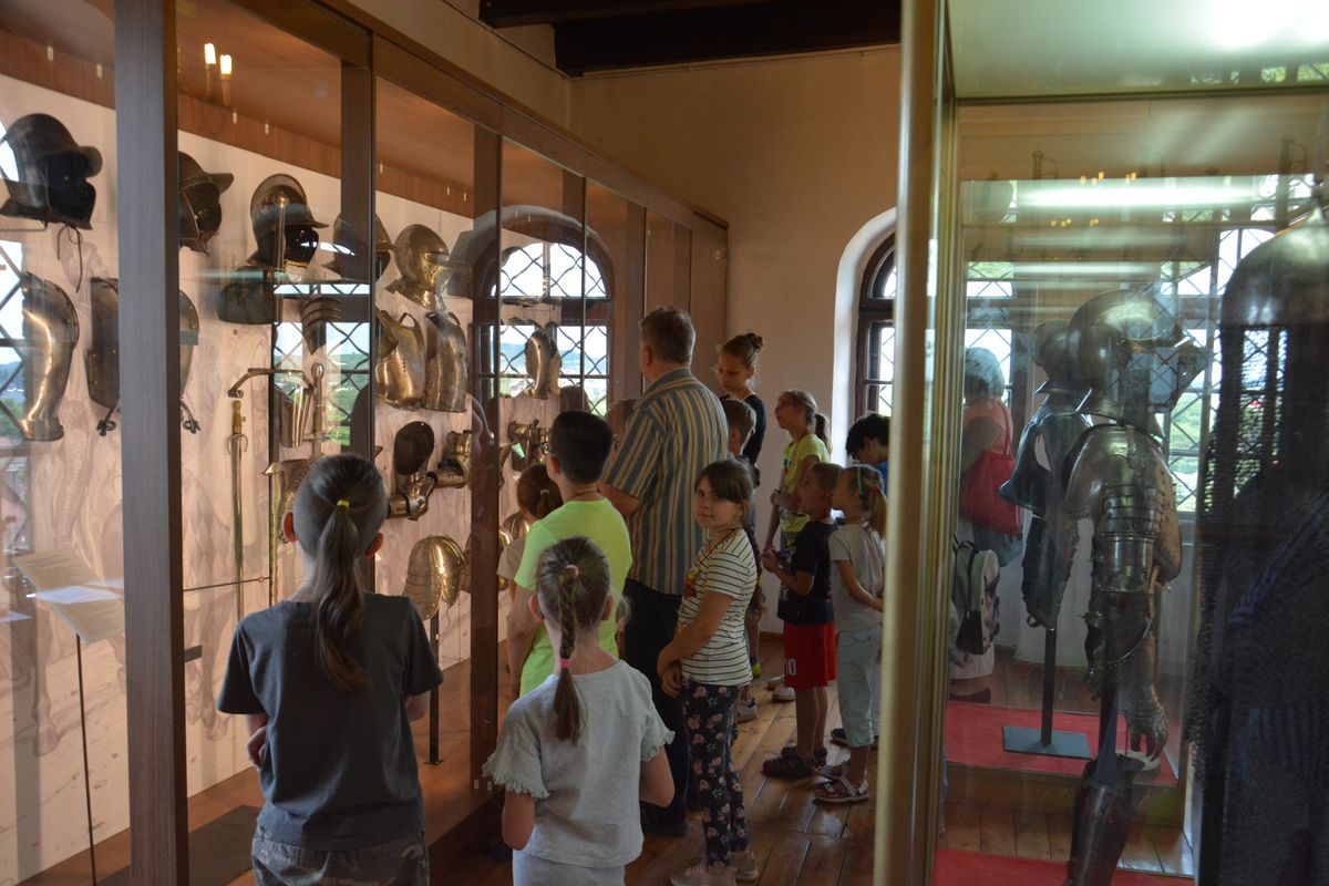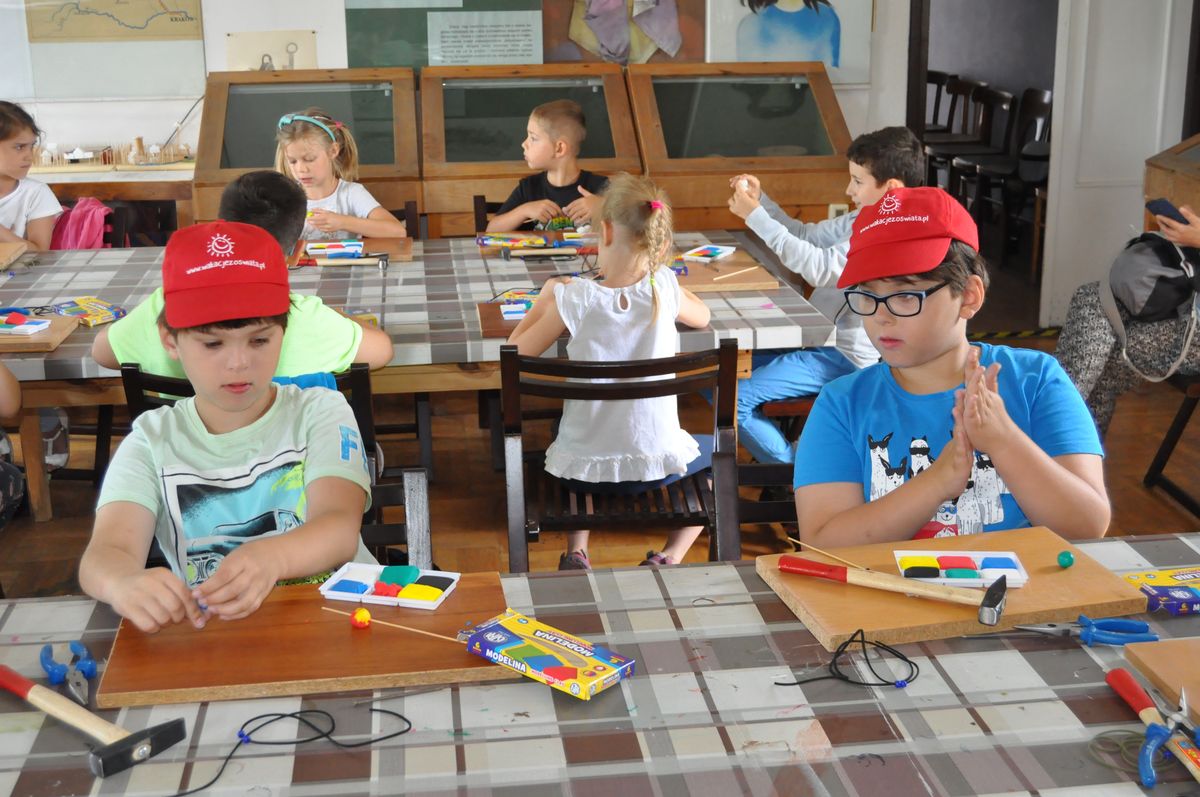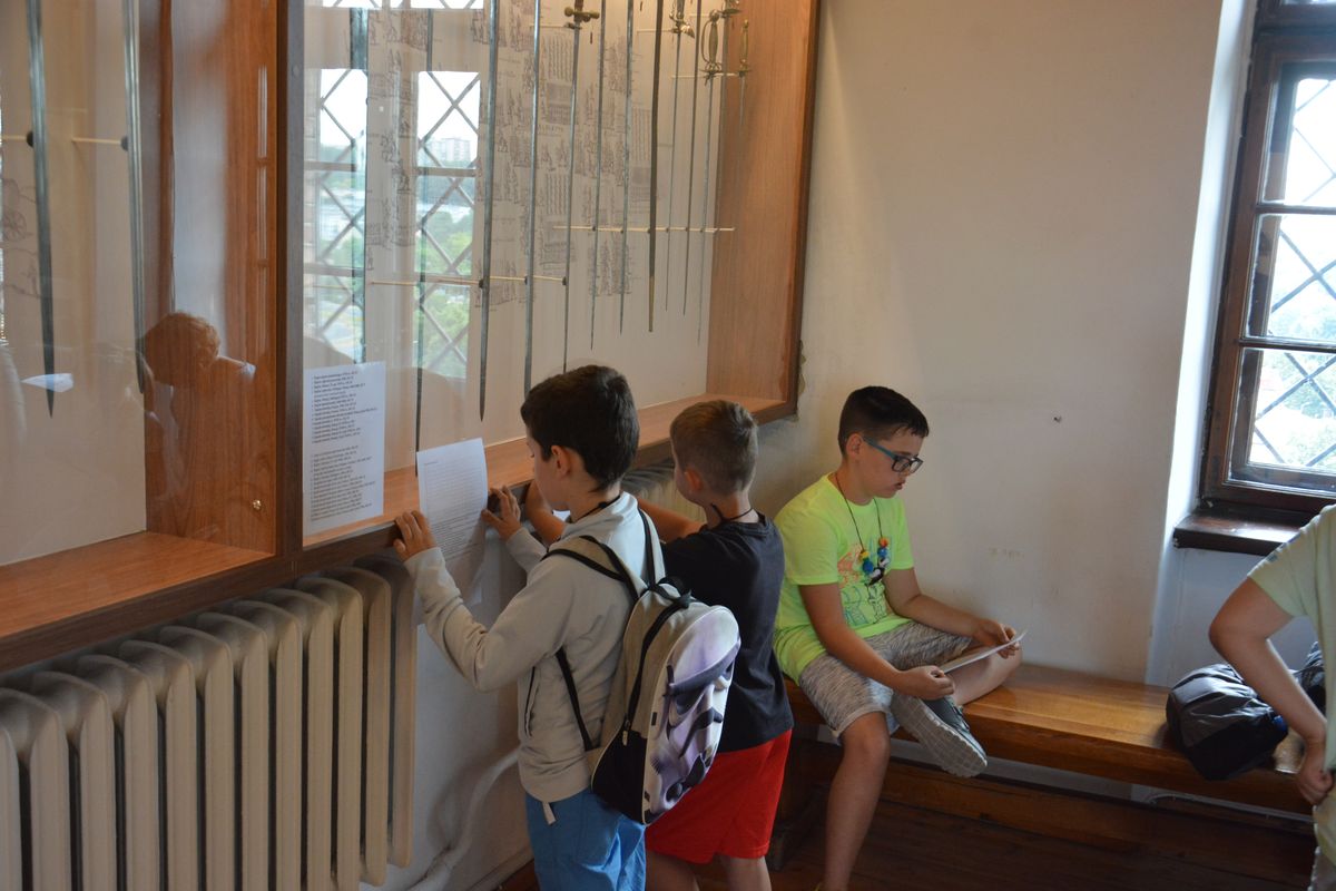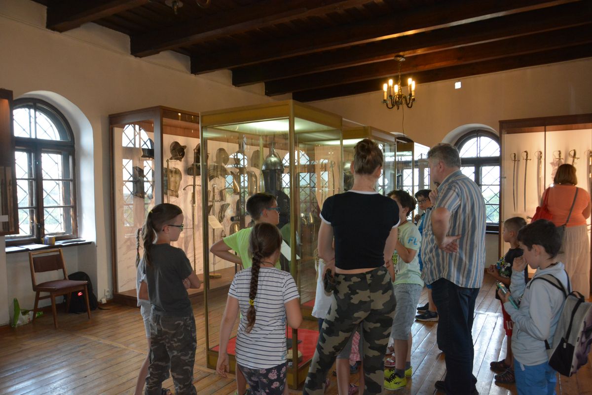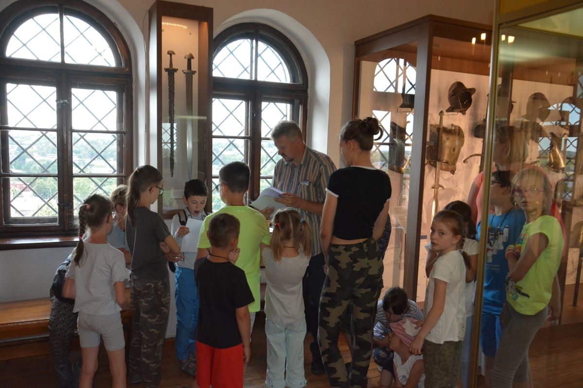 Kolejny dzień zajęć wakacyjnych w naszym muzeum upłynął pod znakiem będzińskiego średniowiecza. Z prezentacji rozpoczynającej spotkanie uczestnicy dowiedzieli się, co z tej odległej epoki zachowało się na - lub pod powierzchnią ziemi i jest nadal do obejrzenia. Następnym punktem programu były warsztaty, podczas których dzieci wykonały kolie z ulepionych własnoręcznie kolorowych paciorków ozdobioną miedzianą, repusowaną zawieszką - lunulą. Taki naszyjnik pasuje "jak ulał" do uszytej na modłę średniowieczną sukienki i można tak wystąpić na którymś z licznie ostatnio organizowanych festynów, czy pokazów rycerskich. O rycerzach traktowała druga część zajęć, która miała miejsce w Zamku. Uczestnicy muzealnych zajęć mogli przekonać się jak poprzez pazia oraz giermka, młody mężczyzna mógł zostać pasowany na rycerza. Uczestnicy zajęć zobaczyli jak wyglądała zbroja rycerska, z jakich elementów się składała oraz jakiej broni używał rycerz. Dzieci dowiedziały się także, jakimi zasadami musiała się kierować w swym postępowaniu osoba, chcąca wstąpić do stanu rycerskiego. Zwieńczeniem zajęć było rozwiązywanie krzyżówek związanych ze średniowieczną tematyką.