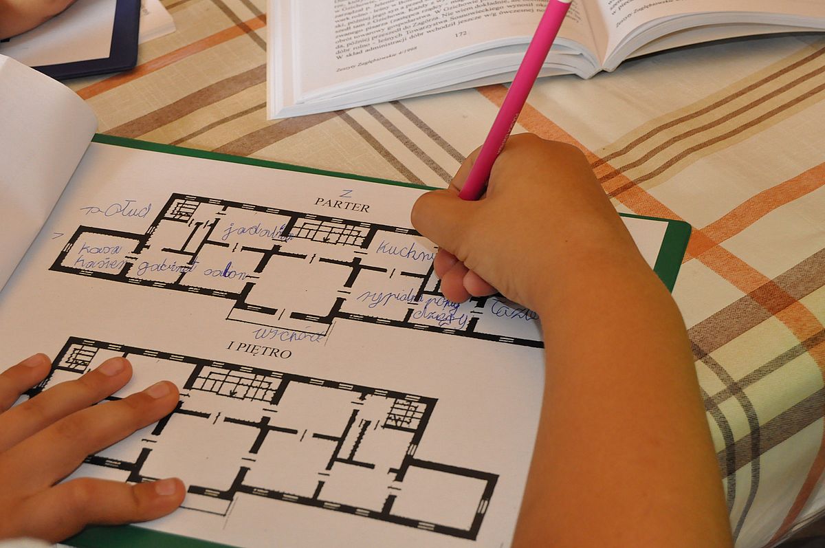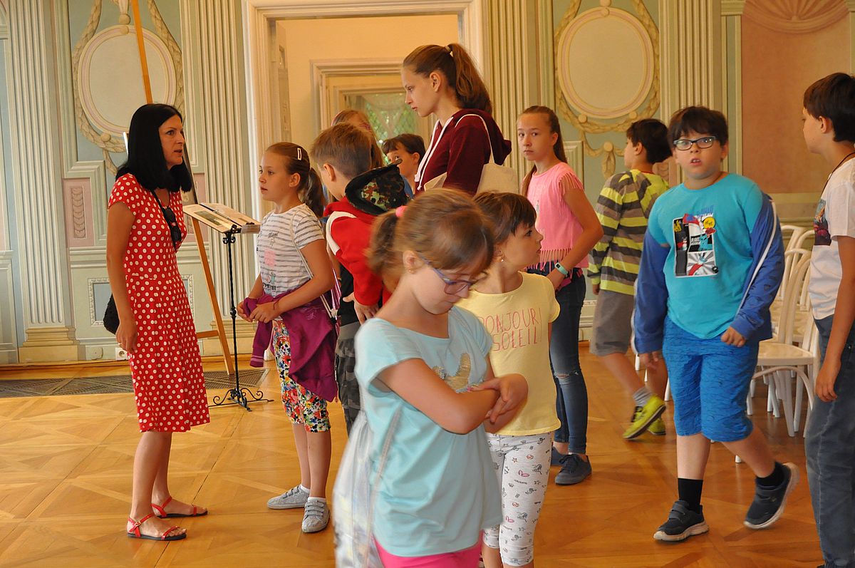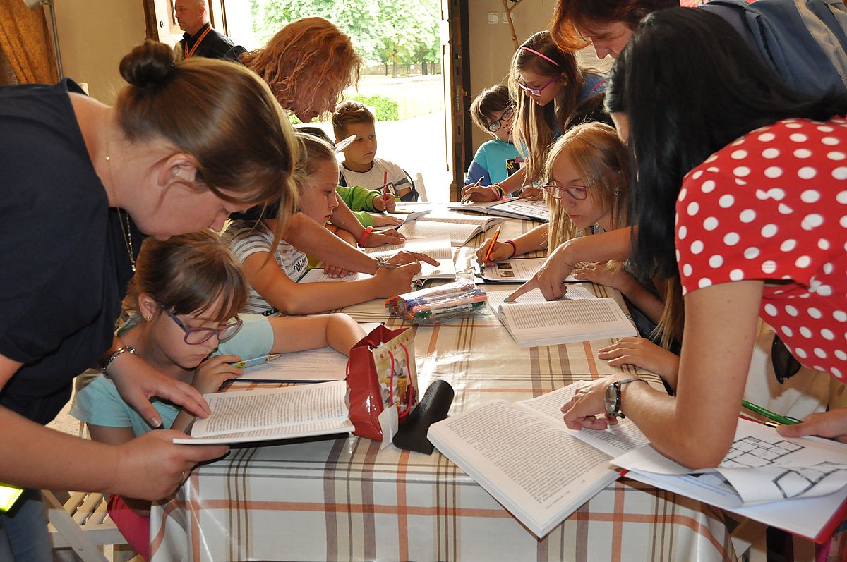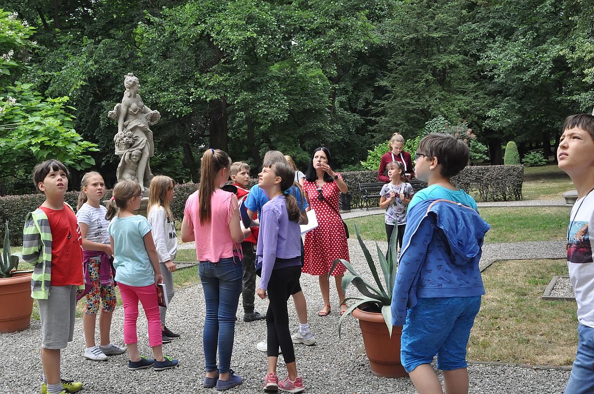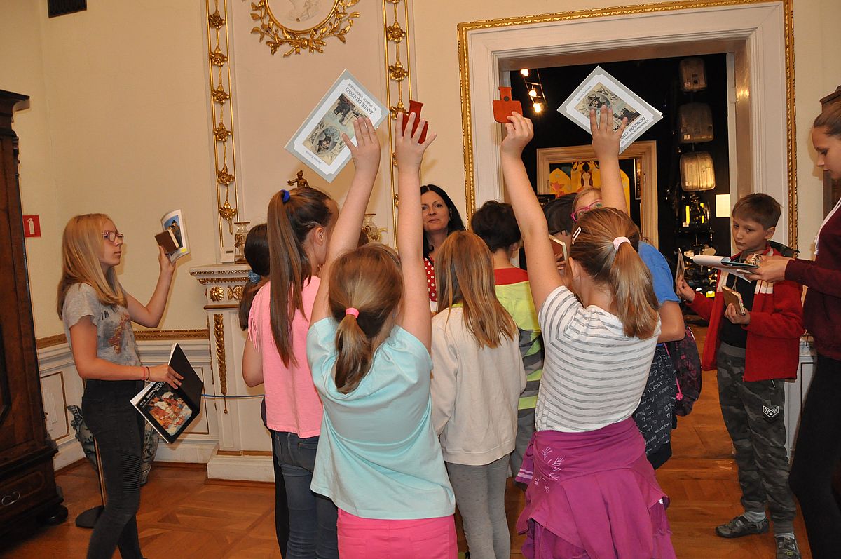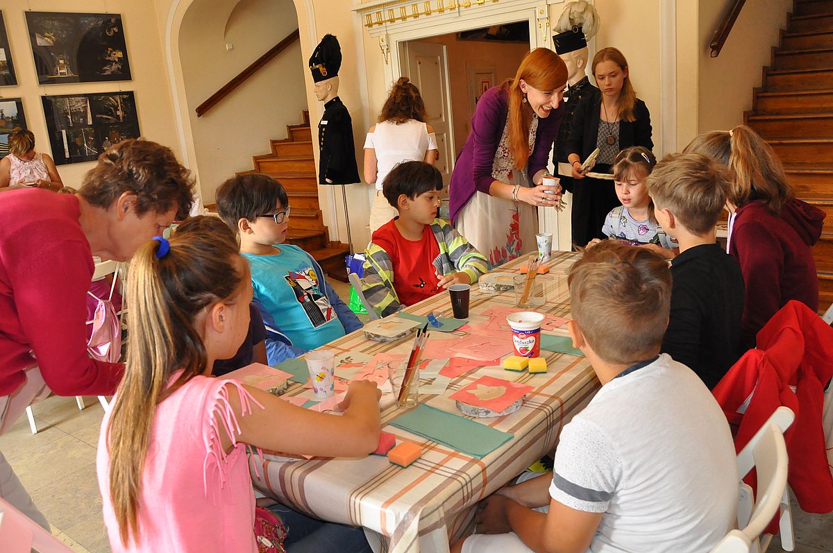 Na początek zaplanowano grę terenową „Wspomnienie o Gzichowie, czyli perypetie stróża nocnego Mitki”. Zajęcia miały przybliżyć życie właścicieli pałacu w okresie międzywojennym. W tym czasie w Pałacu Mieroszewskich mieszkała rodzina Krąkowskich. Mieczysław Krąkowski był administratorem Dóbr i Lasów Sosnowieckiego Towarzystwa Kopalń i Zakładów. Przed uczestnikami postawiono nie lada trudne zadanie - wymagające spostrzegawczości, umiejętności uważnego czytania tekstu i orientacji w terenie. Dzieci uczestniczące w zajęciach miały pomóc stróżowi nocnemu, niejakiemu Mitce odnaleźć pana administratora, któremu miał dostarczyć „tajemniczą przesyłkę” z przyszłości. W odnalezieniu przesyłki pomógł im tekst pamiętnika braci Krakowskich, który drukowany był swego czasu w „Zeszytach Zagłębiowskich”. Tajemniczą przesyłka została odnaleziona w jednej z sal na I piętrze Pałacu. Zawierała pamiątki muzealne dla uczestników naszych dzisiejszych zajęć.