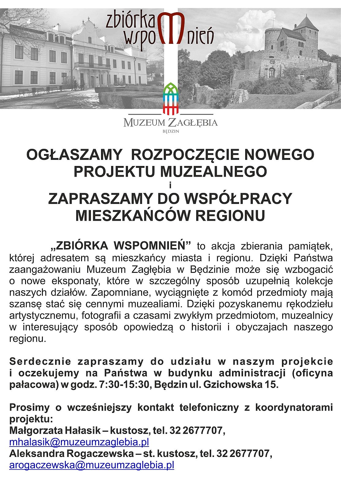 Projekt „ZBIÓRKA WSPOMNIEŃ” jest długotrwałym programem zbierania pamiątek i zakłada zorganizowanie elektronicznego albumu przedstawiającego dary na stronie internetowej „Album familijny” – bo taką nazwę będzie nosić elektroniczna forma prezentacji nabytków wraz z Państwa opowieściami i komentarzami.