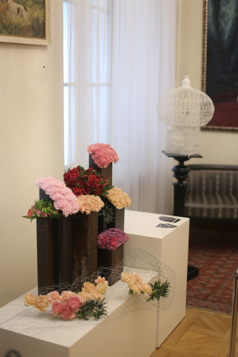 Agnieszka Gałgus-Braumberger stworzyła w swojej kompozycji estetyczno-kubistyczny „przepych”. Prostokątne formy kwietników, na których szczycie w idealnym porządku zostały ułożone rośliny przypominały jeden z punktów nowoczesnej architektury Le Corbusiera, a mianowicie tworzenia ogrodów na dachach budynków. Skojarzenie jest nie przypadkowe, ponieważ florystyka inspirowała się pejzażami miejskimi Cyglera, gdzie dominują zabudowania.