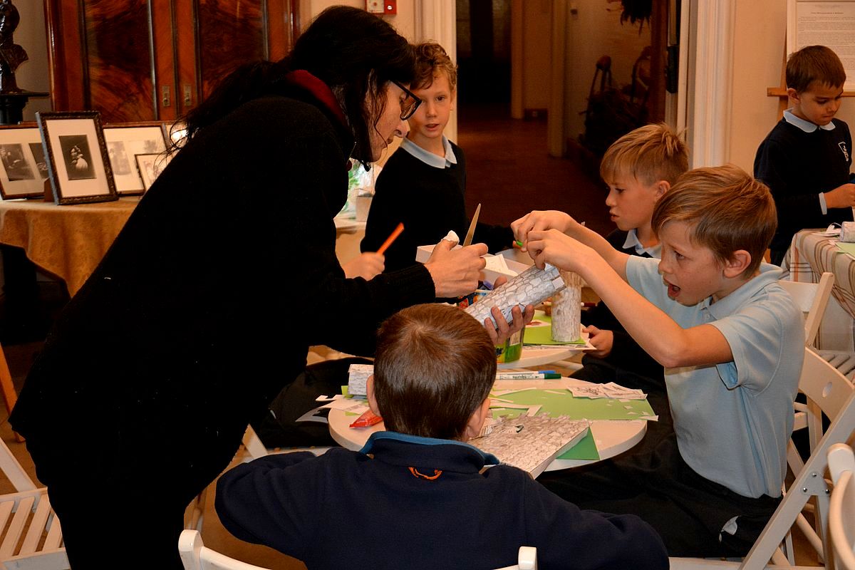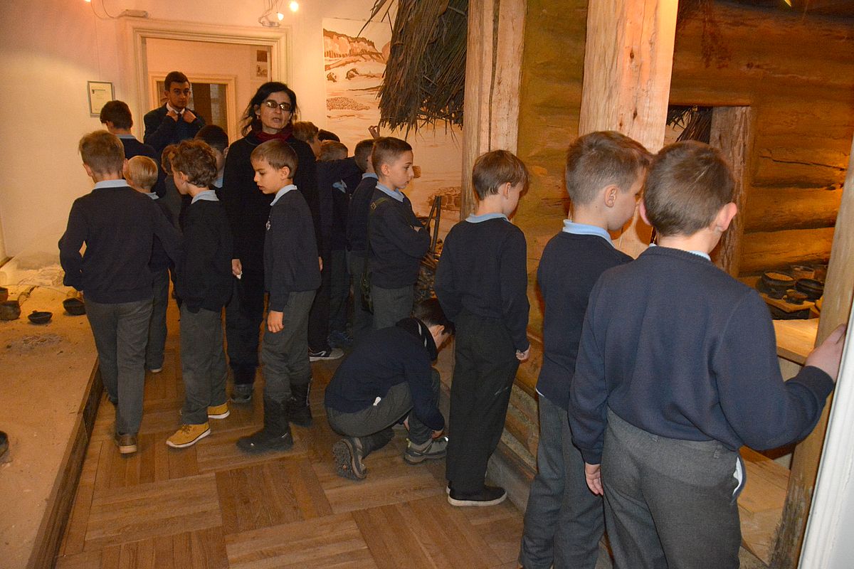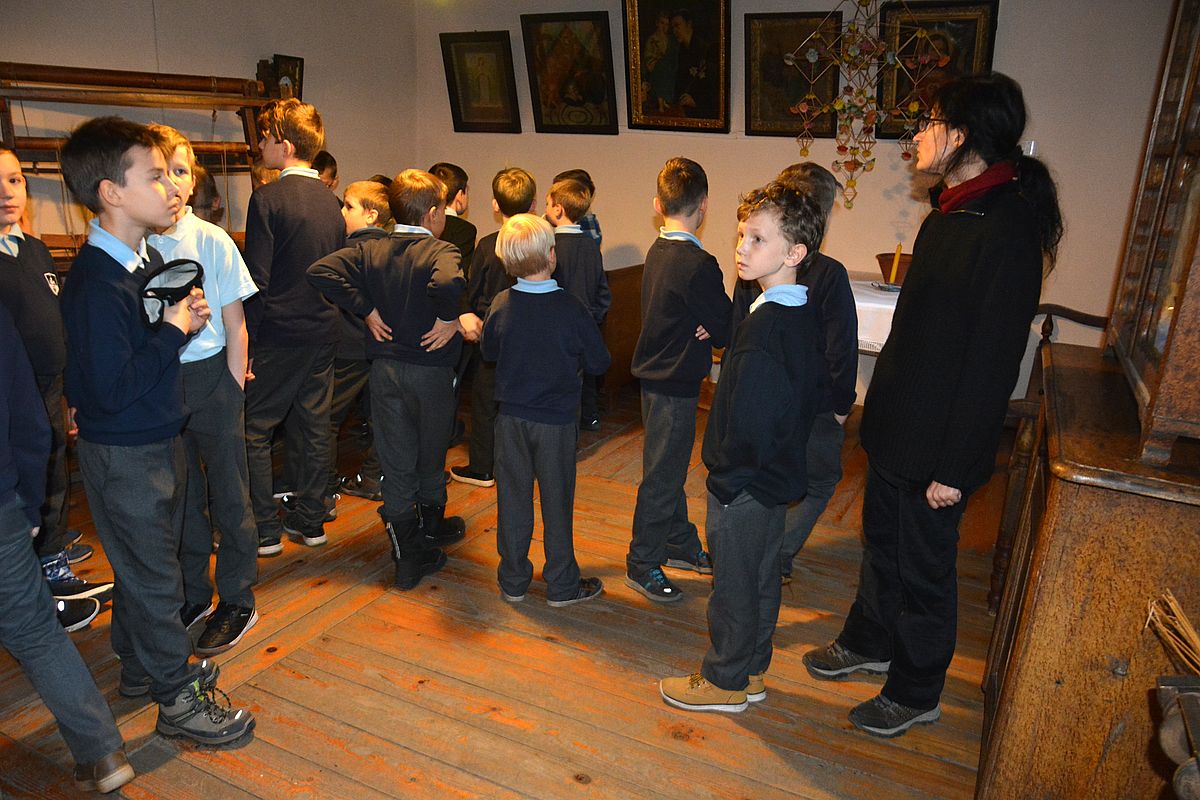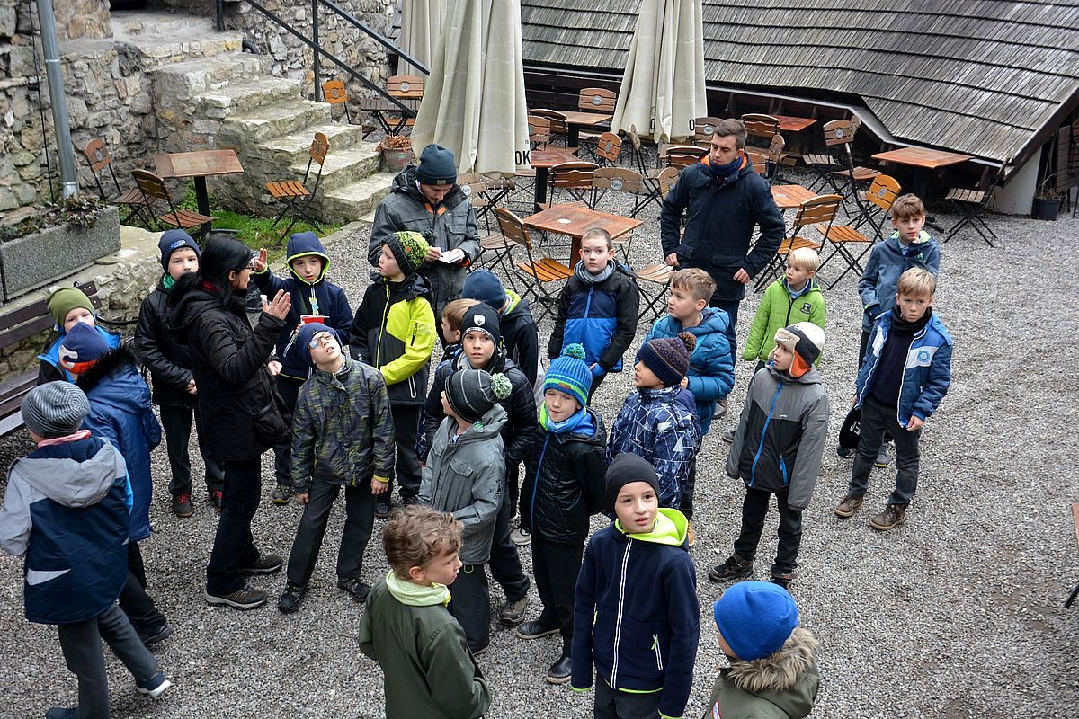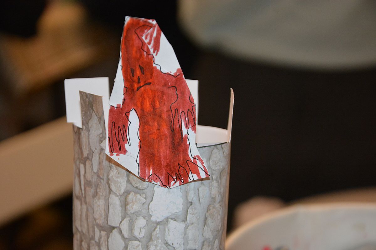 Zajęcia rozpoczęły się na Wzgórzu Zamkowym, gdzie uczestnicy dowiedzieli się, jak wyglądało życie w średniowiecznym grodzie. Wędrując wzdłuż murów obronnych Zamku zapoznali się z architekturą obronną będzińskiej warowni i zasadami wznoszenia fortyfikacji. Następnie, po pokonaniu stu siedmiu schodów prowadzących na stołp – najstarszą część Zamku, uczestnicy lekcji podziwiali panoramę współczesnego miasta i dowiedzieli się, jakie procesy i wydarzenia wpłynęły na jego układ. Kolejnym przystankiem dla młodych badaczy historii był most na Czarnej Przemszy. Po zapoznaniu się z rolą i znaczeniem rzeki na przestrzeni wieków, uczniowie wraz z opiekunami skierowali kroki do Pałacu Mieroszewskich, zachwycając się po drodze architekturą i rozplanowaniem gzichowskiego zespołu pałacowo – parkowego. Spacer zakończyło zwiedzanie wystaw: archeologicznej, przybliżającej temat warunków życia w osadzie kultury łużyckiej i w średniowiecznym grodzie oraz etnograficznej, która pozwoliła uczestnikom dowiedzieć się, jak wyglądało wyposażenie chaty zagłębiowskiej i zajęcia ludności. Podsumowaniem spaceru były warsztaty plastyczne, w czasie których uczestnicy wykonywali makiety średniowiecznego zamku i ozdabiali je, podążając za swoją wyobraźnią i kreatywnością.