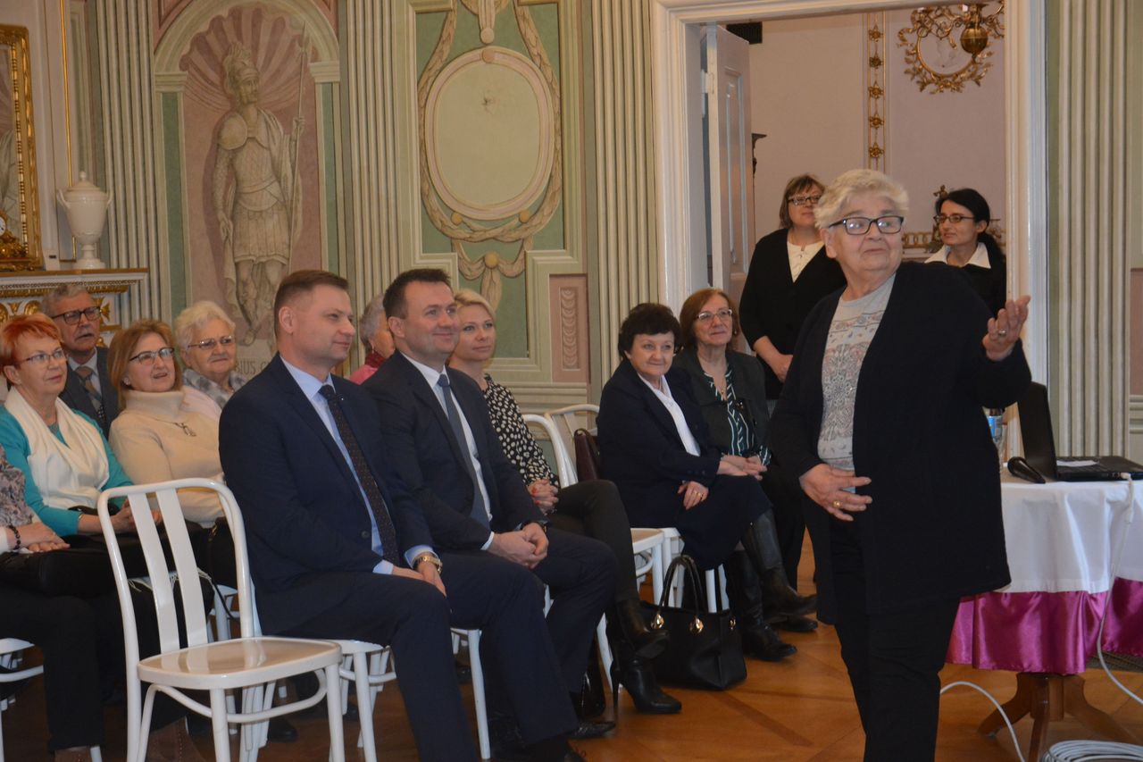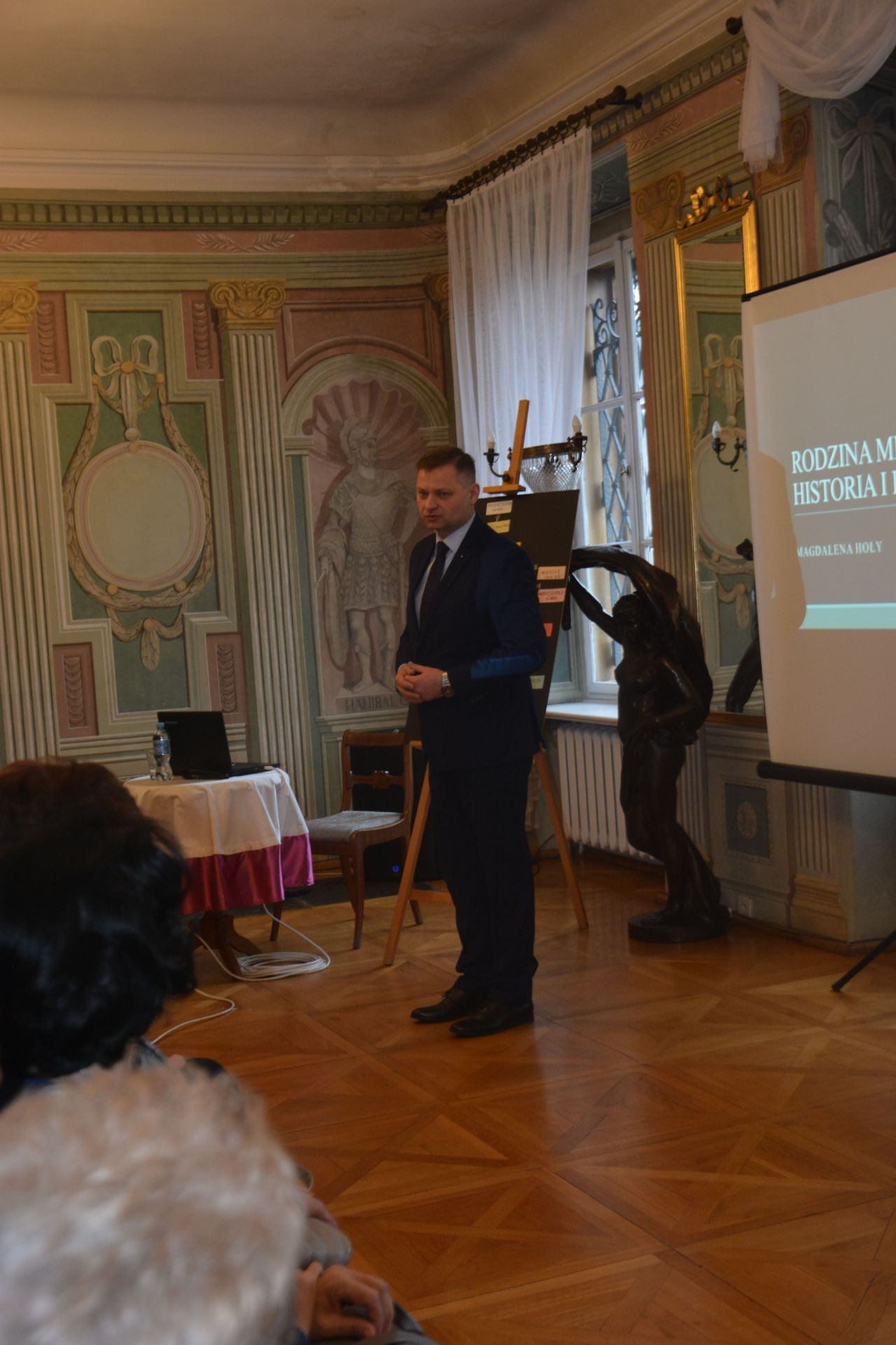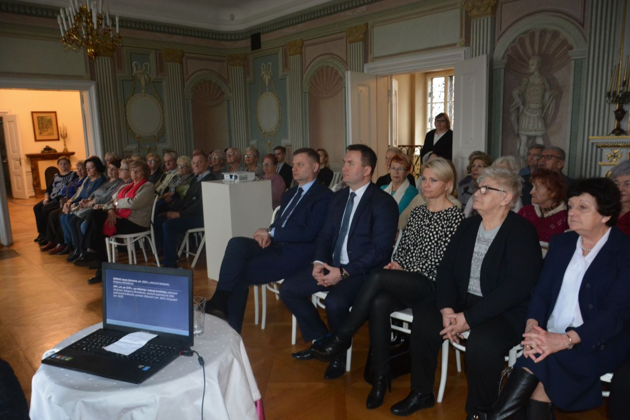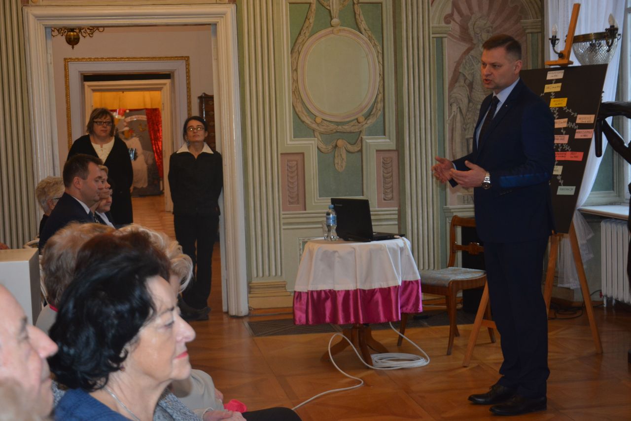 w którym uczestniczyli także zaproszeni goście – Wiceprezydent Będzina Aneta Witkowska – Złocka, Starosta Będziński Sebastian Szaleniec, oraz Poseł na Sejm RP Rafał Adamczyk. Po powitaniach i życzeniach zgromadzeni wysłuchali wykładu o dawnych mieszkańcach Pałacu: „Rodzina Mieroszewskich – historia i legenda” oraz zwiedzili wystawy czasowe: „Życzenia świąteczne w kartkach pocztowych składane” i „Obrzeża czasu. Rzeźba i ceramika Marii Golanki”. Mamy nadzieję, że miła, serdeczna i pełna ciepła atmosfera spotkania pozwoli będzińskim seniorom wkroczyć w nowy rok z energią i radością życia.