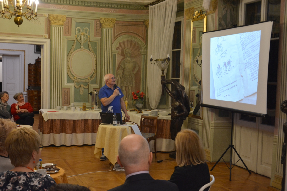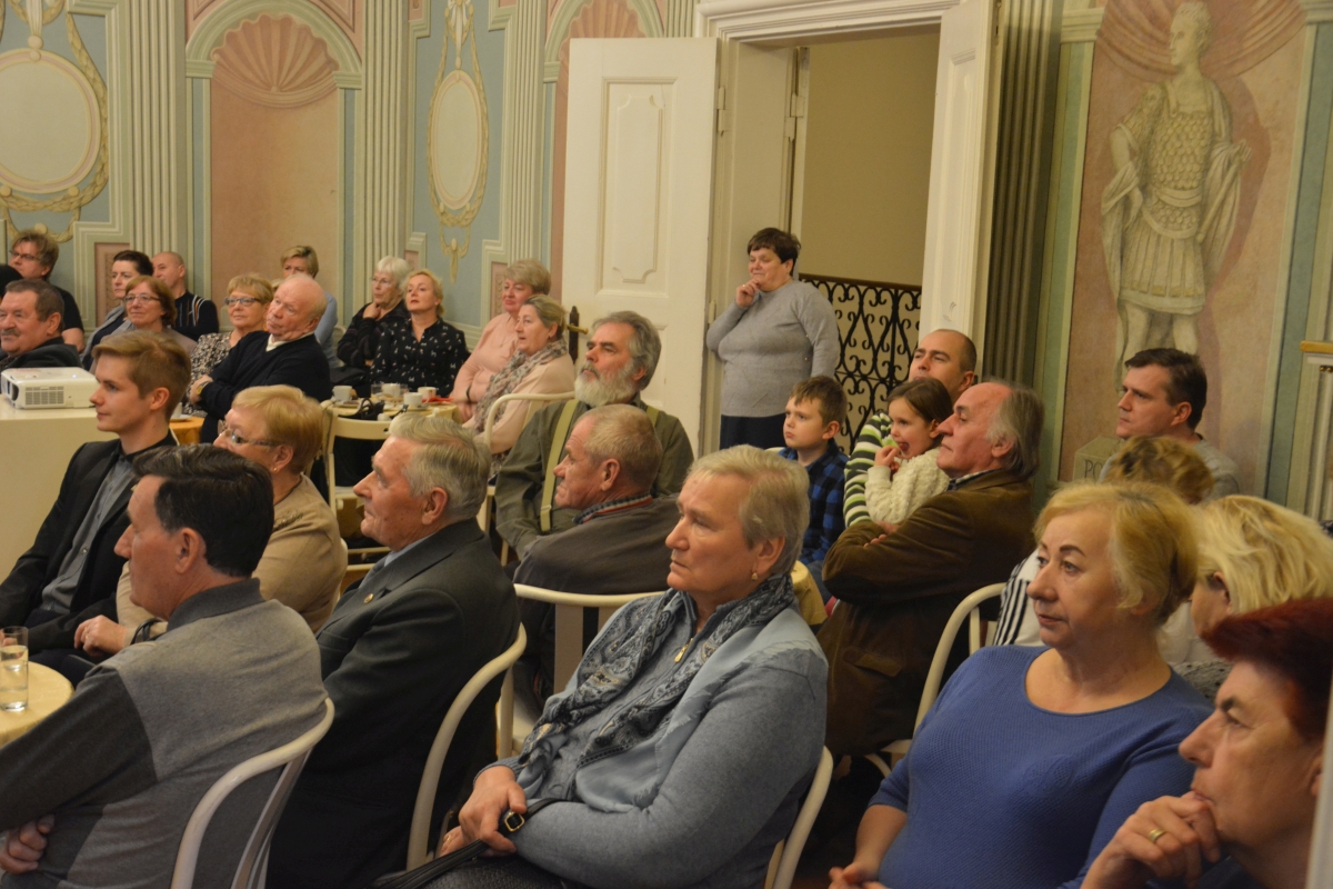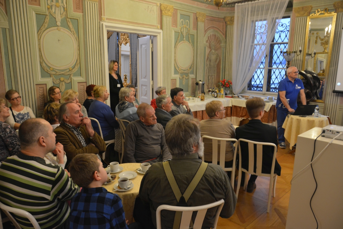 Pałacowe sale wypełnili licznie zgromadzeni goście, którzy z zainteresowaniem wysłuchali ciekawostek na temat rowerowej pasji głównego bohatera spotkania, który w swojej prelekcji zawarł liczne ciekawe anegdoty. Znalazła się wśród nich między innymi opowieść o byłej fabryce jednośladów która mieściła się w naszym mieście, oraz o starych, dość zabawnych przepisach drogowych zakazujących między innymi prowadzenia bydła podczas jazdy na rowerze.