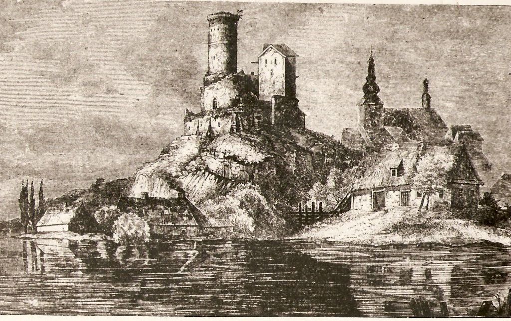 i wreszcie - budowę w II połowie XIII w. pierwszego elementu obronnego - wieży cylindrycznej, stanowiącej pierwszy etap budowy kamiennego zamku.