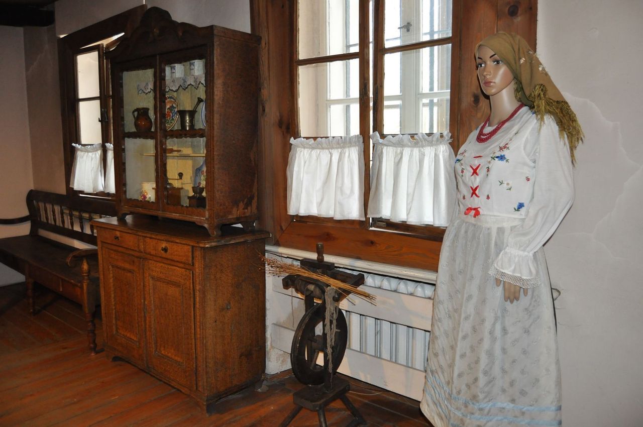 Tradycyjny ubiór męski stroju będzińsko – siewierskiego nie zachował się w zbiorach muzeum. Składał się z koszuli, spodni, kamizeli, kaftana, surduta lub tzw. guni, tj. okrycia zwierzchniego, uszytego z białego płótna z długimi rękawami, butów z cholewami do których wpuszczano nogawki spodni i z kapelusza. Zimą mężczyźni nosili baranicę.