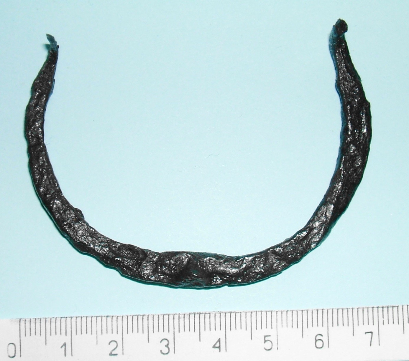 Otóż były takie raki, które zimowały na butach. W średniowieczu kwestia obuwia była w ogóle traktowana nieco mniej zobowiązująco, niż w czasach nam współczesnych. Owszem, znane były buty, skórzane, nieraz nawet finezyjnie zdobione ażurem i haftem, o czym wiemy z wykopalisk i z tak zwanych źródeł ikonograficznych, czyli przedstawień postaci ludzkich w sztuce. Wiemy też, że niektóre niewiasty nosiły pierścionki nie tylko na palcach rąk lecz także i nóg. Bardzo niewygodnie byłoby zakładać wtedy buty. Przypuszczamy, że w okresie letnich miesięcy często poruszano się bez nich. Okoliczności też były bardziej sprzyjające niż obecnie. Ludzkie ścieżki nie bywały wylewane asfaltem, czy wykładane betonem. Chodzono po ziemi, trawie lub co najwyżej po kamiennych, wydeptanych brukach. Tak czyniono latem. Natomiast zimą, przy ostrzejszym niż dzisiaj klimacie, trzeba już było nosić buty lub przynajmniej plecione łapcie. Kiedy, na przykład, chciano poślizgać się po zamarzniętym stawie, przywiązywano do butów kościane łyżwy. Można je było wykonać samemu, wystarczyło podpiłować po obu stronach zwierzęcą kość, tak, żeby powstała podłużna, ostra krawędź oraz przebić z przodu i tyłu otwory do przywiązania. I tak się ślizgano. Jeśli zaś ktoś miał poważniejsze sprawy na głowie niż zimowe zabawy, sprawiał sobie inny sprzęt. Ten już trzeba było zamówić u kowala. Niechcianym poślizgom zapobiegały raki. Były to niewielkie podkówki, takie jak na zdjęciu. Przybijano je do obcasów po stronie spodniej. Skutecznie chroniły zimowych wędrowców, poruszających się po zbyt wygładzonym podłożu, przed utratą równowagi.