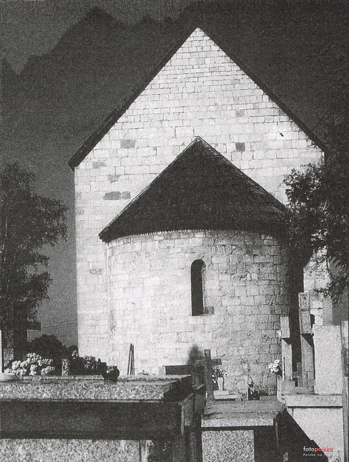 Na ścianach kościoła odkryto malowidła z różnych okresów dziejowych. Freski romańskie znajdowały się w apsydzie, w układzie pasowym, w którym pola wydzielono czerwonymi liniami. Na wysokości dwóch metrów od poziomu posadzki widoczne były zarysy głów w nimbach i uniesionych rąk postaci, których mogło być pierwotnie dwanaście. Był to dolny pas dekoracji, sięgający do podstawy okna. Powyżej mógł znajdować się podobny a na suficie apsydy przedstawienie „Maiestas Domini”, czyli Chrystusa w mandorli podczas sądu ostatecznego. Dekoracja powstała na bardzo cienkiej warstwie pobiały w kolorach: rudawo – brunatnym (kontur) i zółtawo – białawym (karnacja). Zachowane rysy twarzy przywodzą na myśl odniesienia do sztuki bizantyńskiej. Podobnie wyglądały czeskie i austriackie malowidła z 1 połowy XII wieku. Z czasem pokryły je freski gotyckie z motywami: ryb, roślin, czy korony. Na ścianie zewnętrznej przedstawiono w tej samej epoce wizerunek Madonny, który dziś już nie jest widoczny. W 1233 roku, za czasów kasztelana siewierskiego Jaksy, odbył się tu synod biskupów polskich. Kościół stracił znaczenie po lokacji Siewierza w drugiej połowie XIII wieku. W wieku XVII został przebudowany. Zyskał wtedy: przypory ścienne, płaski sufit, barokową wieżyczkę i kruchtę. W połowie XX wieku, podczas kolejnego remontu, przywrócono mu romański charakter. Przeprowadzone wtedy badania georadarowe pozwoliły na wykrycie dwóch krypt pod posadzką. Do początków XX wieku chowano w nich proboszczów parafii. W 2009 roku, w trakcie badań archeologicznych odkryto pozostałości osady targowej, która otaczała pierwotnie świątynię.