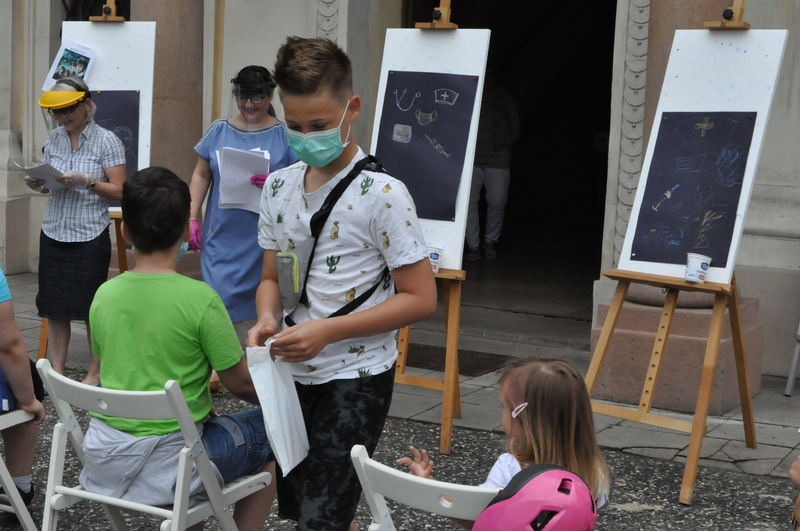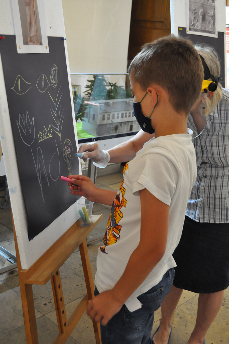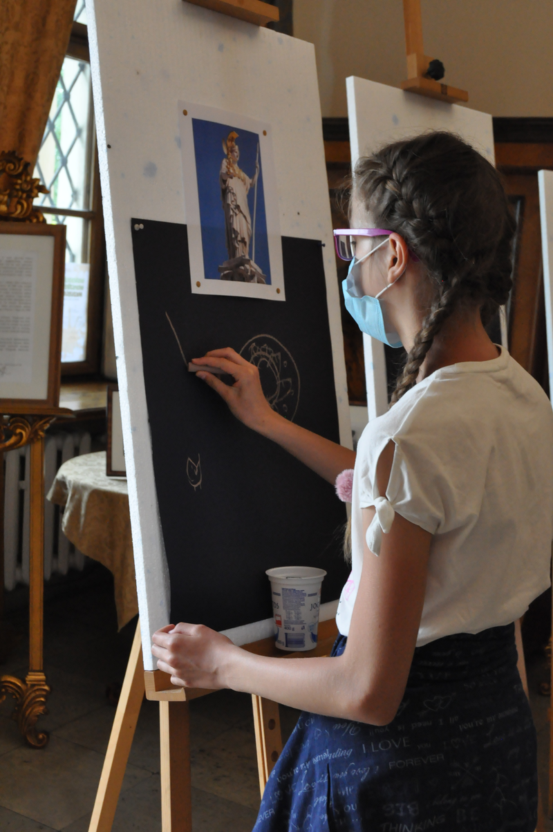 Po krótkim wprowadzeniu w temat, zastanawialiśmy się wspólnie co w takich filmowych produkcjach jak: „Harry Potter”, „Mała Syrenka” Disneya czy „Wojna Tytanów” pochodzi ze spuścizny antyku. Dzieci poznały termin „recepcja antyku” m.in. na podstawie naszych rzeźb parkowych. Warsztaty, na których mogły wykazać się inicjatywą i zdolnościami plastycznymi dotyczyły tematyki atrybucji zarówno w odniesieniu do bóstw świata greckiego, jak i bożyszcz współczesności (vide: Michael Jackson). Nasi uczestnicy świetnie wypadli w konkursie na mityczne skojarzenia - tak dobrze, że konieczna była dogrywka. Po wyłonieniu zwycięzców wręczyliśmy im muzealne upominki.
