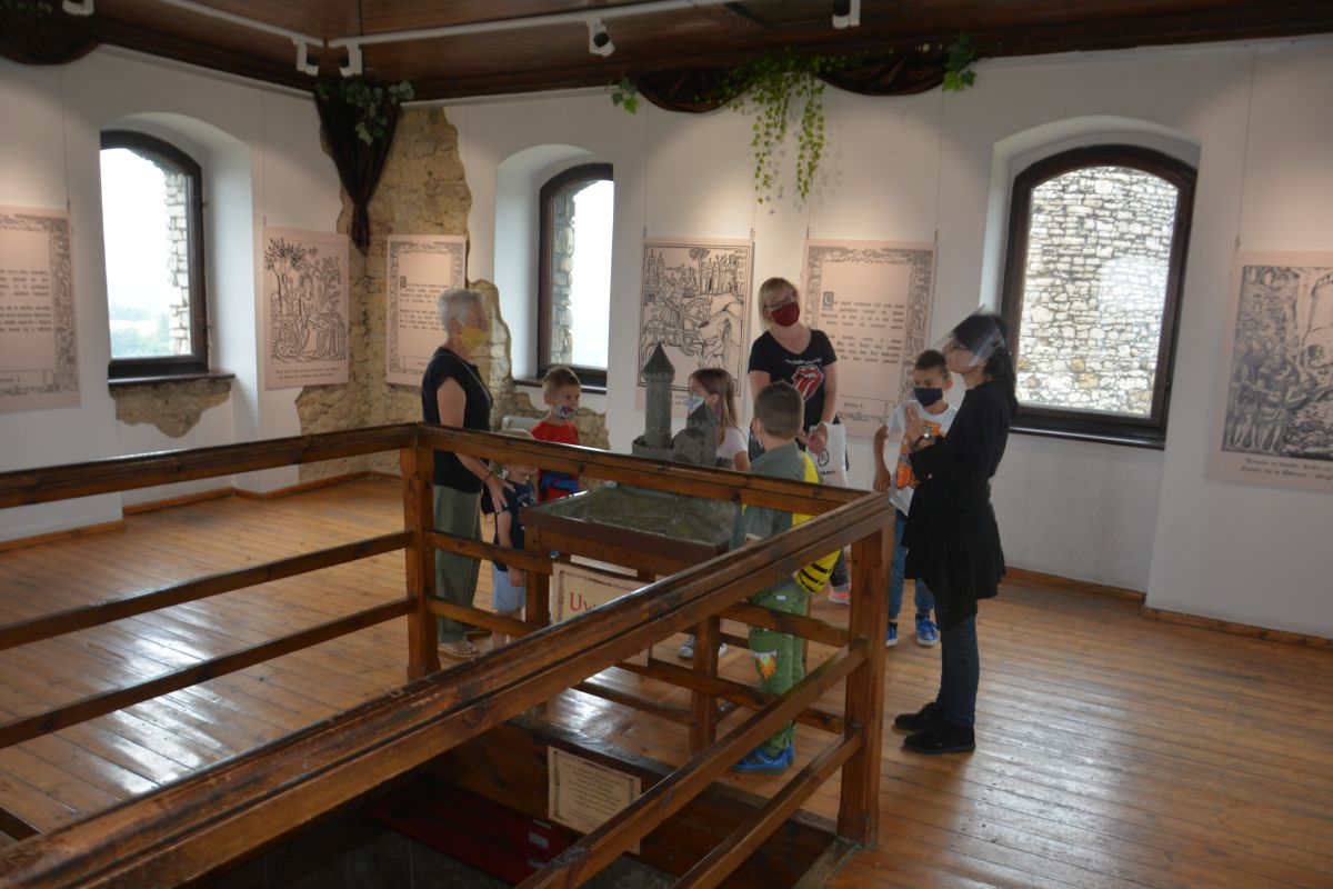 Po zakończeniu mitycznej części zajęć, wszyscy chętni udali się do będzińskiej warowni gdzie zwiedzili wystawę poświęconą historii zamku i miasta. Poznali również tajniki działania broni palnej oraz dowiedzieli się jakiego oręża i uzbrojenia ochronnego używano w przeszłości. W czasie wycieczki nie mogło zabraknąć podziwiania widoków z zamkowej wieży, które nagrodziły trud pokonania ponad stu stopni.