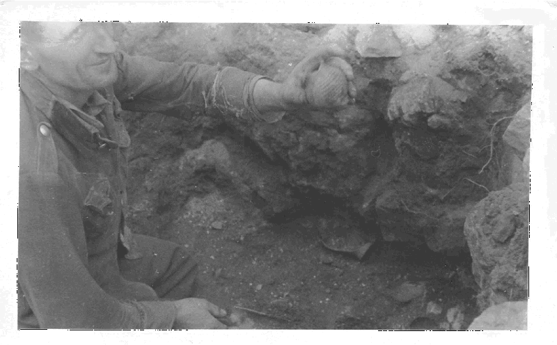 2. Odgruzowanie piwnicy III – moment odkrycia naczynia.
