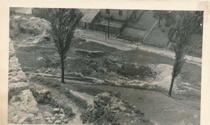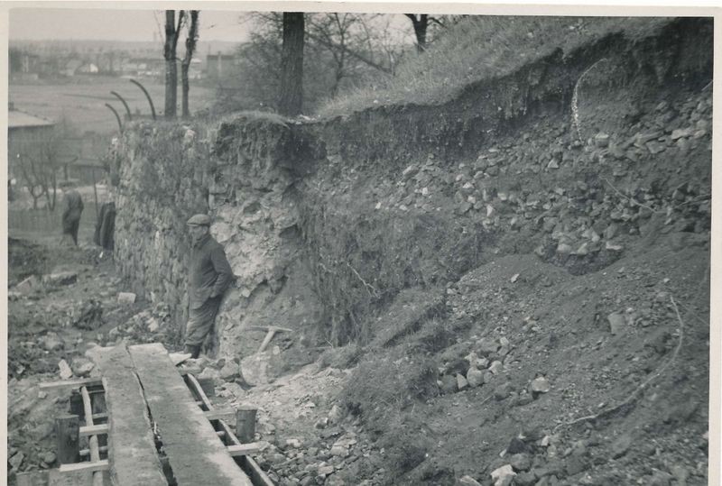 7. Warstwy gruzu spiętrzone na zachodniej skarpie zamku górnego podczas rozbiórki muru parkanowego.