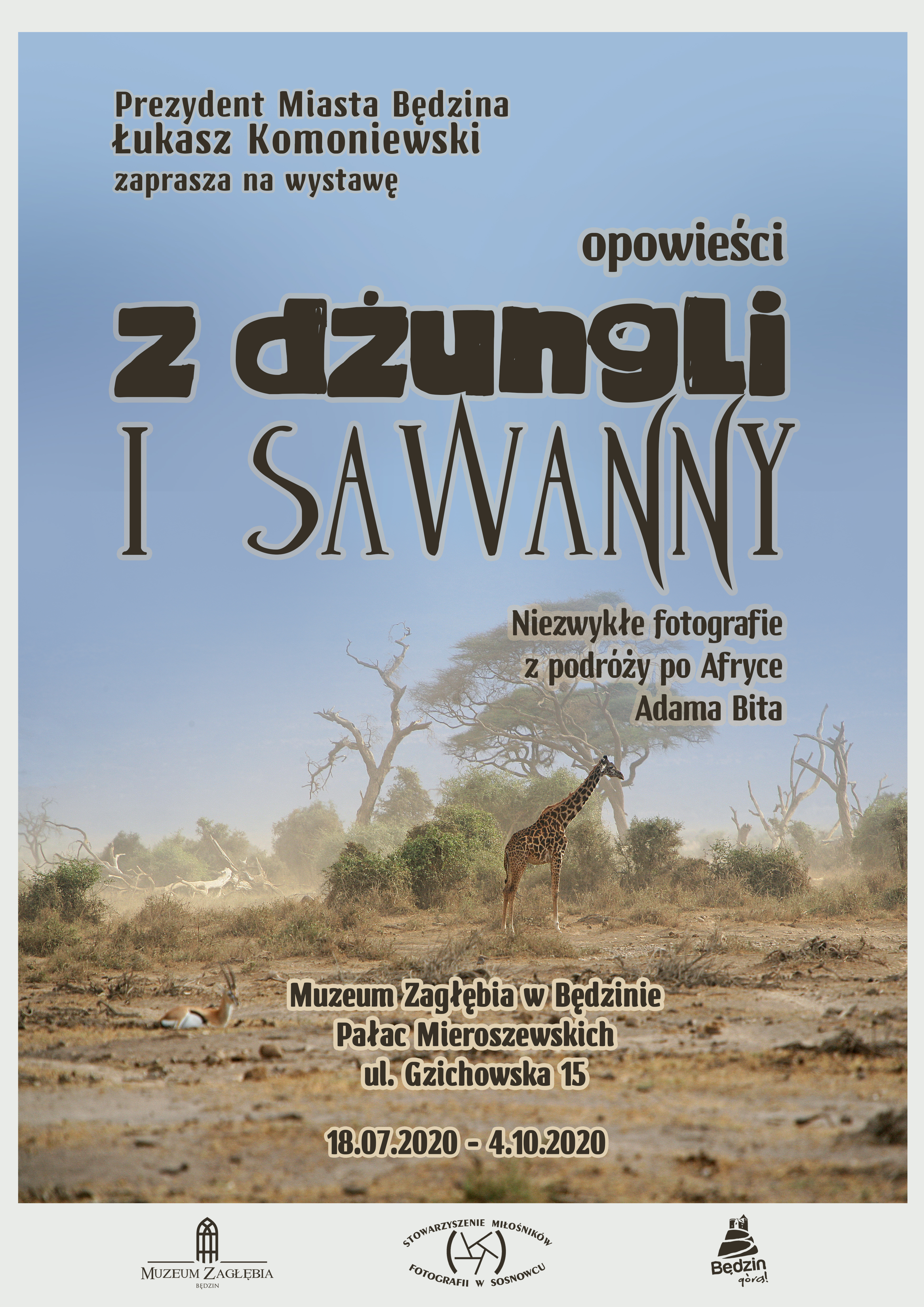 Zapraszamy Państwa na wyprawę do Afryki, na spotkanie z jej dziką przyrodą i bezkresnymi pejzażami, tak odległymi i odmiennymi od wszystkiego co znamy. Wyruszymy w tę podróż dzięki niezwykłym fotografiom Adama Bita. Wystawę Opowieści z dżungli i sawanny można podziwiać od 18 lipca 2020 r. w Pałacu Mieroszewskich. Serdecznie zapraszamy.