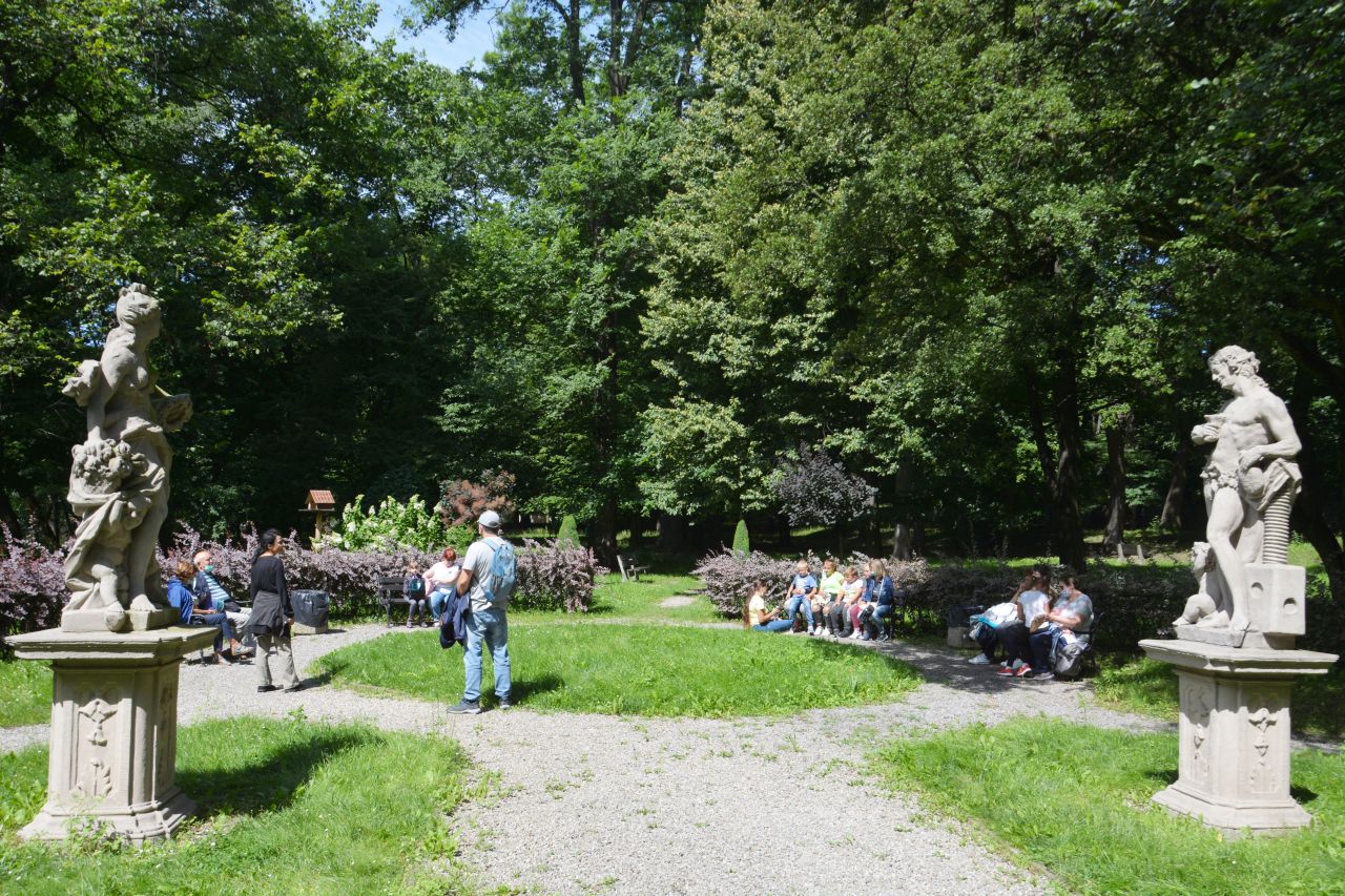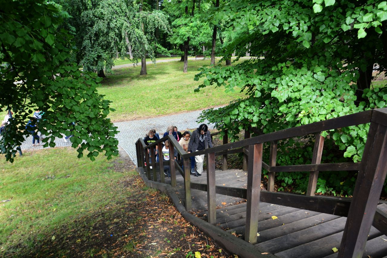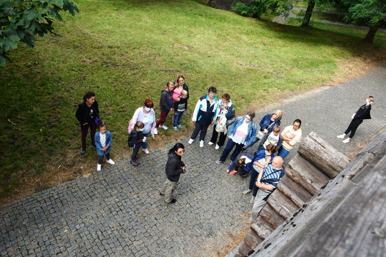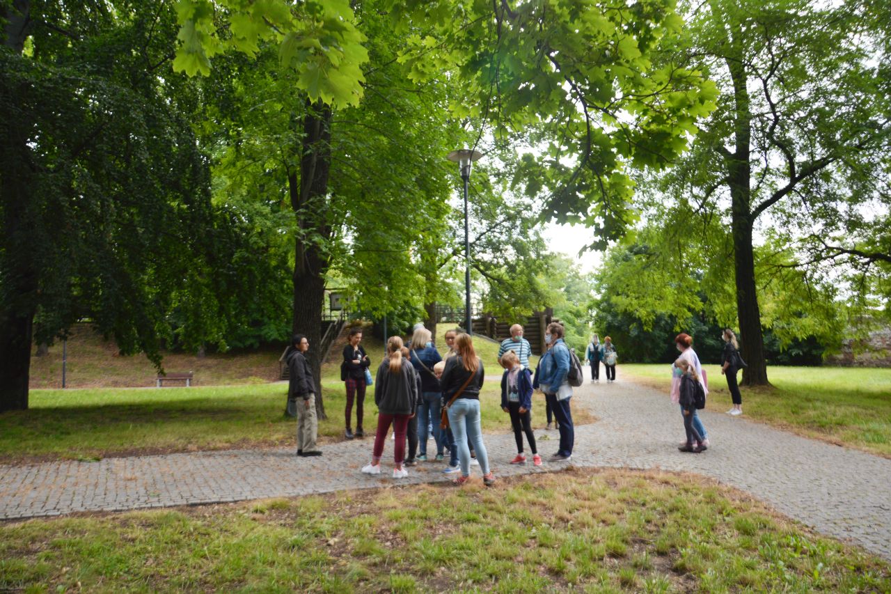 Uczestnicy spaceru historycznego, który odbył się 5.sierpnia wyruszyli na Wzgórze Zamkowe aby dowiedzieć się, jak wyglądały początki osadnictwa oraz poznali historię powstania średniowiecznej warowni. Następnie spacerowicze udali się w kierunku starego miasta, gdzie w cieniu murów średniowiecznego Będzina zapoznali się z najdawniejszymi dziejami miasta. Wędrując ulicami Zawale i Rybną na Plac Kazimierza Wielkiego miłośnicy przeszłości dowiedzieli się, jak zmieniało się życie mieszkańców Będzina w XVI i XVII stuleciu. Po przekroczeniu mostu na Czarnej Przemszy uczestnicy zajęć udali się do parku przy Pałacu Mieroszewskich, gdzie poznali historię powstania kompleksu pałacowo – parkowego oraz losy rodziny właścicieli. Po krótkim odpoczynku w cieniu starodrzewu badacze tajemnic historii wyruszyli by zwiedzić Podziemia będzińskie. Przemierzając podziemne korytarze zapoznali się z informacjami na temat budowy obiektu, geologii, społeczności żydowskiej, rozwoju przemysłu w Będzinie i okresu drugiej wojny światowej. Na koniec poznali legendę związaną z gnomem odwiedzającym podziemia.