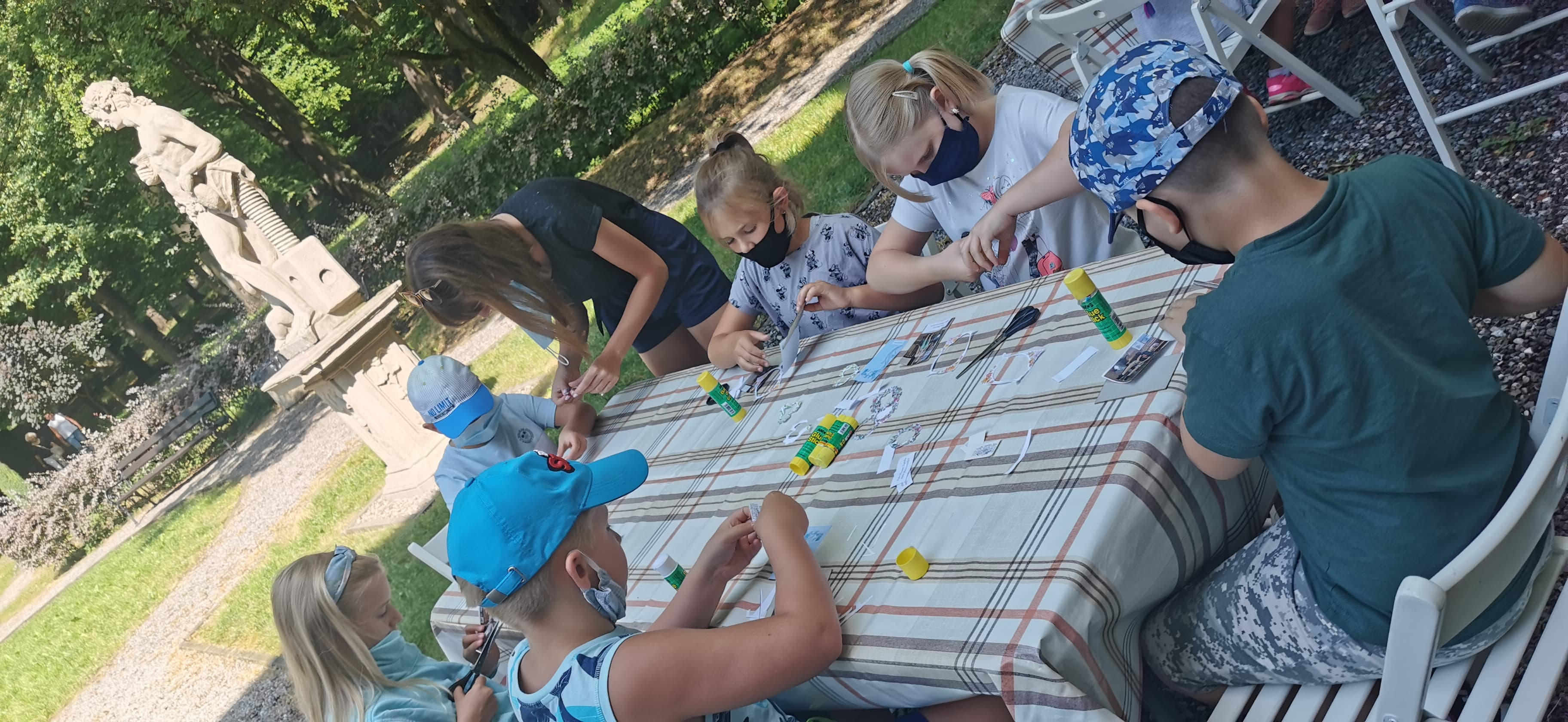 Całe spotkanie dotyczące dawnej fotografii przebiegło w bardzo wesołej atmosferze i pod rygorem sanitarnym, co przedłużyło nasze zajęcia. Wszystkie dzieciaki miały zbadaną temperaturę i zdezynfekowane rączki. Po wszystkich formalnościach związanych z bezpieczeństwem zdrowotnym uczestników i pracowników odbyły się warsztaty na powietrzu obok pięknych rzeźb parkowych.