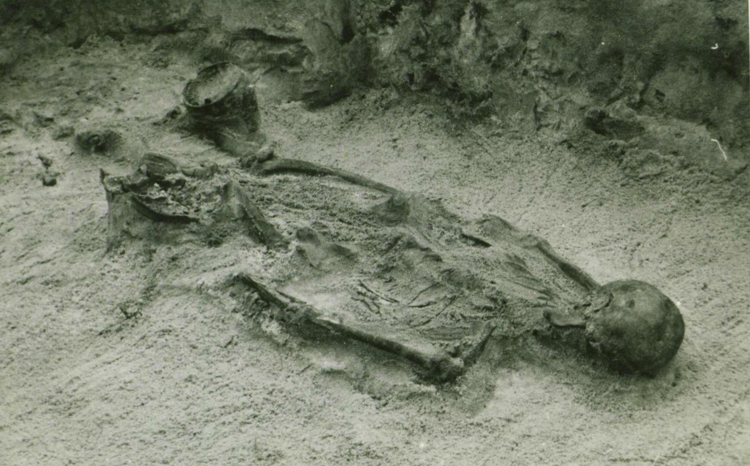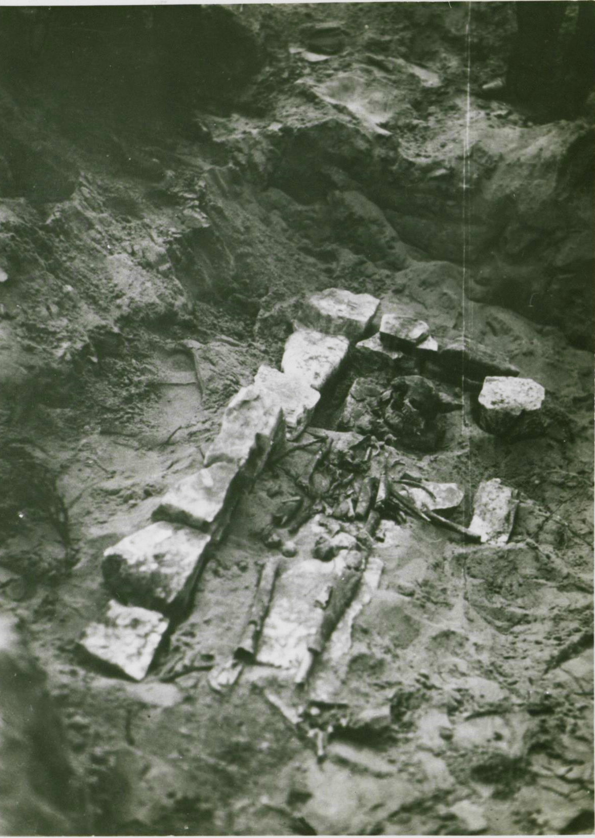 Grób szkieletowy z obstawą kamienną (częściowo zachowaną).