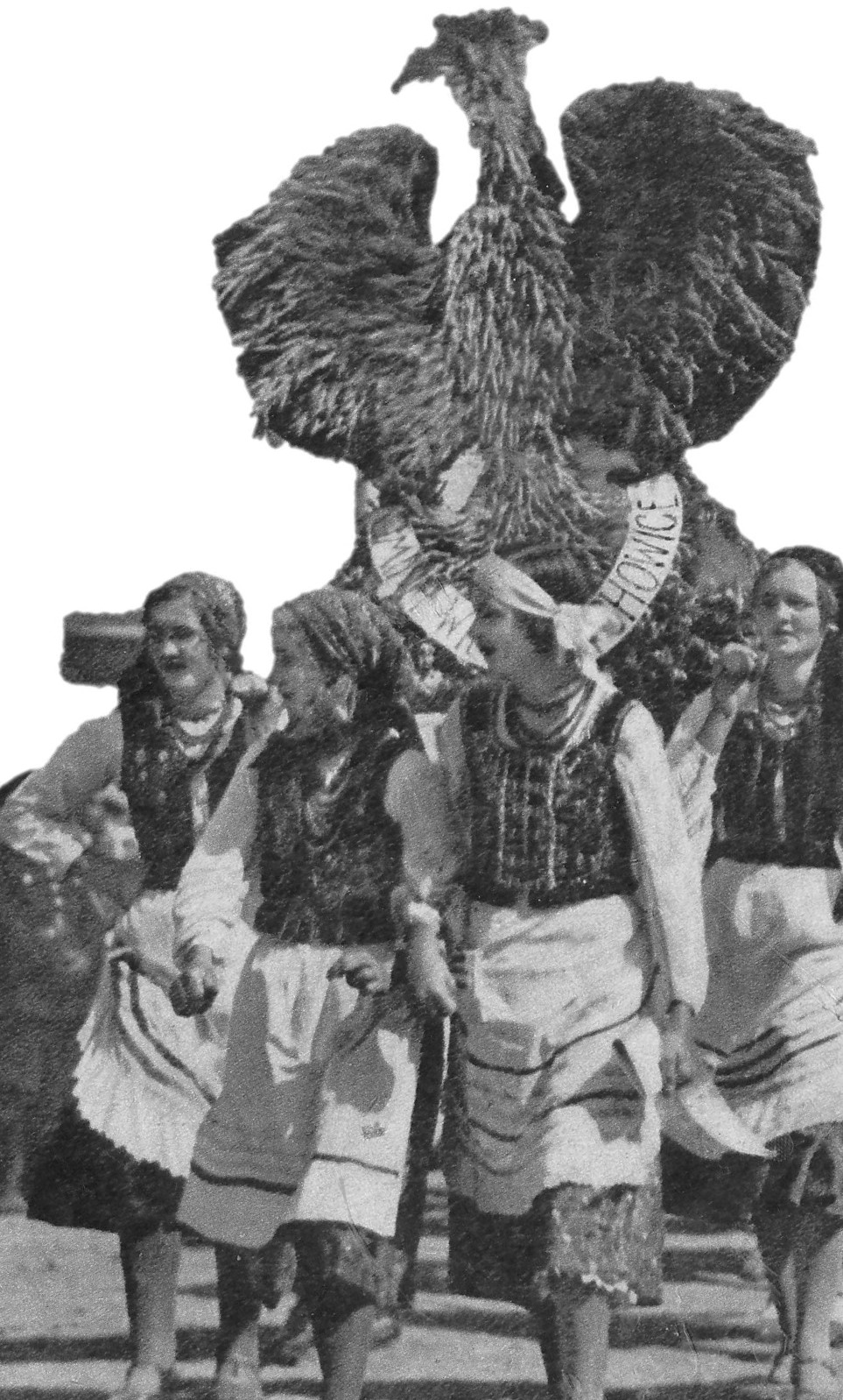 Dziewczęta niosące orła wykonanego ze słomy.