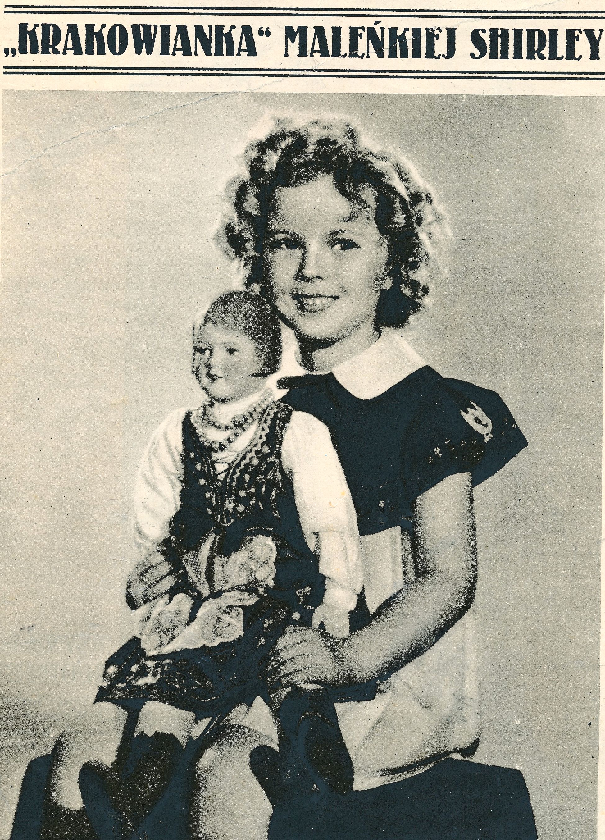 Panu Redaktorowi z przeszłości i naszym współczesnym Czytelnikom polecamy uwadze zdjęcia lalki z naszych zbiorów oraz małej Shirley z polską krakowianką na kolanach.