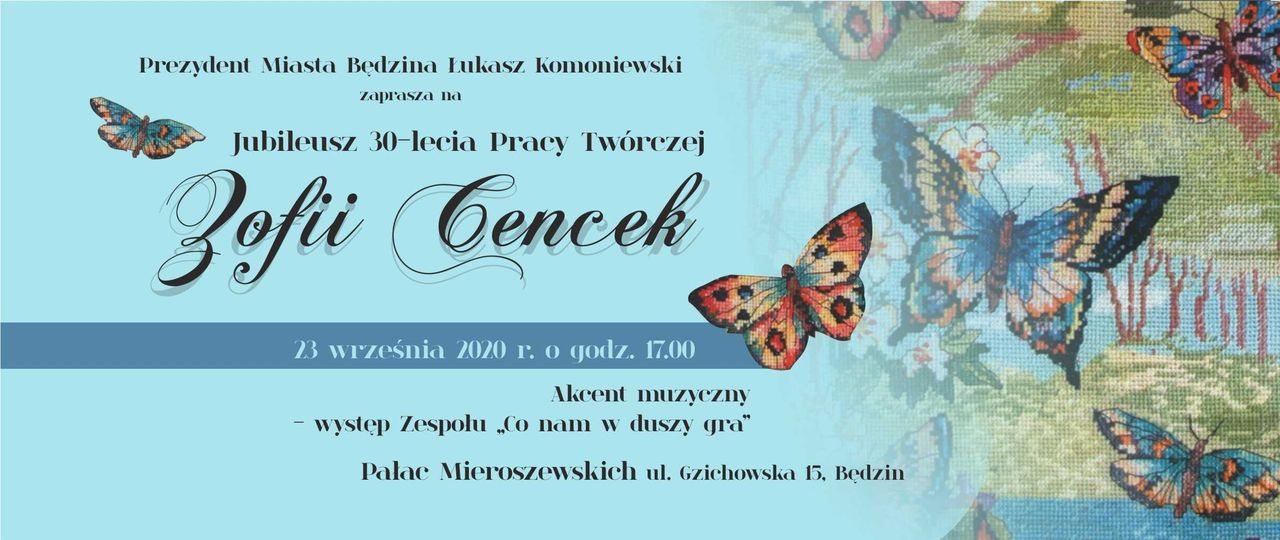 23 września o godzinie 17.00 w Pałacu Mieroszewskich rozpocznie się niecodzienna uroczystość – jubileusz 30-lecia pracy twórczej Zofii Cencek.