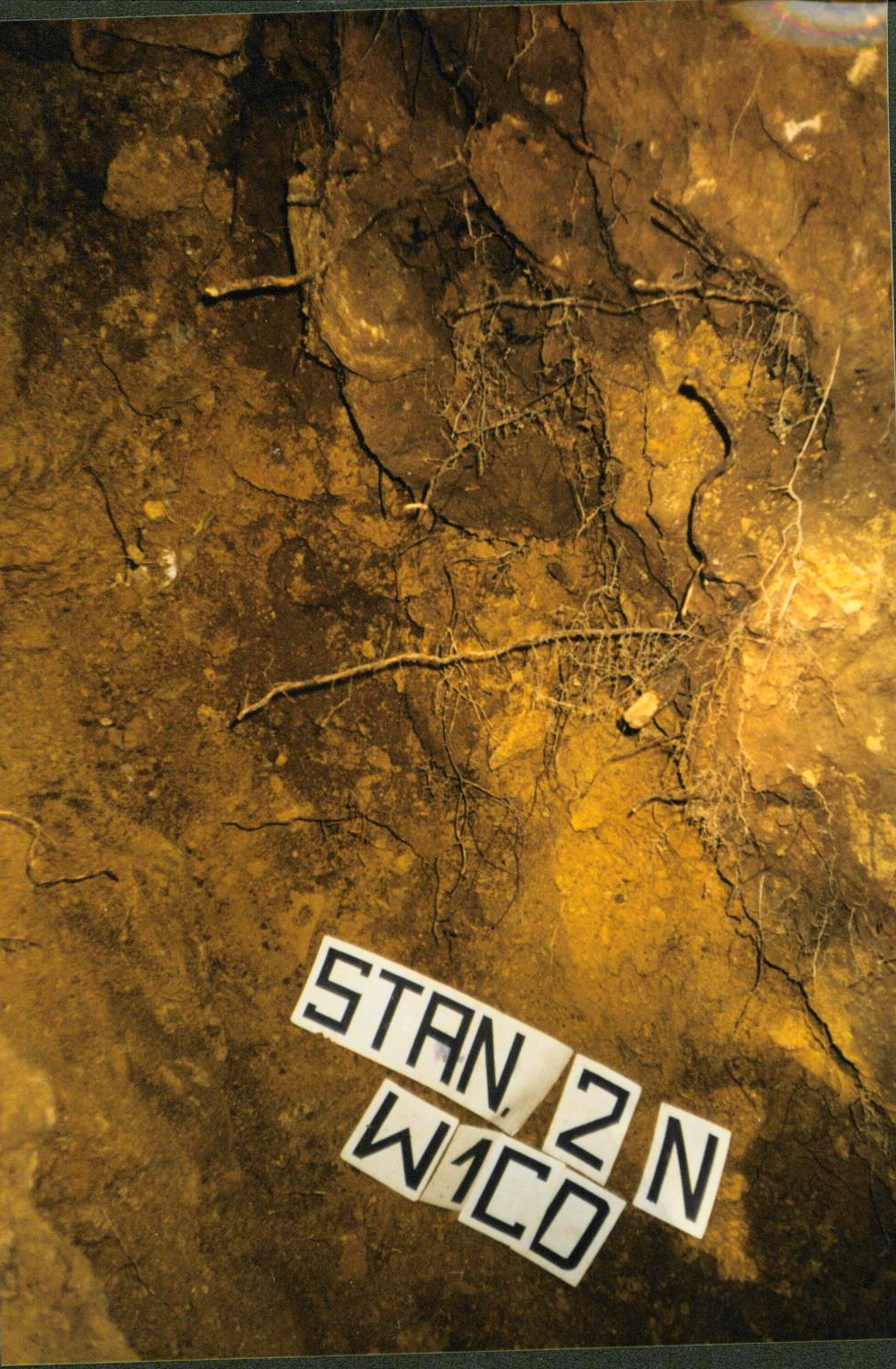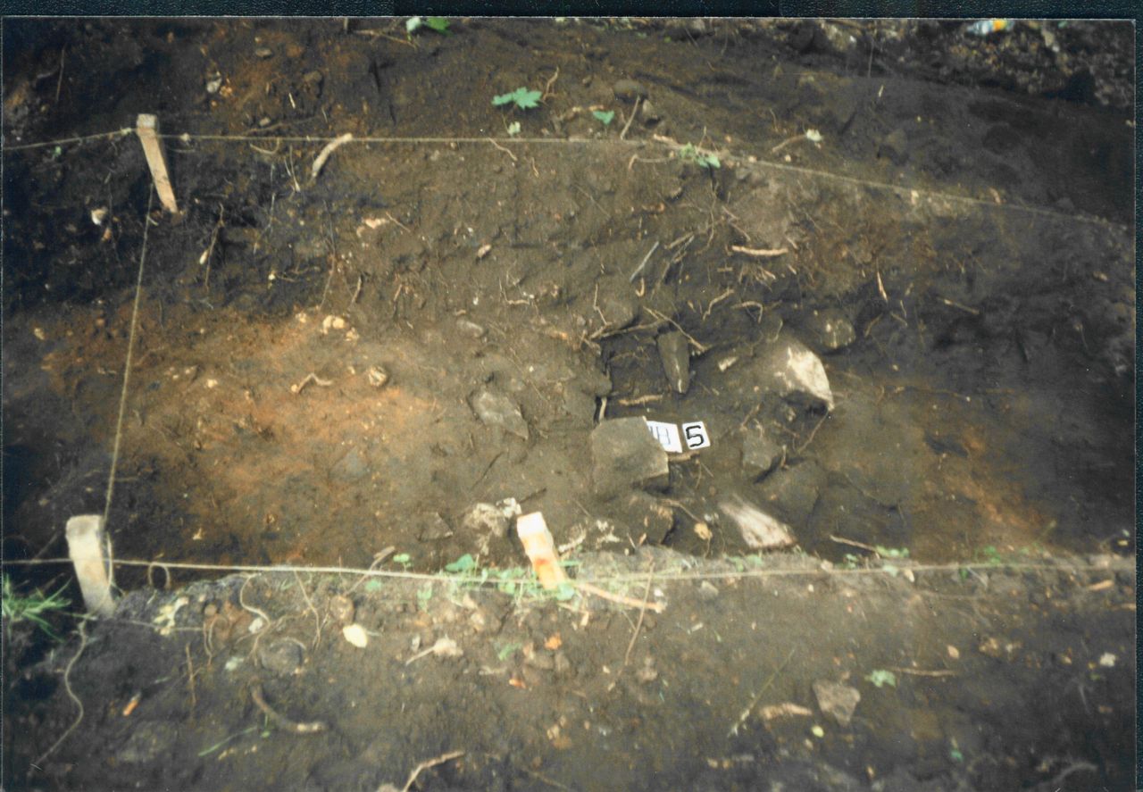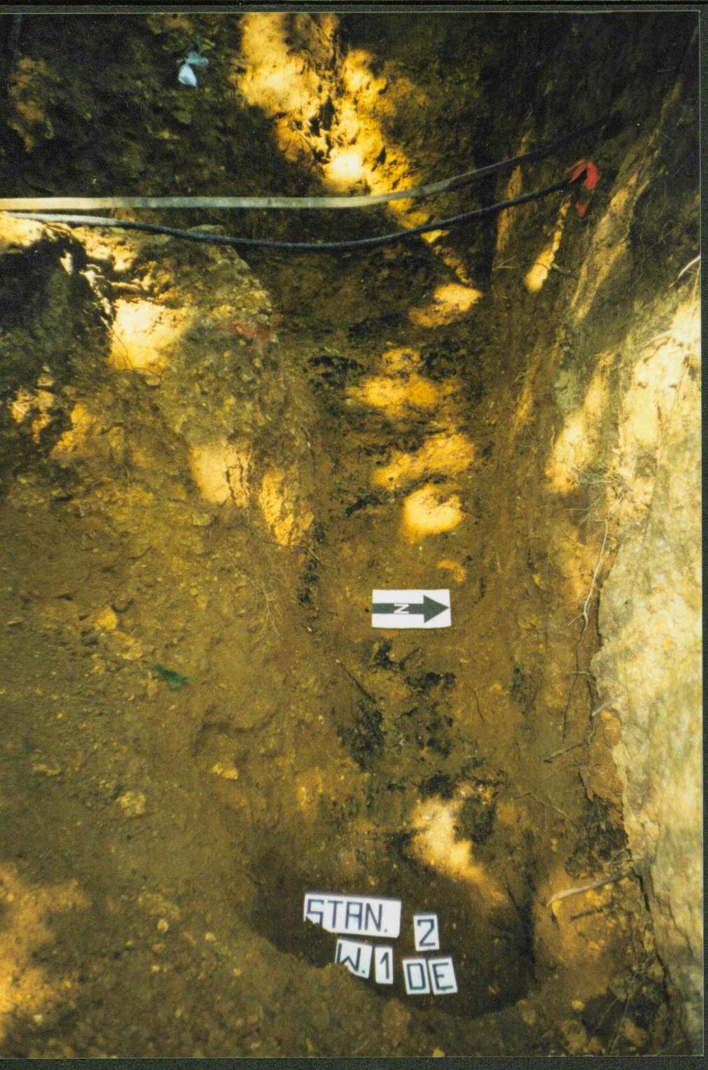 9. Pozostałości zbutwiałego drewna (po niespalonych dolnych partiach zasieku?) przy ścianie progu skalnego.