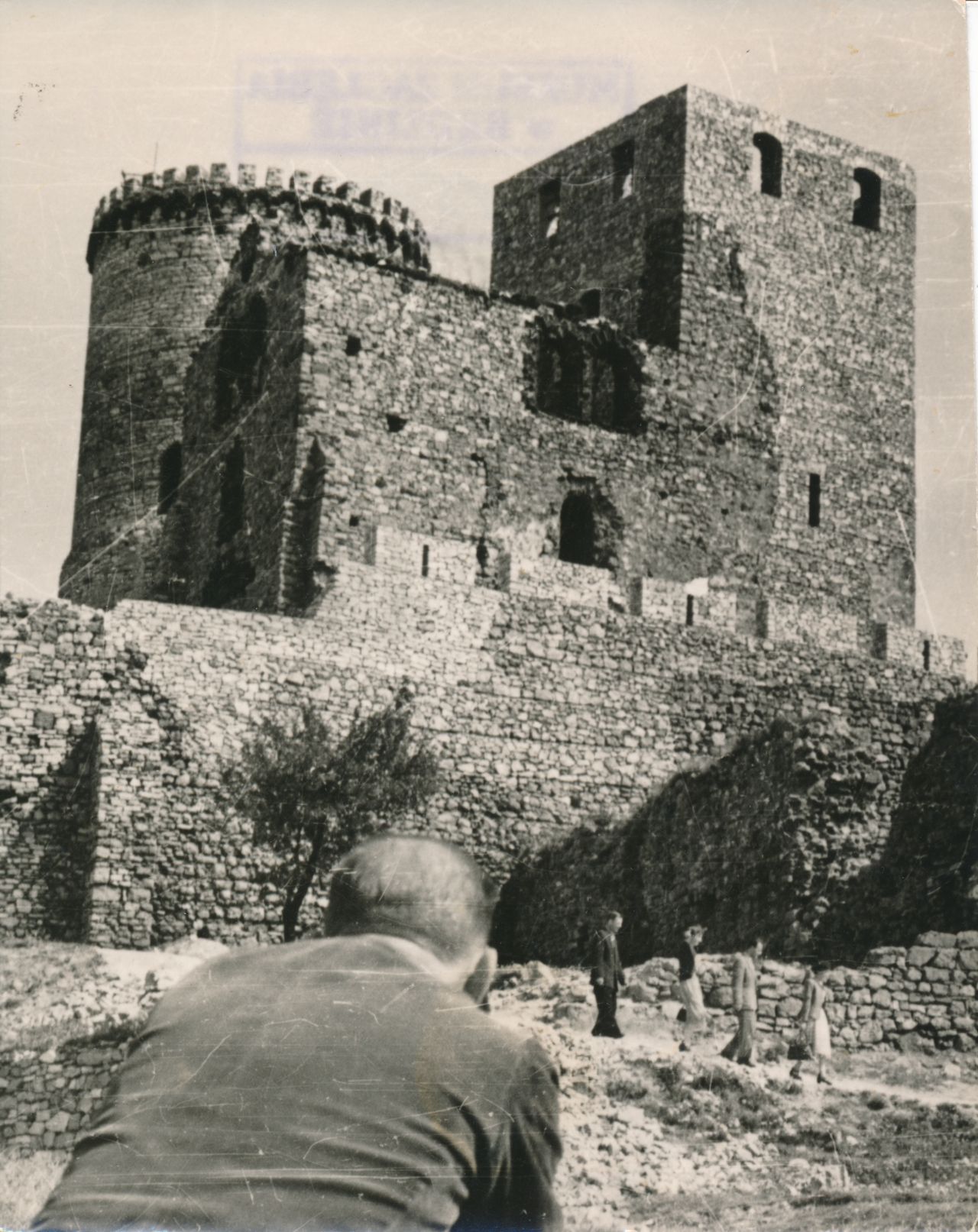 12) Zamek częściowo odbudowany (brak dachów) przyciąga pierwszych turystów i miłośników fotografii.