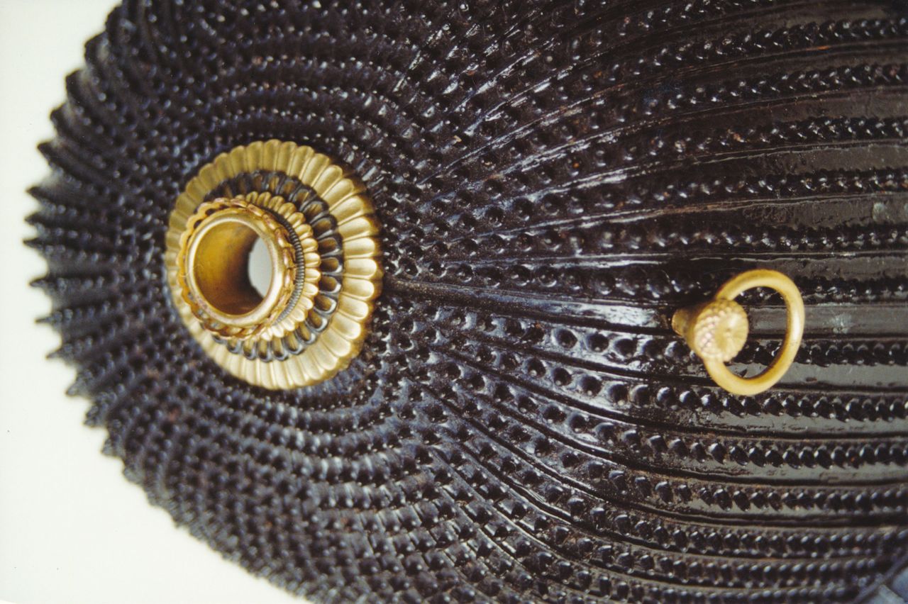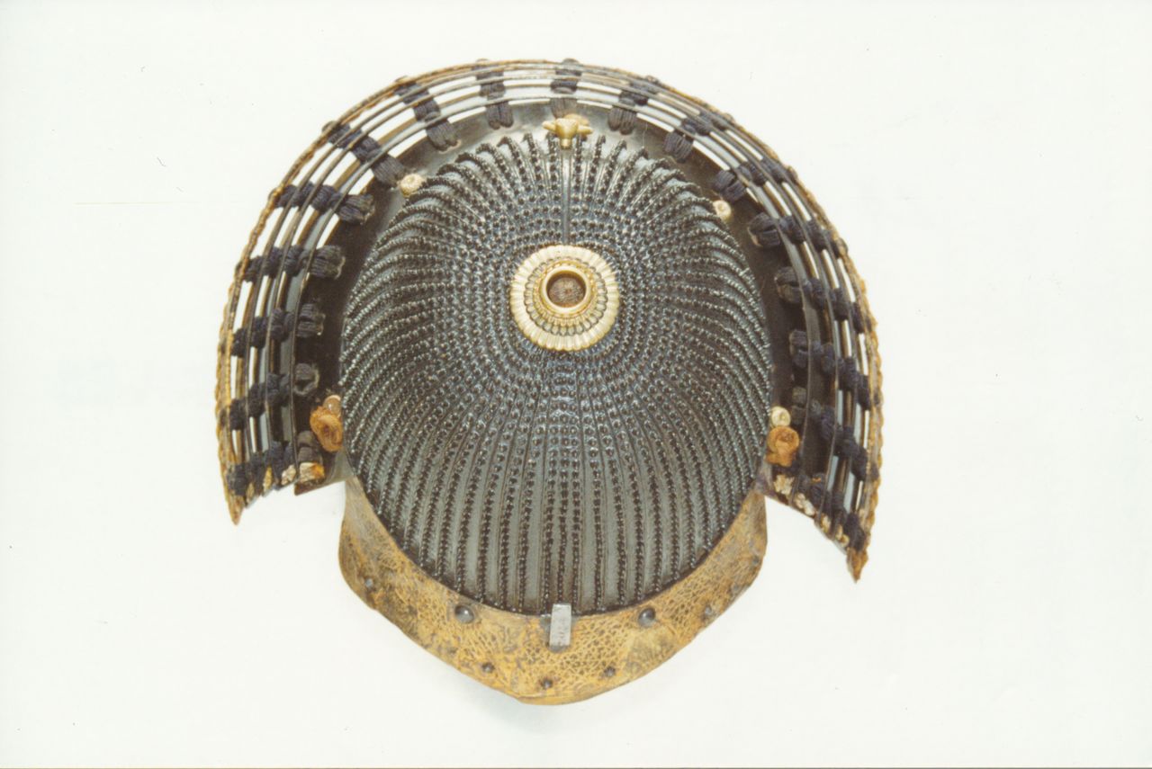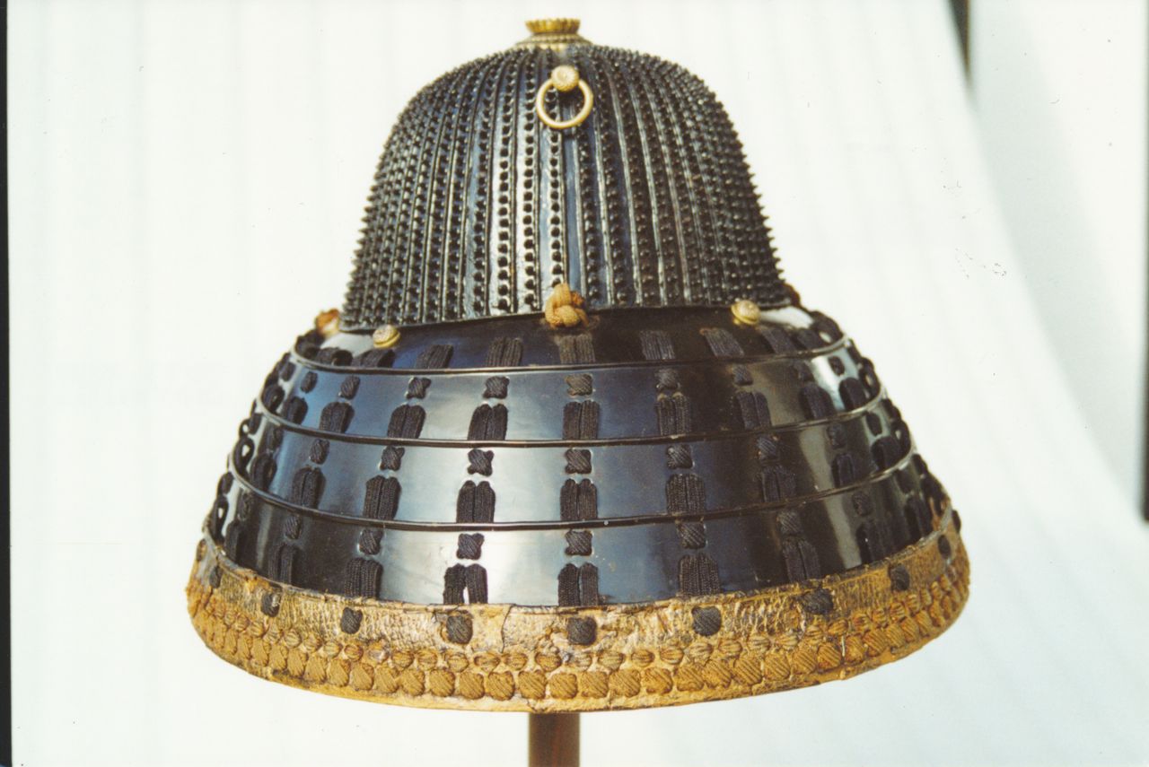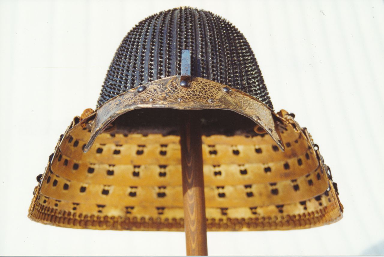 Hełm japoński – hoshi – kabuto. 1890 nitów, ponad 4800 otworów.