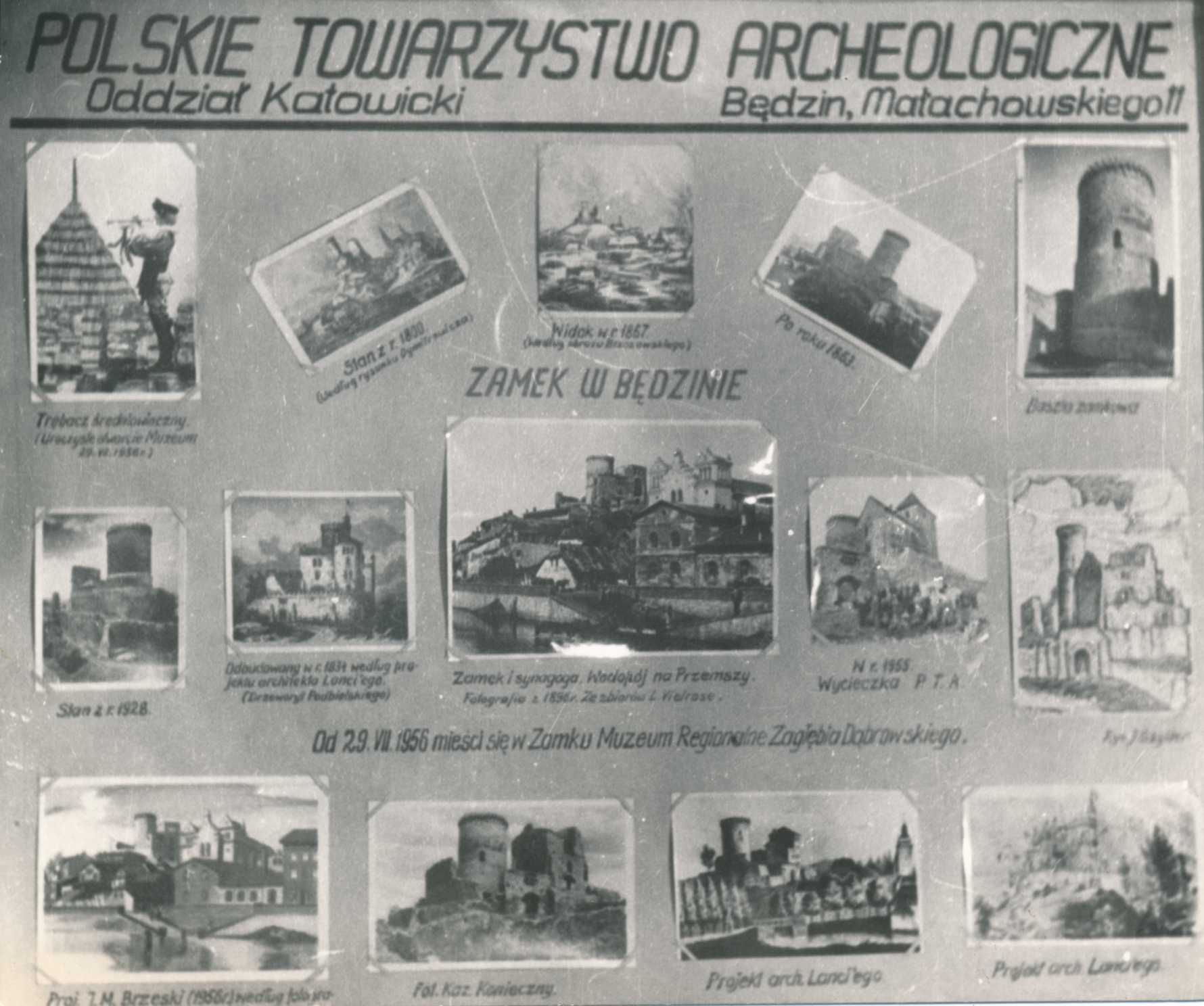 Tablica poświęcona będzińskiemu zamkowi i tworzącemu się w nim Muzeum Zagłębia w siedzibie będzińskiego oddziału PTA, lata 50 - te
