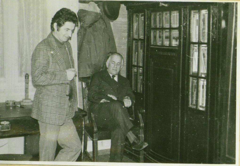 Prezes oddziału B. Witkowski (po prawej) i prezes sekcji numizmatycznej W. R. Pustułka w siedzibie towarzystwa w Będzinie w 1976 roku