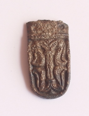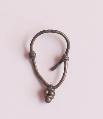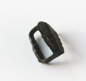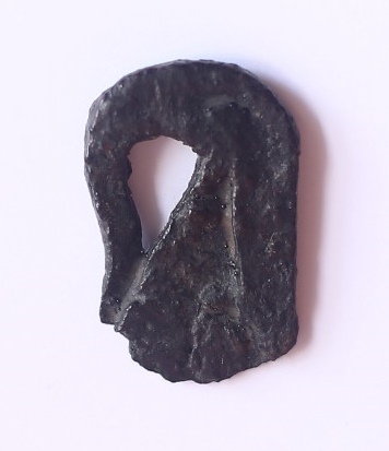 Również z zasypiska fosy pochodzi zachowany częściowo przedmiot, który mógł być żelaznym okuciem na brzegu drewnianego wiaderka służącym do zamocowania kabłąka. Identyfikacji dokonano na podstawie analogii ze stanowisk wielkomorawskich, na których znajdowano zabytki o bardzo zbliżonym wyglądzie.