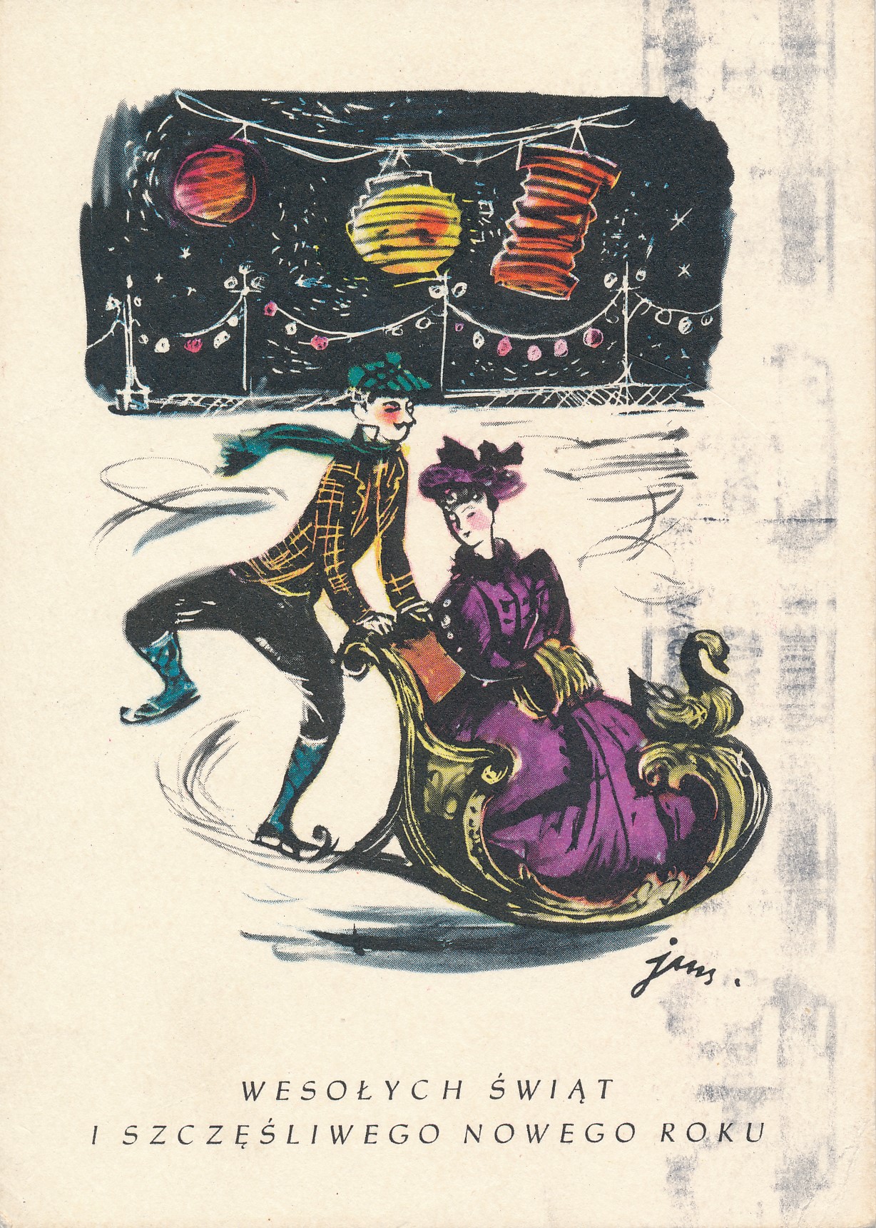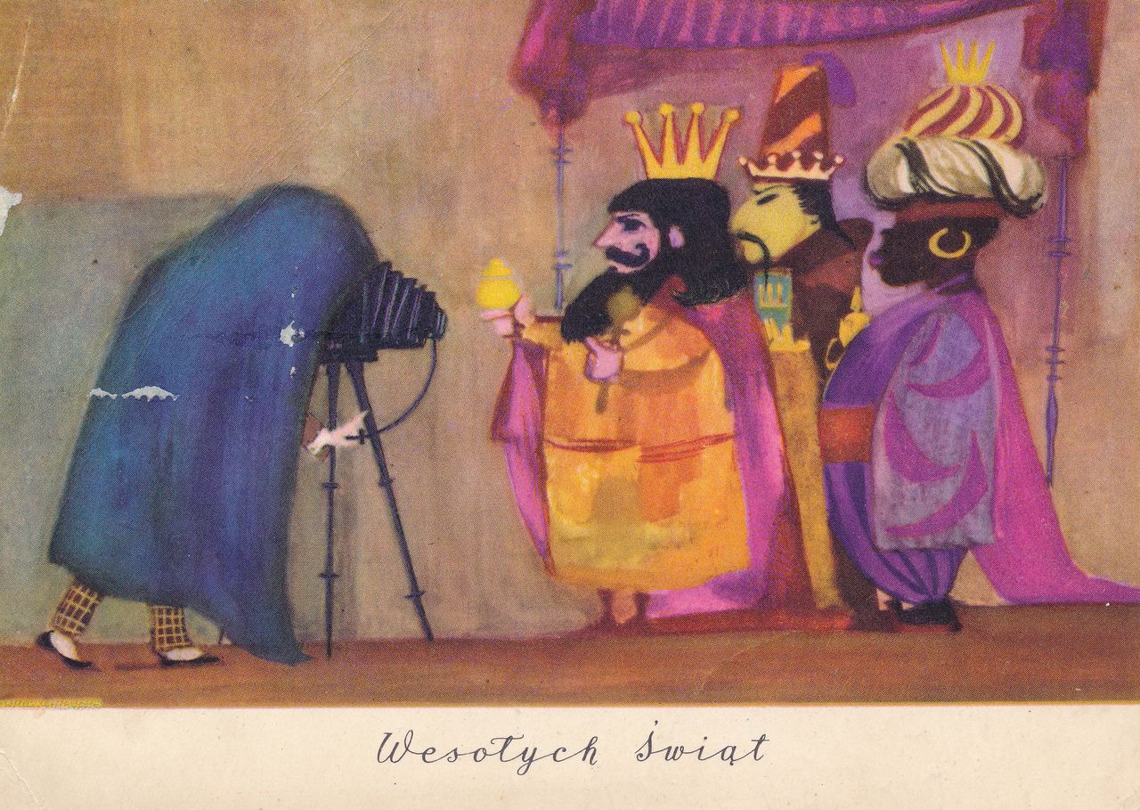 Po koniec lat 50. XX w. „Ruch” rozwinął sieć kiosków i wprowadził do sprzedaży pocztówki. Pocztówkowe fuchy brali świetni ilustratorzy tworzący w tamtych latach tzw. Polską Szkołę Ilustracji, która była fenomenem i przekładała się m.in. na ilustracje książkowe dla dzieci, podręczniki szkolne, znaczki. Jednak najpowszechniej odbieraną przez publiczność dziedziną były pocztówki specjalnie projektowane na święta przez znakomitych grafików.