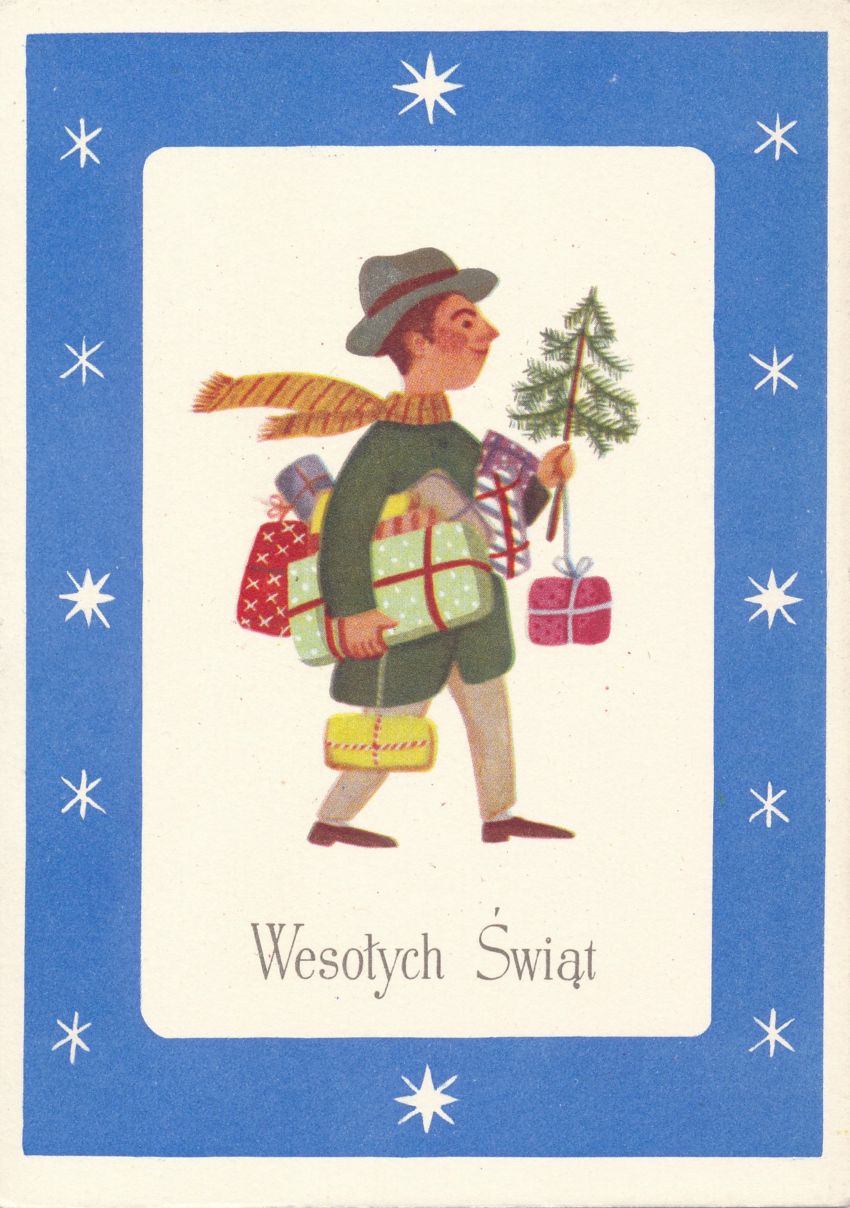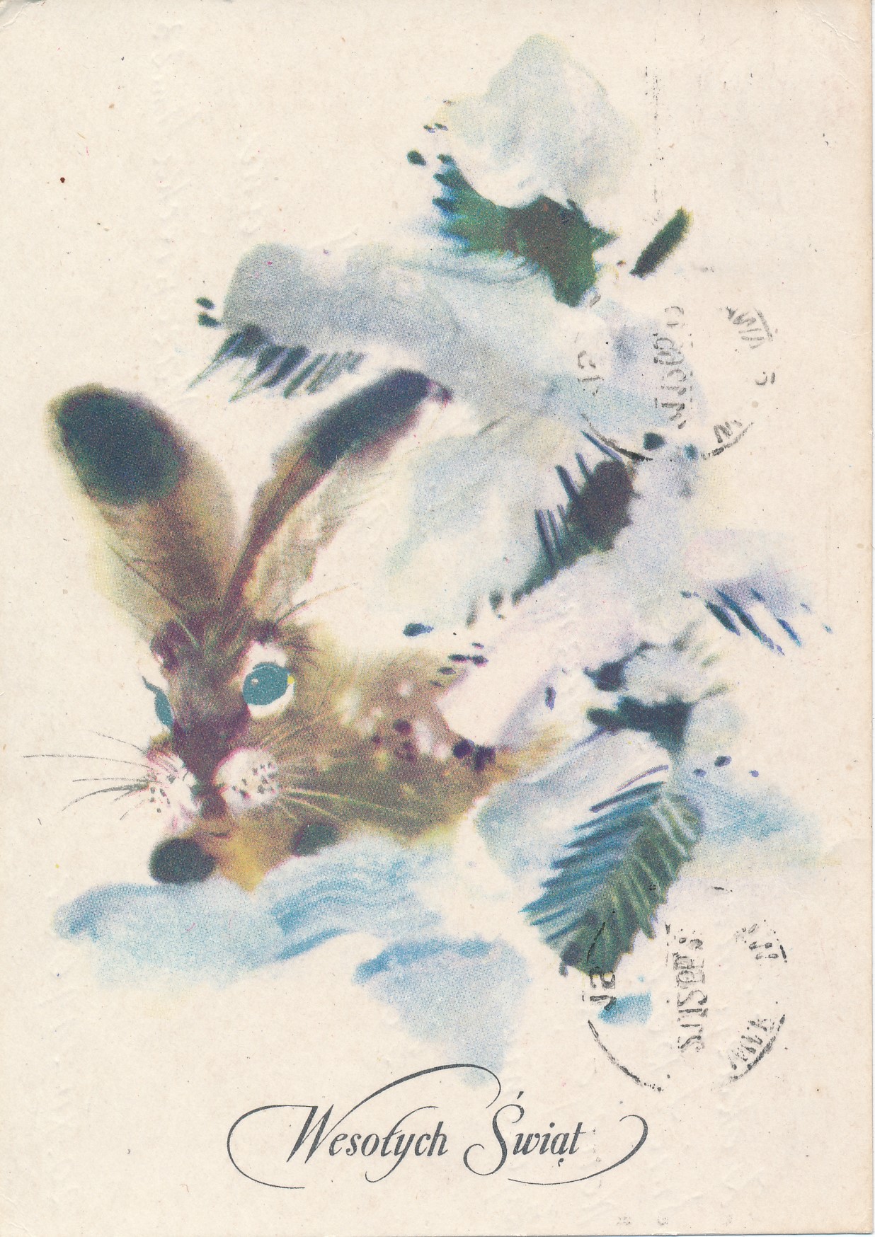 14 Karta świąteczna, projekt: Janusz Grabiański, lata 60. XX w., ze zbiorów Biblioteki Uniwersytetu Mikołaja Kopernika w Toruniu.