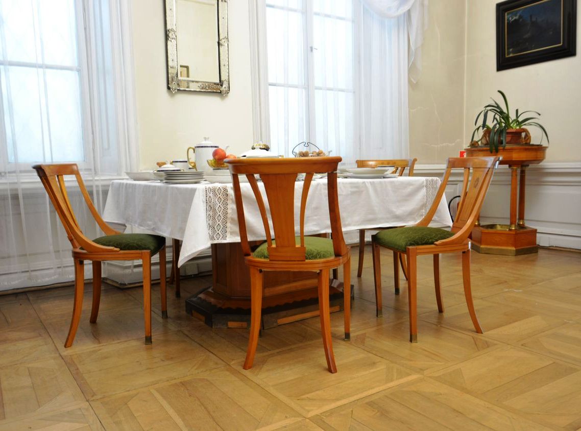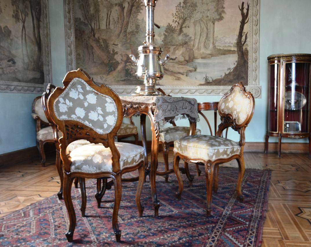 We wnętrzach Pałacu Mieroszewskich, na wystawach stałych i czasowych znajduje się kilka stołów.