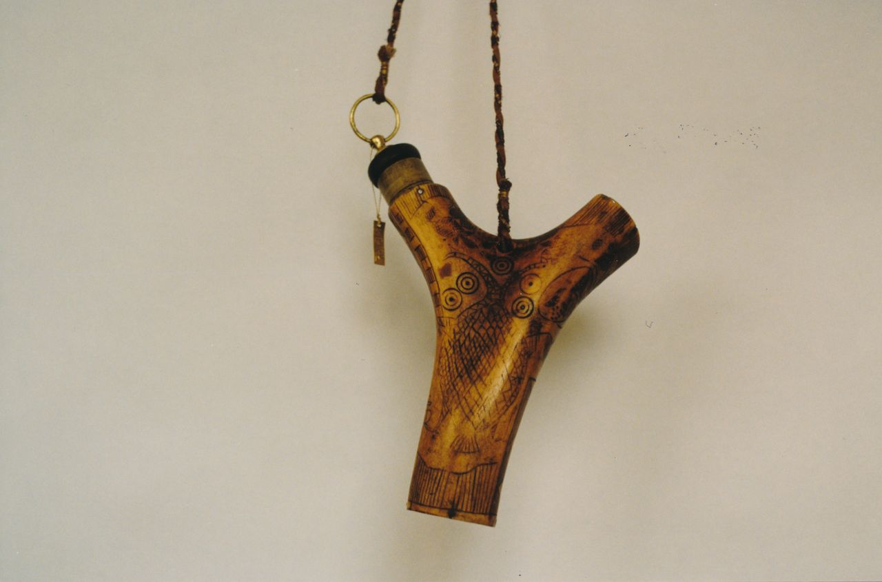 4. Prochownica myśliwska z rogu bawolego, koniec XIX w.