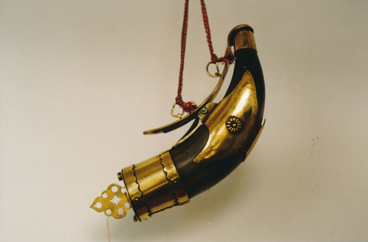 Warto też zwrócić uwagę na prochownice muszkieterskie – jedna z lat 1590- 1610, w formie spłaszczonego rogu obciągniętego czarną skóra, a druga z I połowy XVII w. w formie drewnianego dzwonowatego zbiornika, również obciągnięta skórą, z żelaznymi, ażurowymi okuciami.