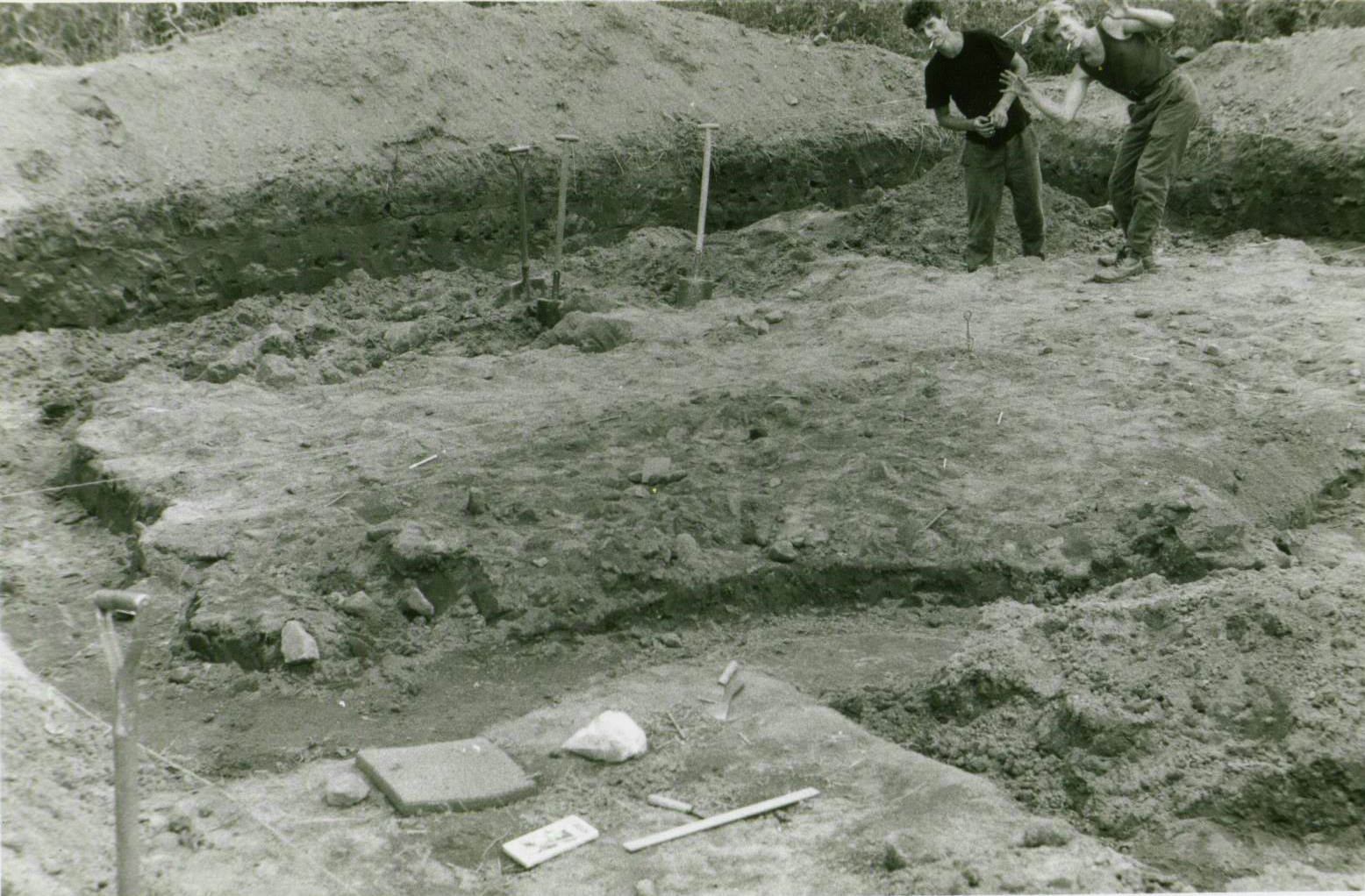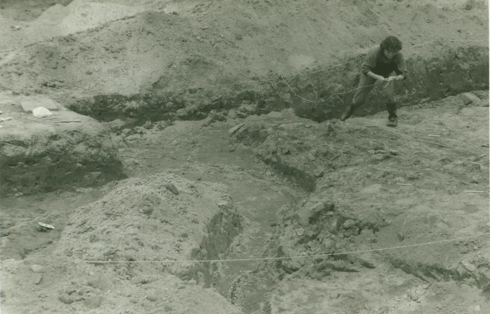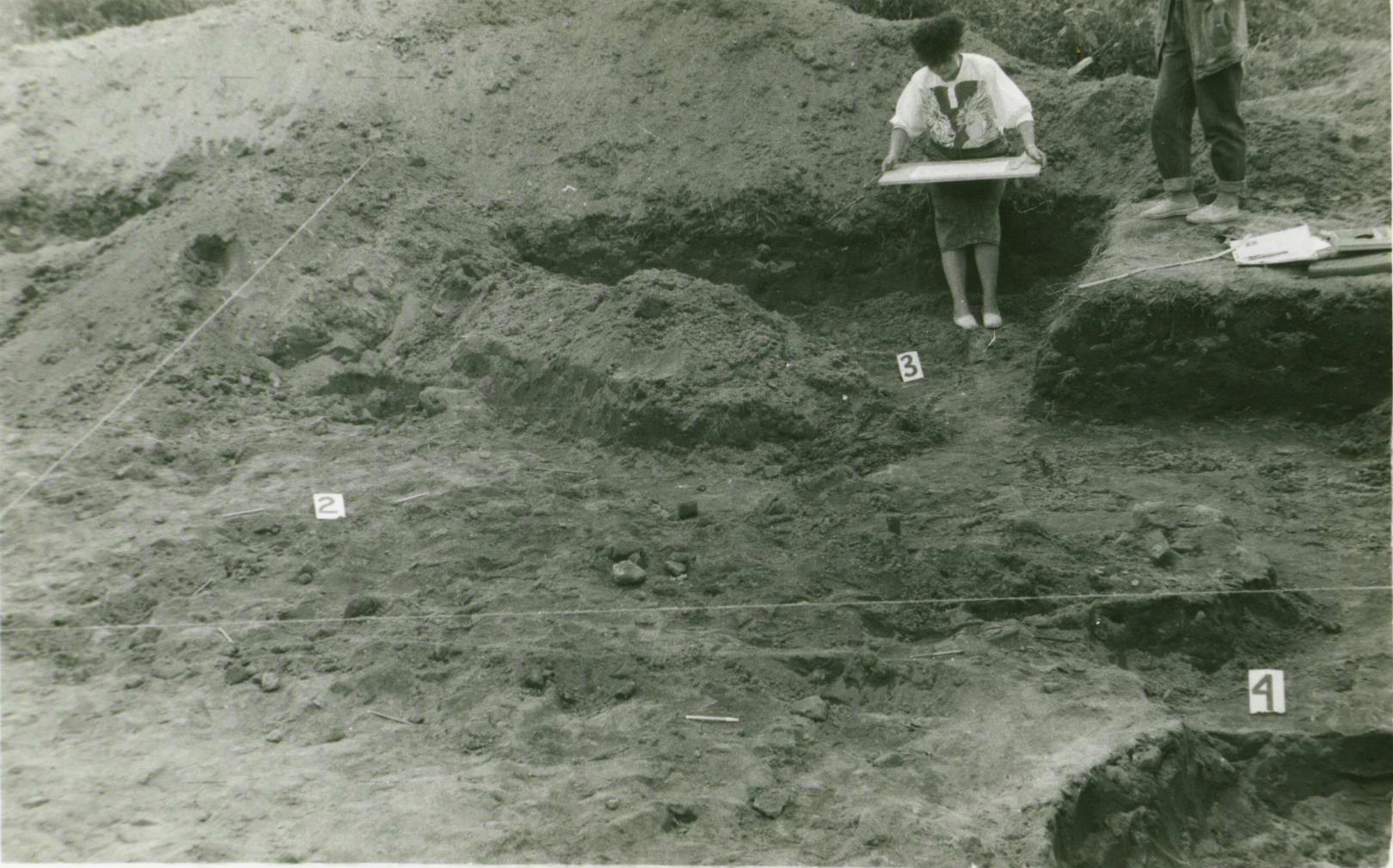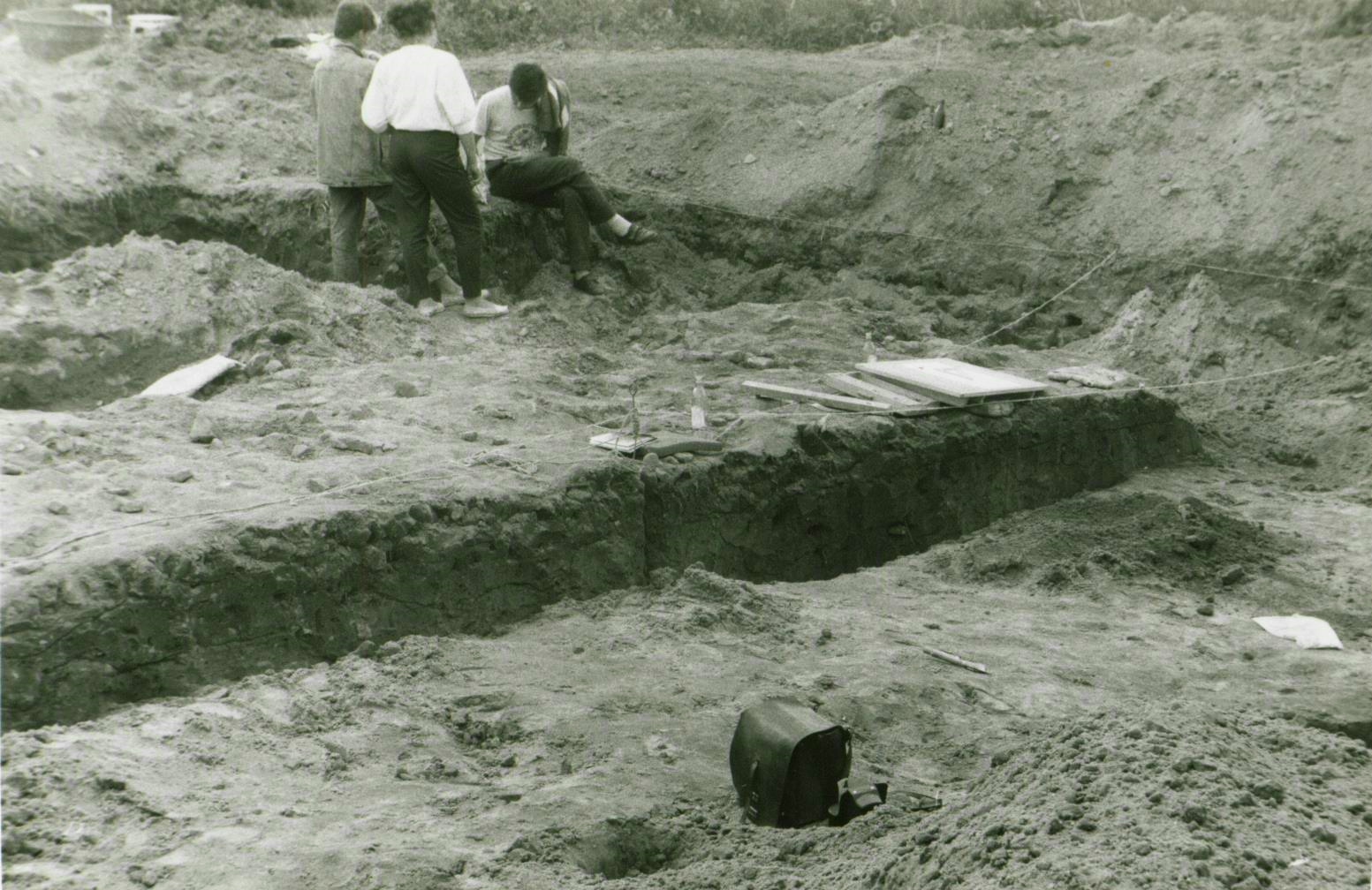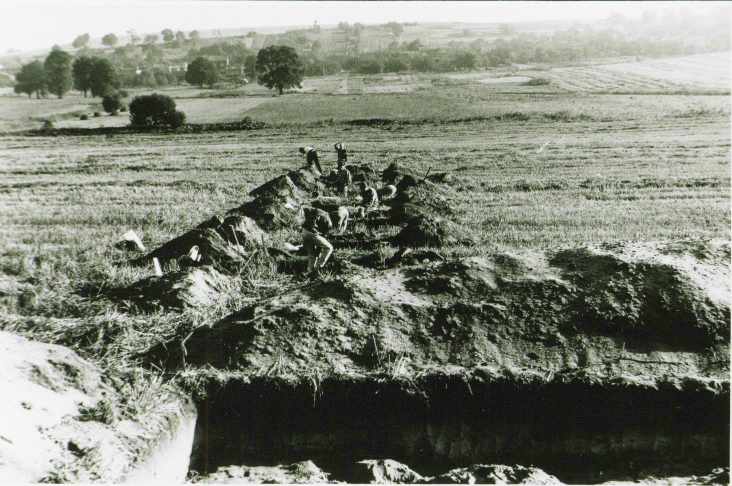 11. Prace w rowie sondażowym, przecinającym osadę w poprzek zbocza doliny Potoku Psarskiego.
